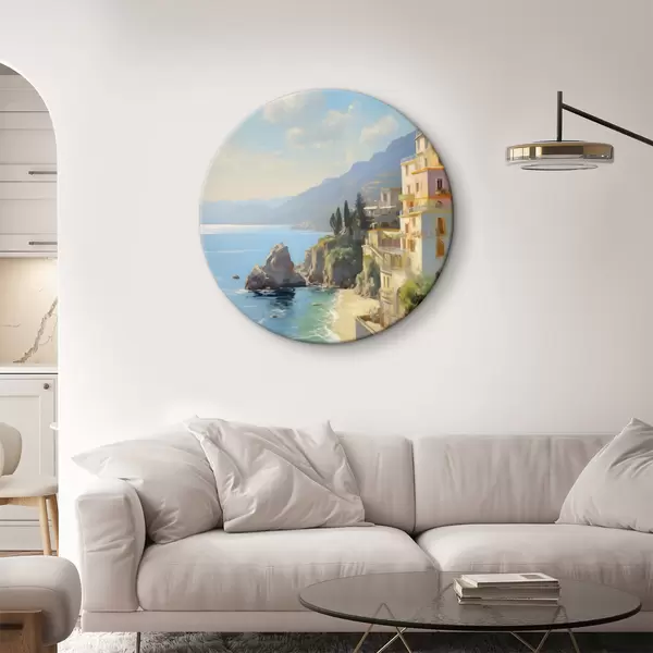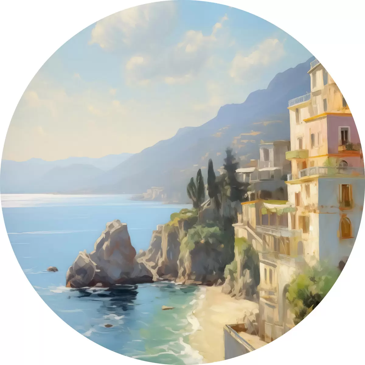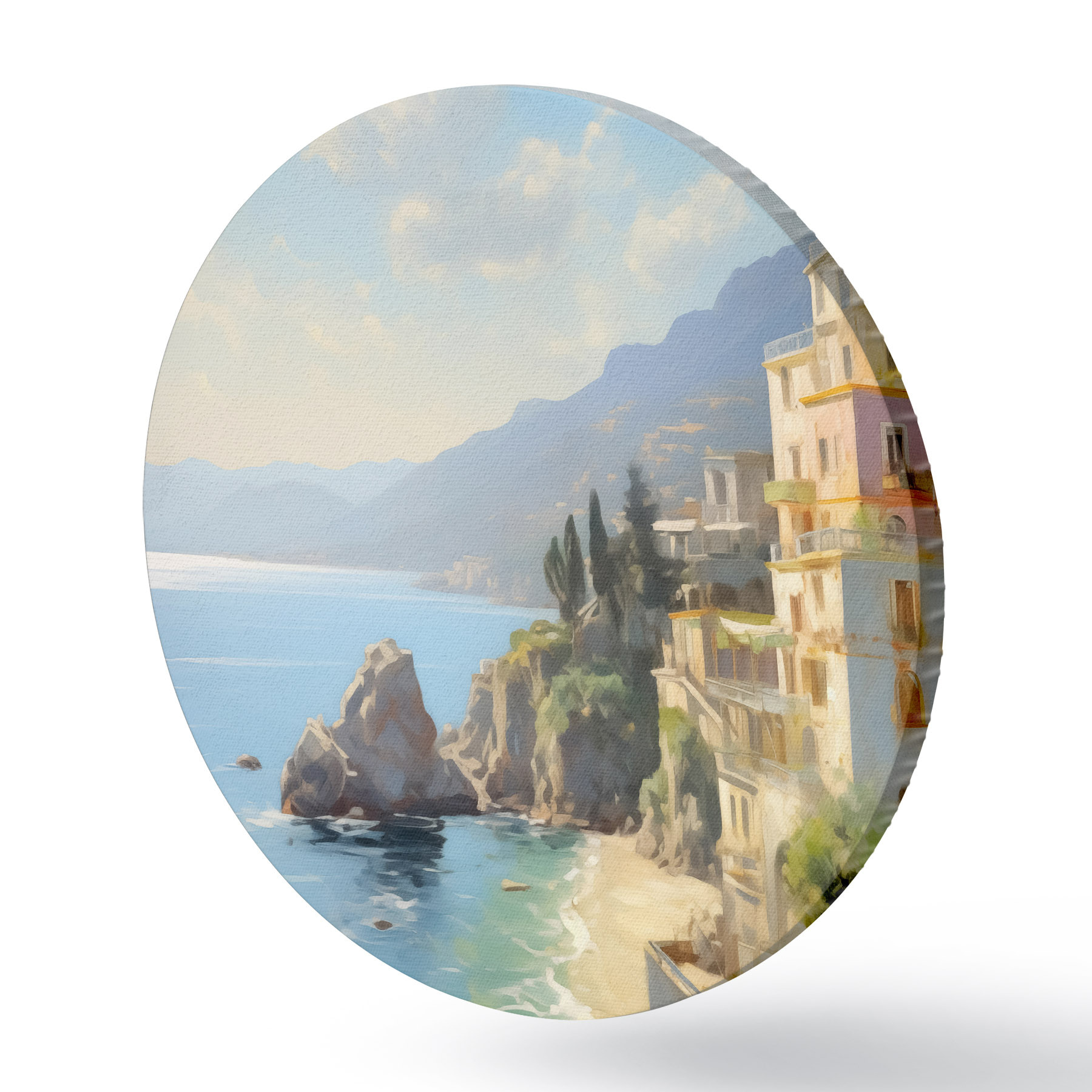 Cuadros redondos Vista de la bahía del mar, montañas en Italia desde el hotel imitación de pintura al óleo r40088