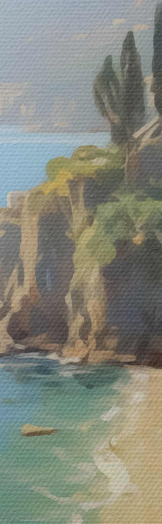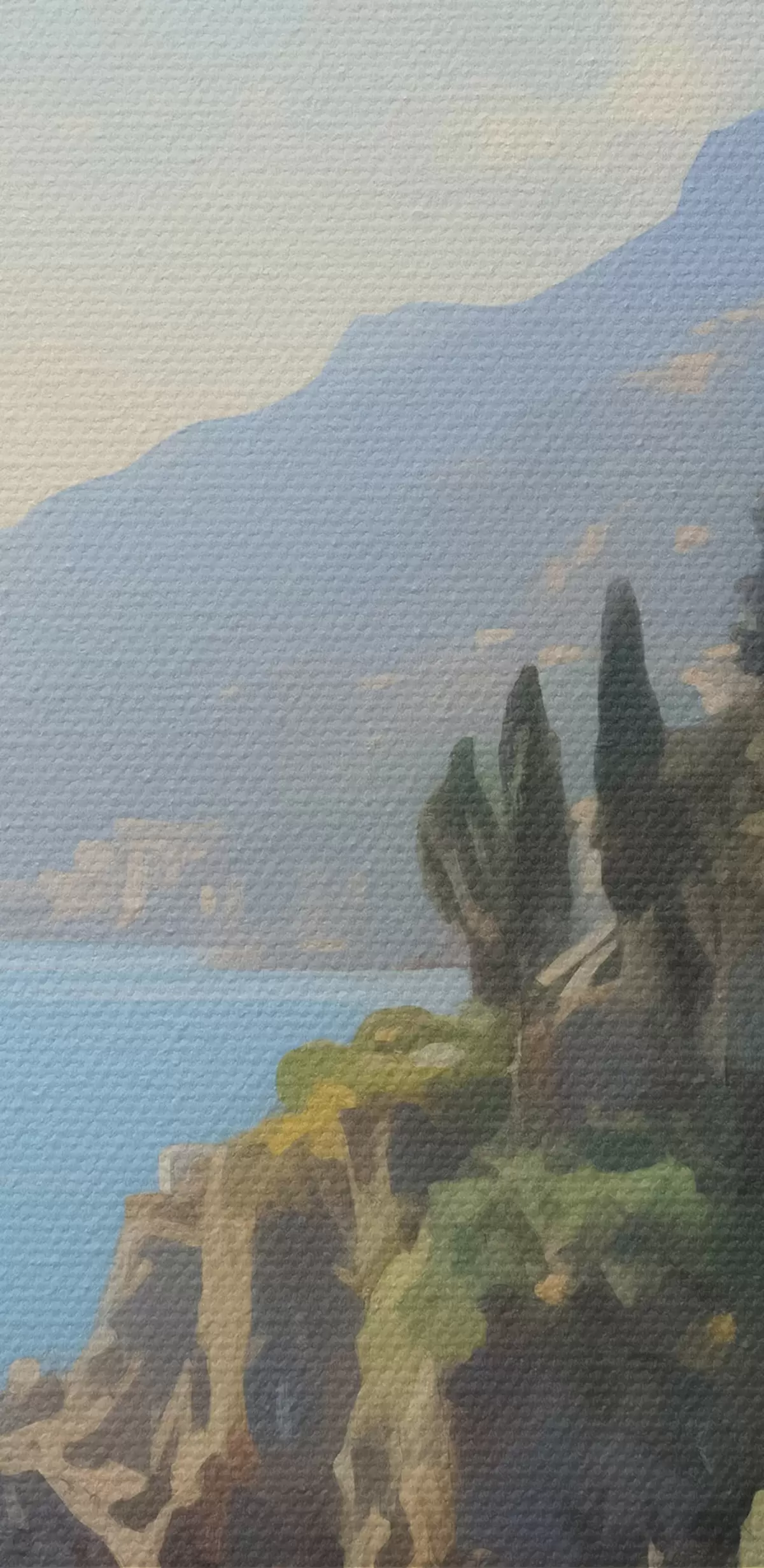 Foto Vista de la bahía del mar, montañas en Italia desde el hotel imitación de pintura al óleo Nr r40088