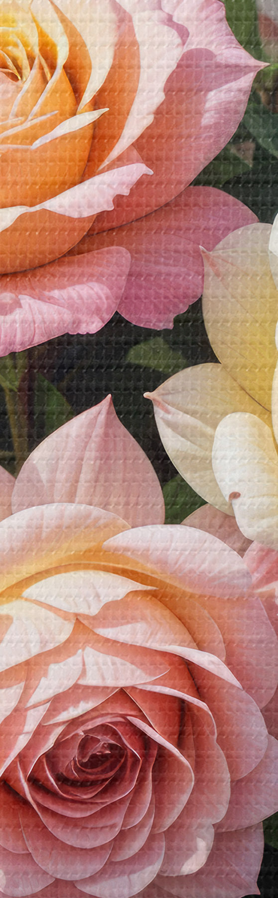 Hay tres tipos de material disponibles para pedidos: Lienzo Económico - material denso y duradero para impresión digital, idéntico al lienzo de pintor, superficie impermeable, reproducción realista de los detalles, material de grano medio. Lienzo Premium - la textura se asemeja a la de un lienzo de pintor (pequeños hilos entrelazados). Reproducción suave y detallada de la imagen sobre una superficie mate. Eco-Premium - tejido 100% algodón de alta calidad. Gracias a las fibras naturales de algodón, el material es duradero y resistente al desgaste. Excelente reproducción del color y el detalle.