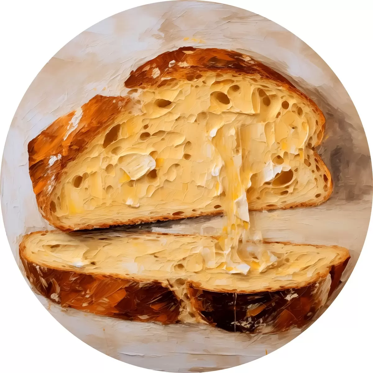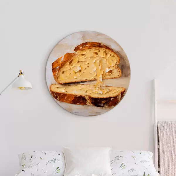 Cuadros redondos Cuadro de pan y mantequilla sobre fondo claro r40216