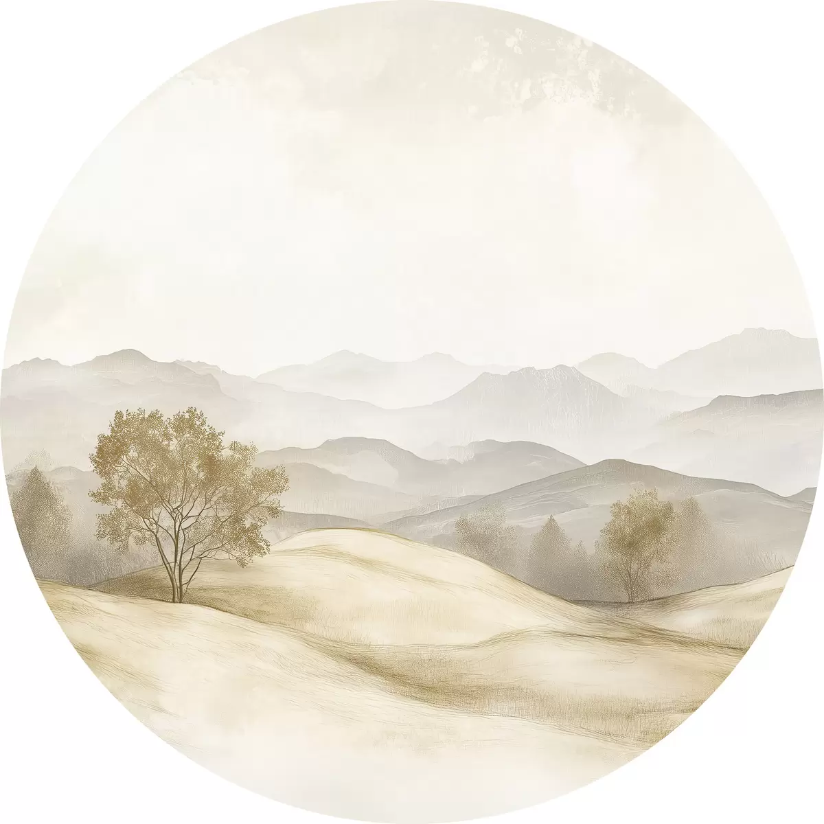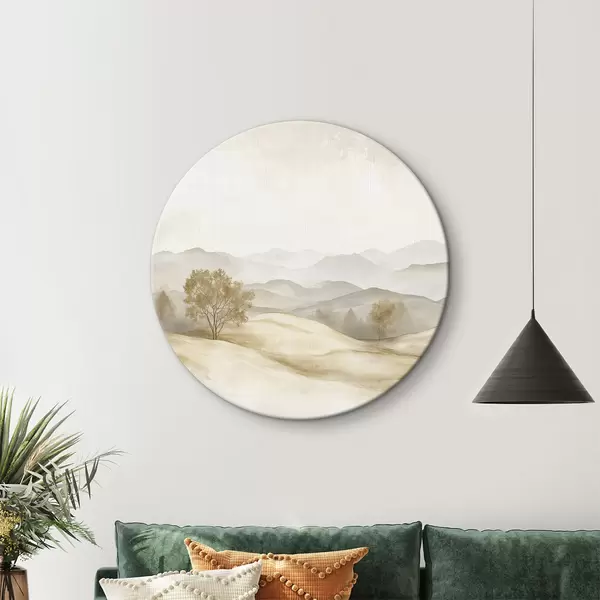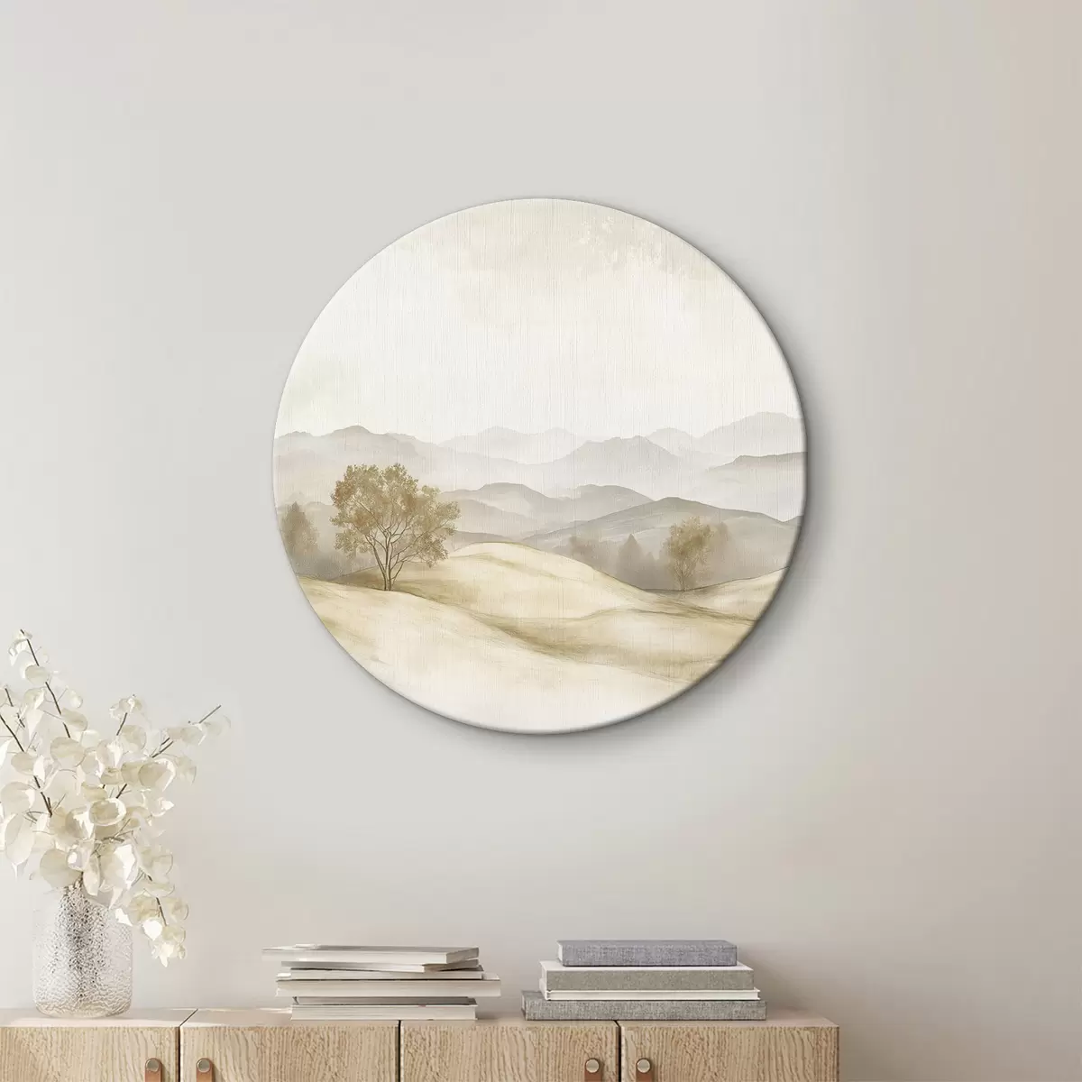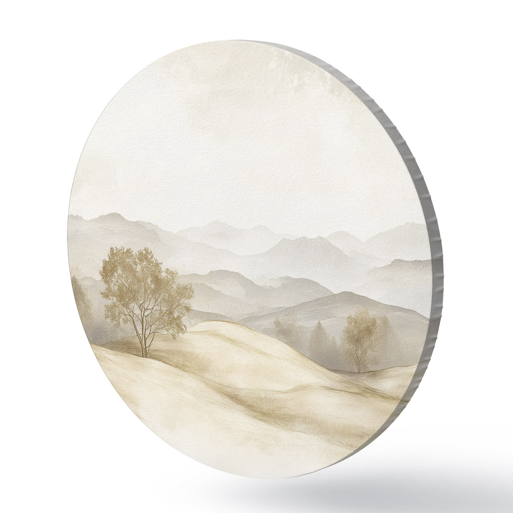 Cuadros redondos Paisaje natural en paleta de colores beige, prado, árboles, dibujo de acuarela r40231
