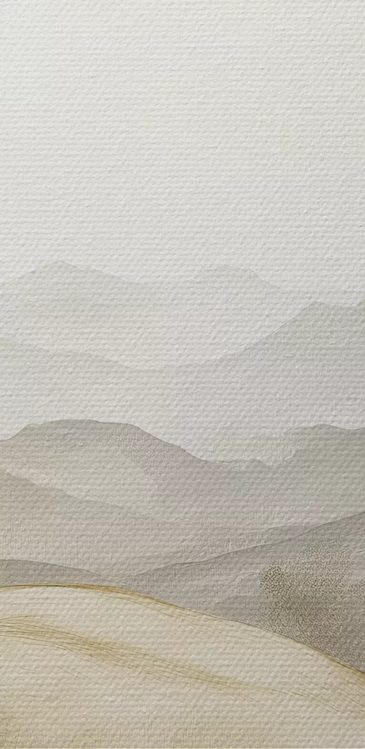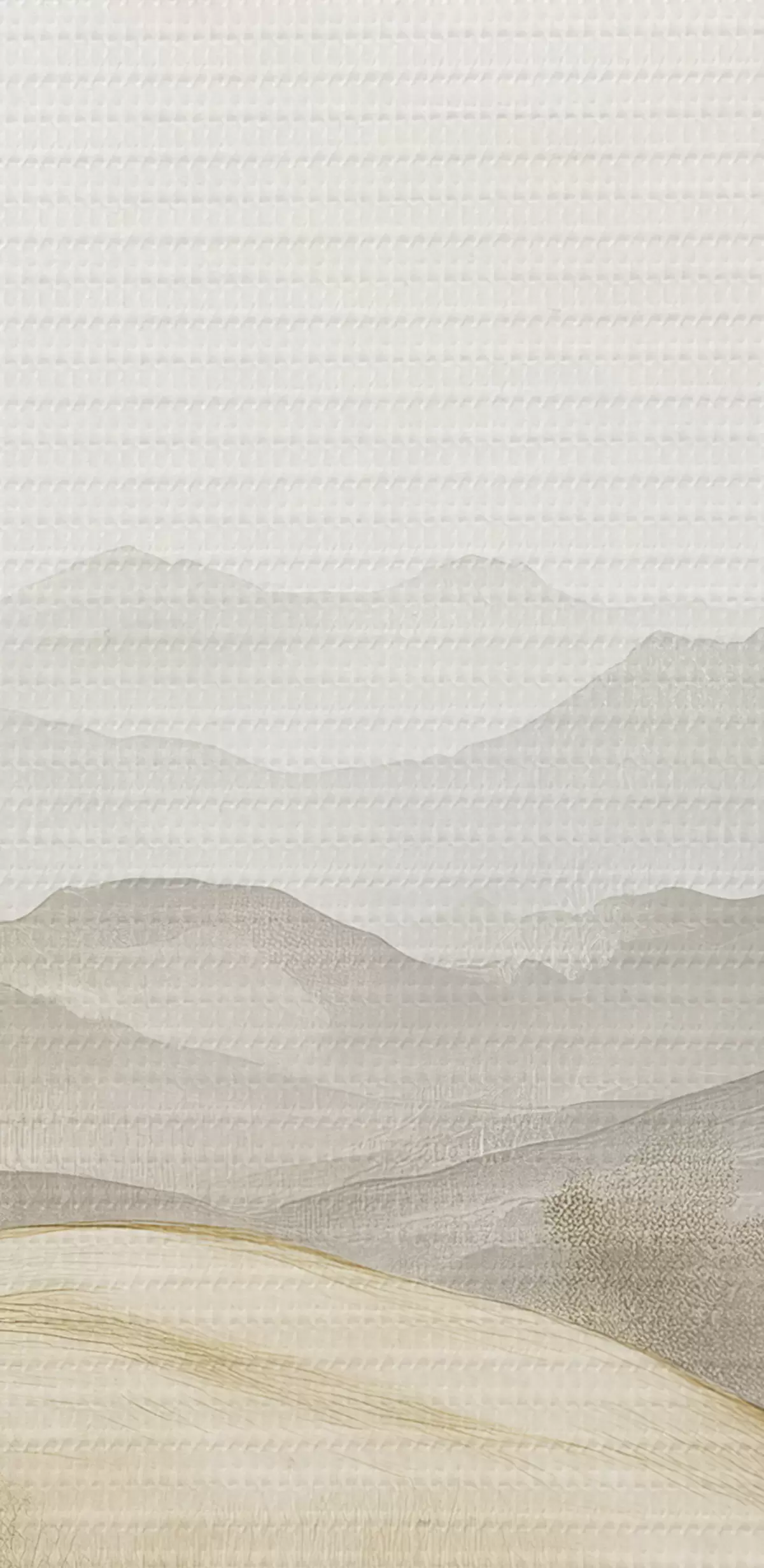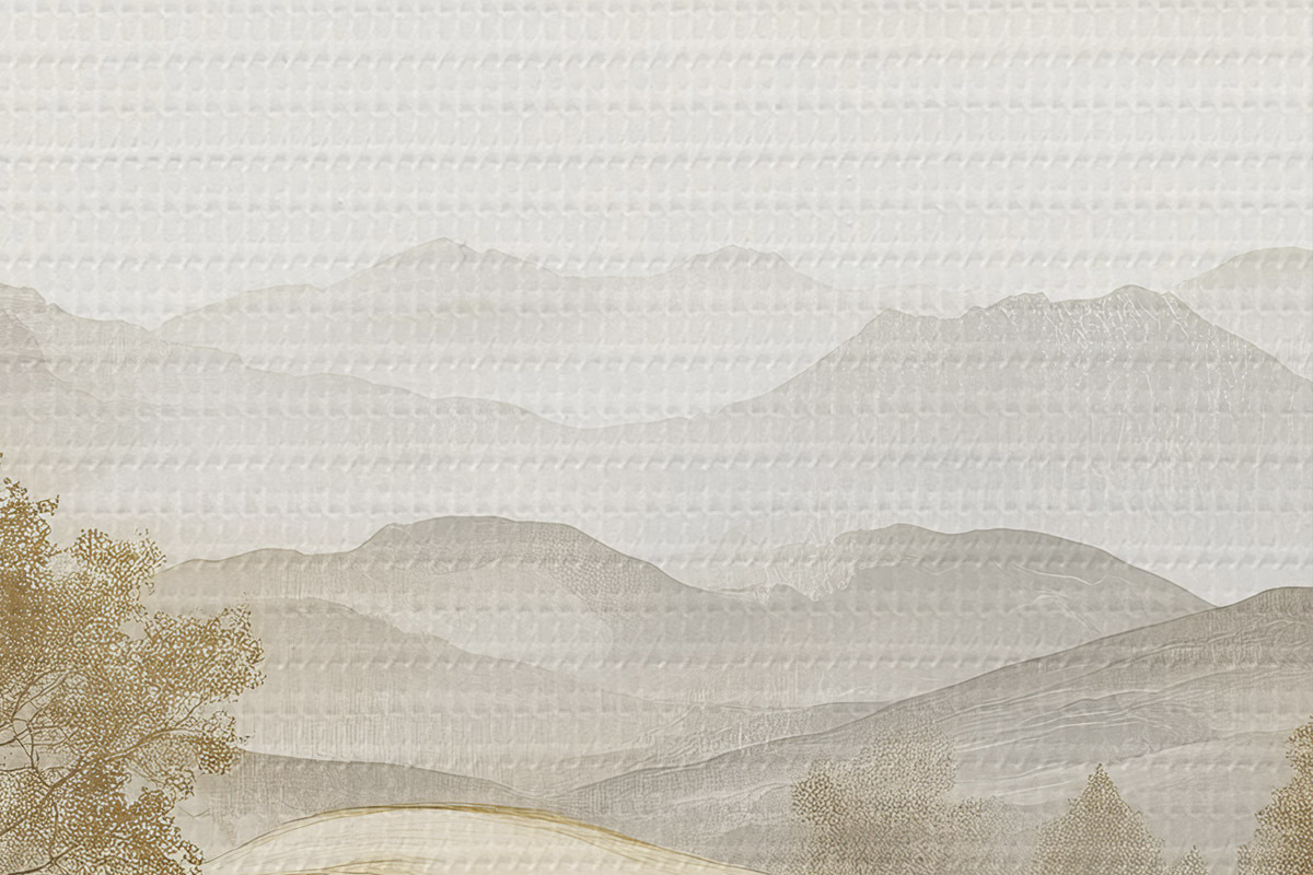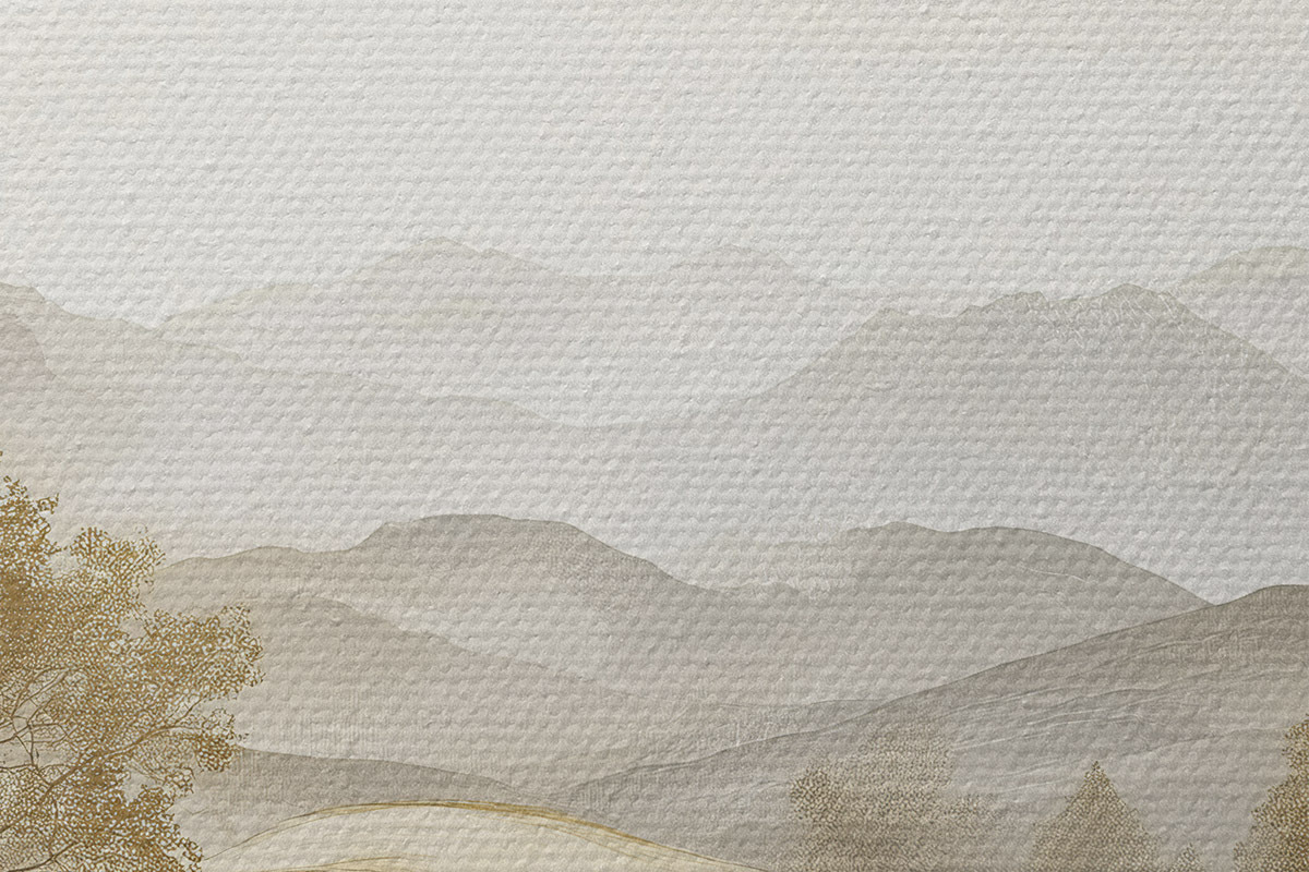 Foto Paisaje natural en paleta de colores beige, prado, árboles, dibujo de acuarela Nr r40231