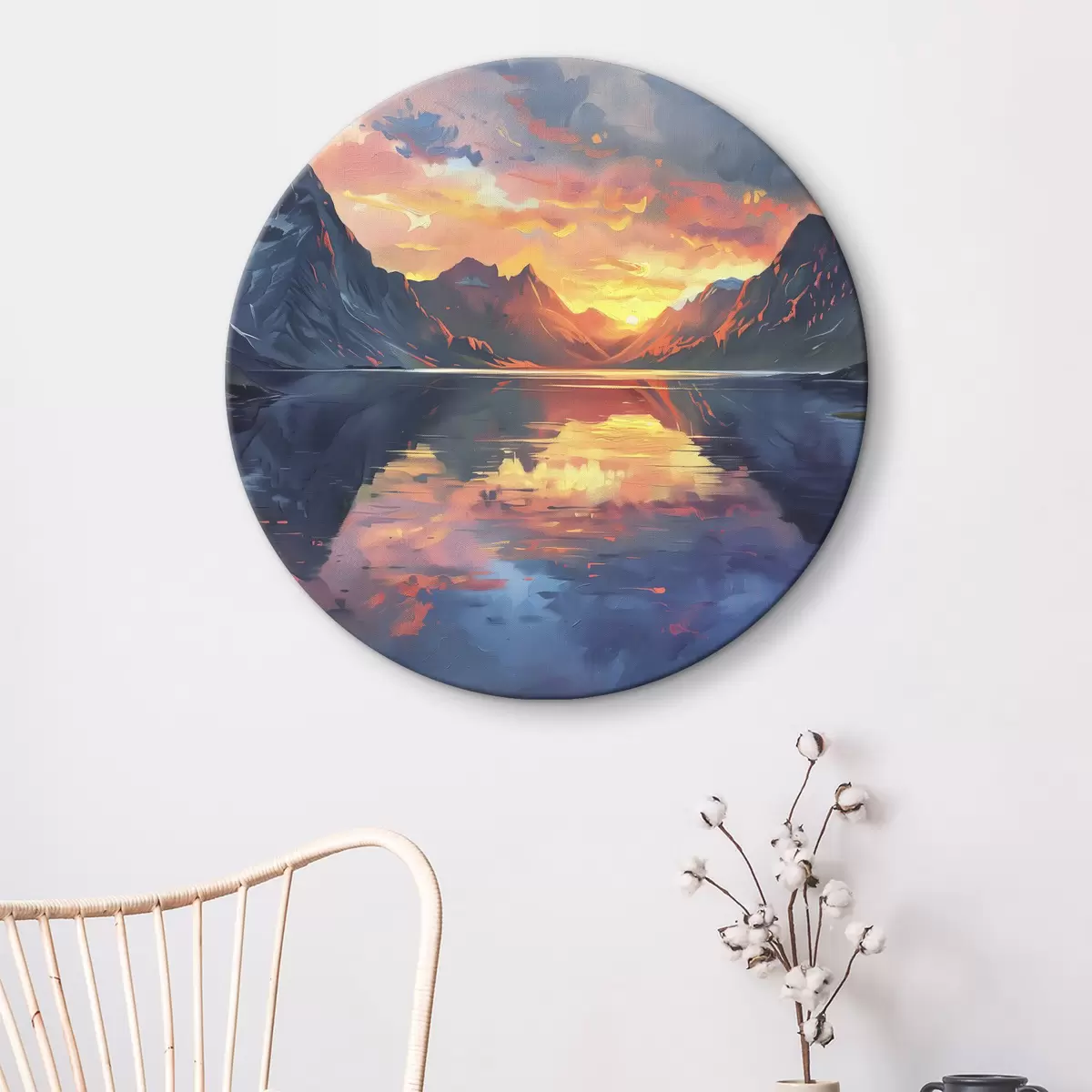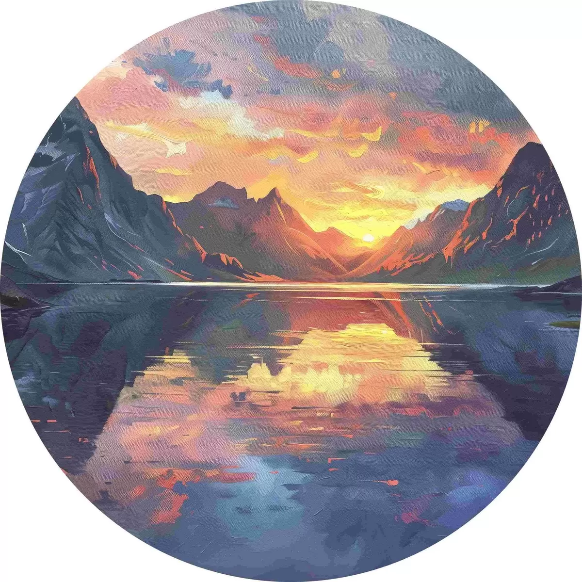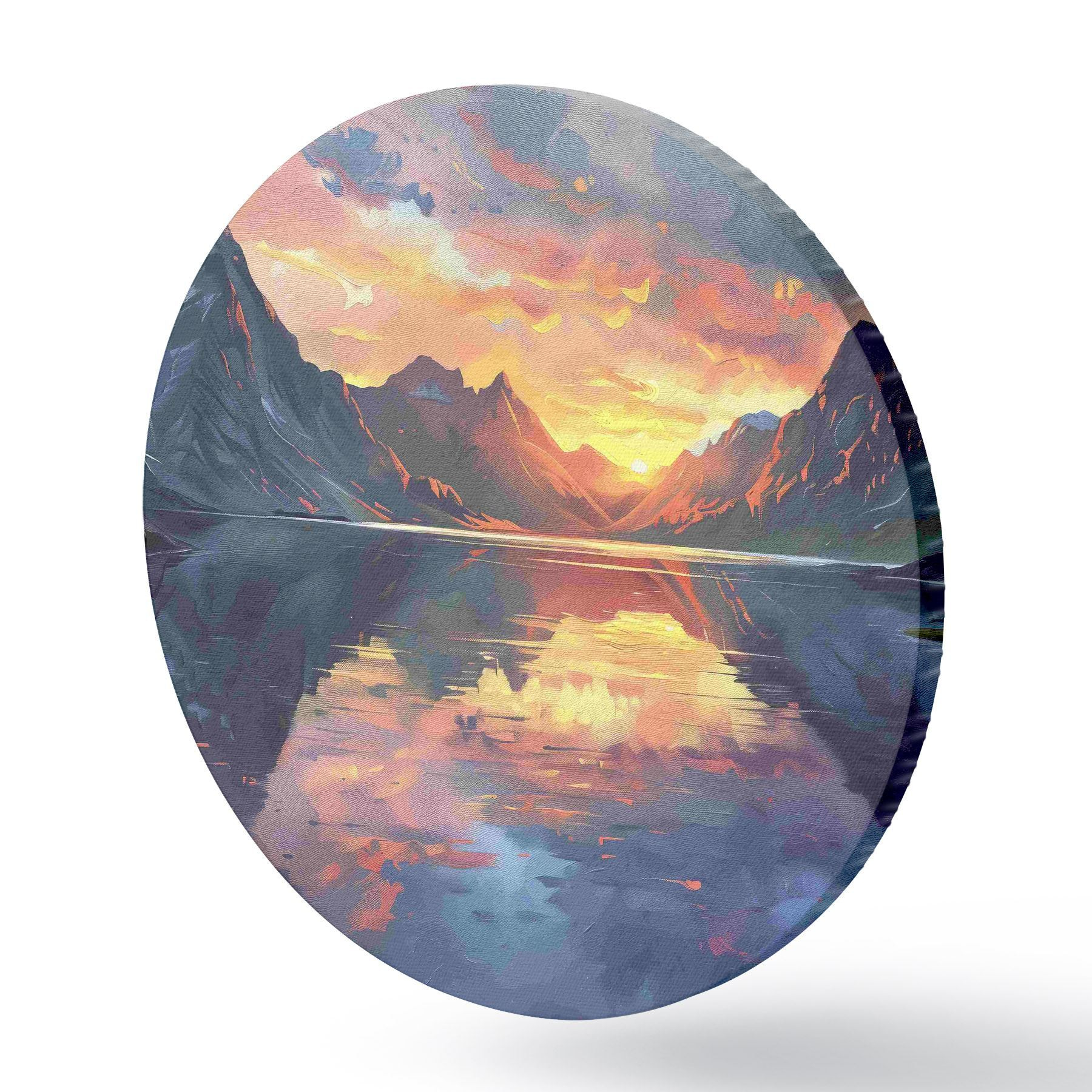 Cuadros redondos Puesta de sol en las montañas, río, paisajes de naturaleza, pintura acrílica r40306