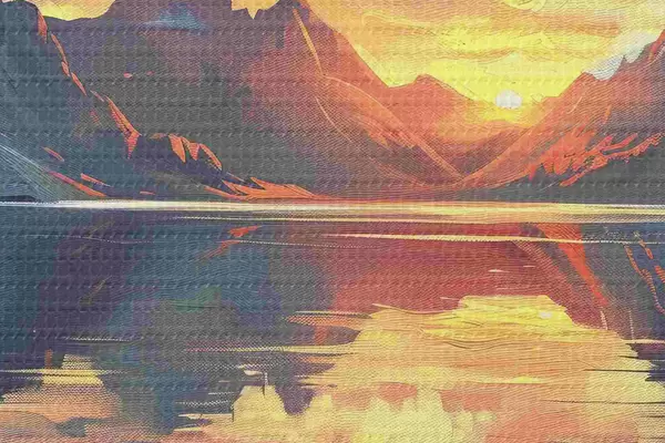 Foto Puesta de sol en las montañas, río, paisajes de naturaleza, pintura acrílica Nr r40306