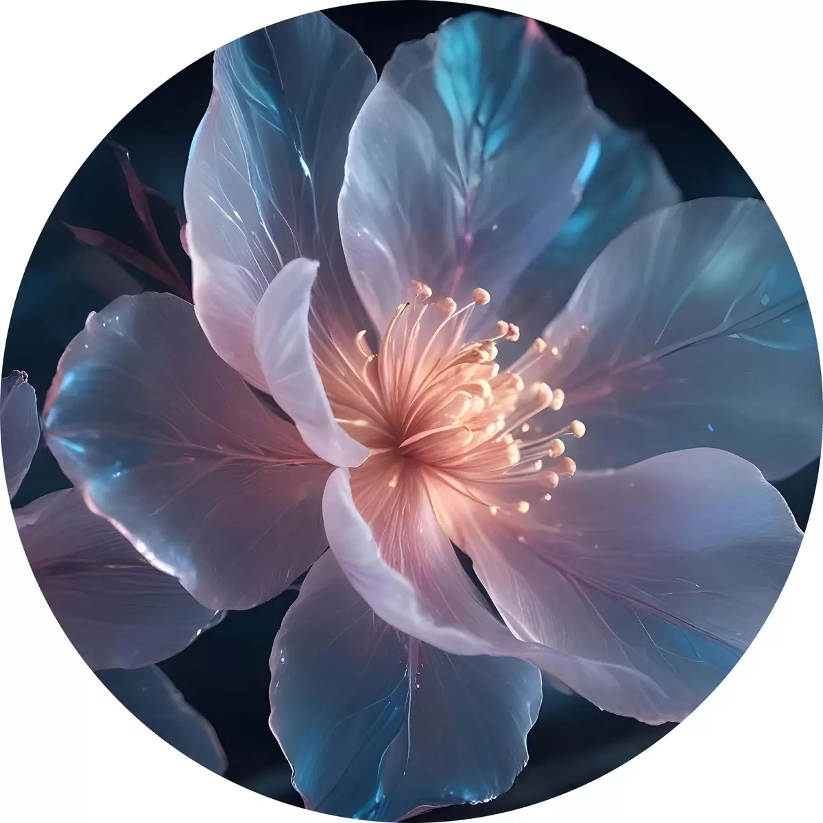 Cuadros redondos Delicadas flores rosas y blancas sobre un fondo oscuro suave y difuminado r40385