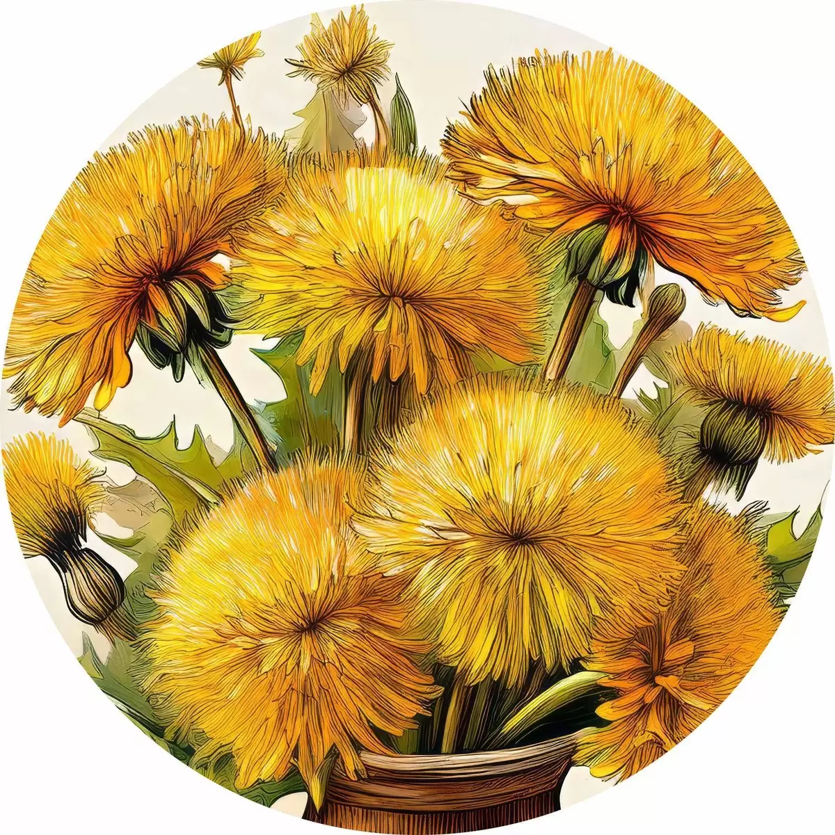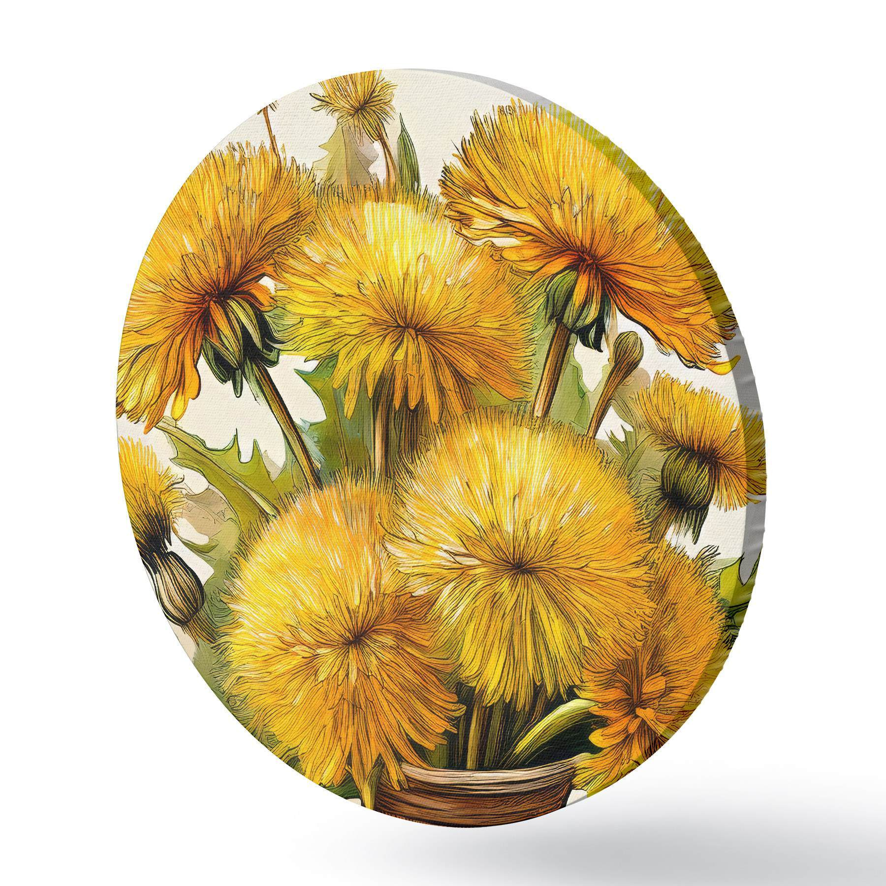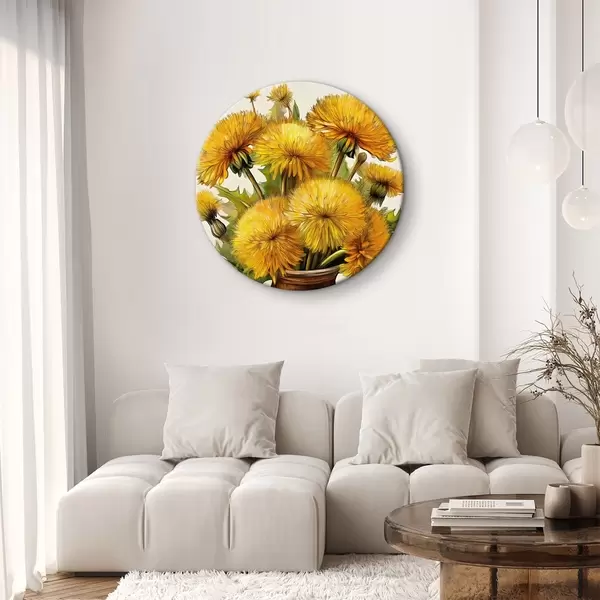 Cuadros redondos Dientes de león, ramo de dientes de león en un jarrón, dientes de león amarillos r40418