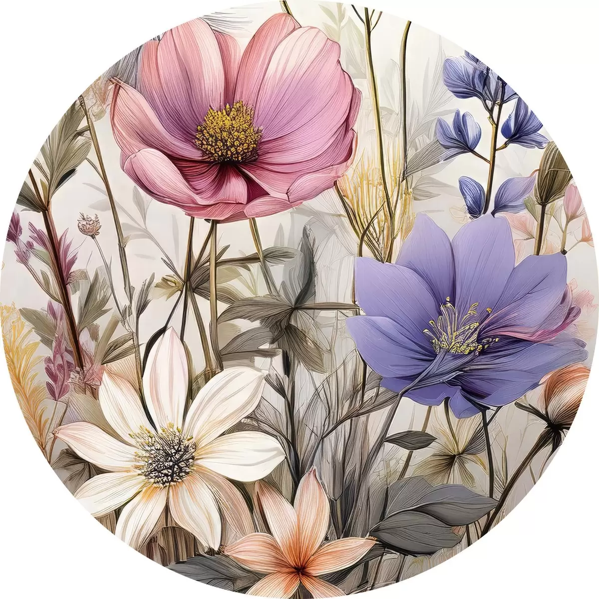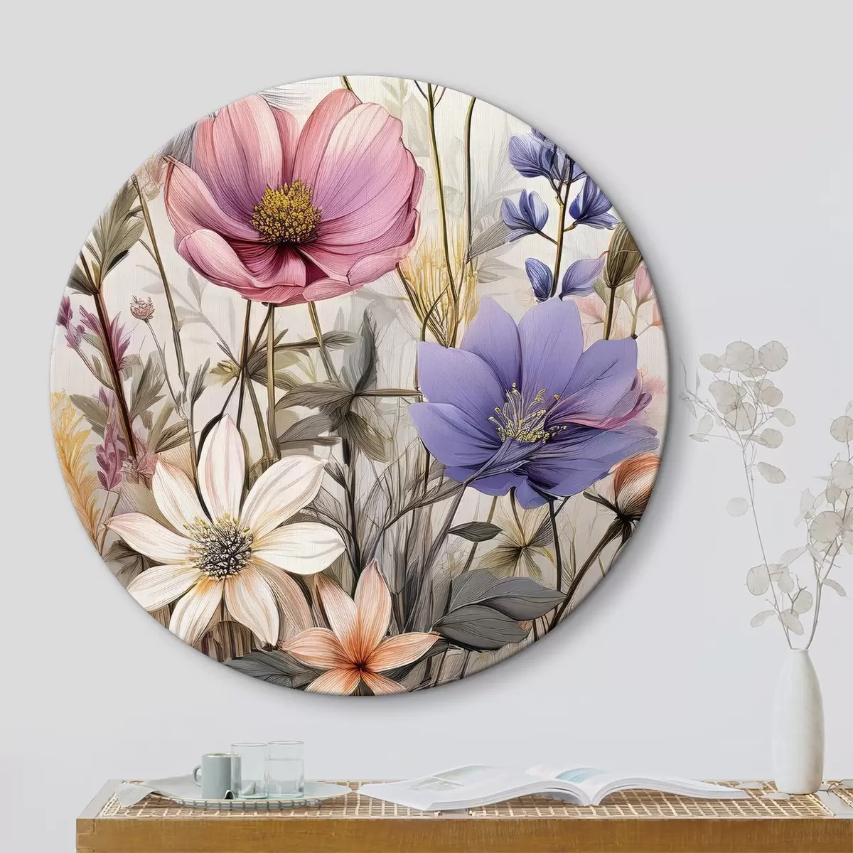 Cuadros redondos flores silvestres, arreglo floral r40423