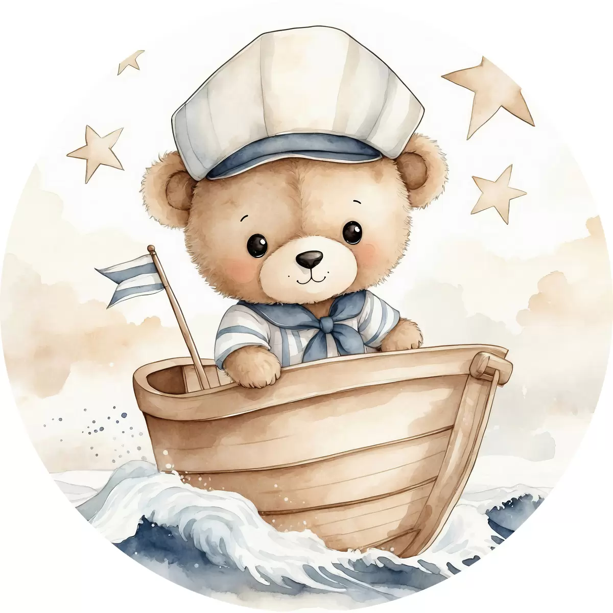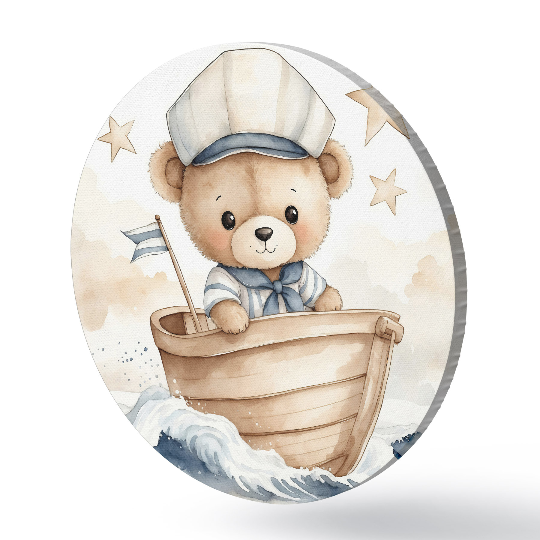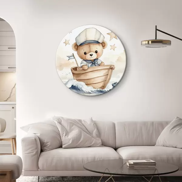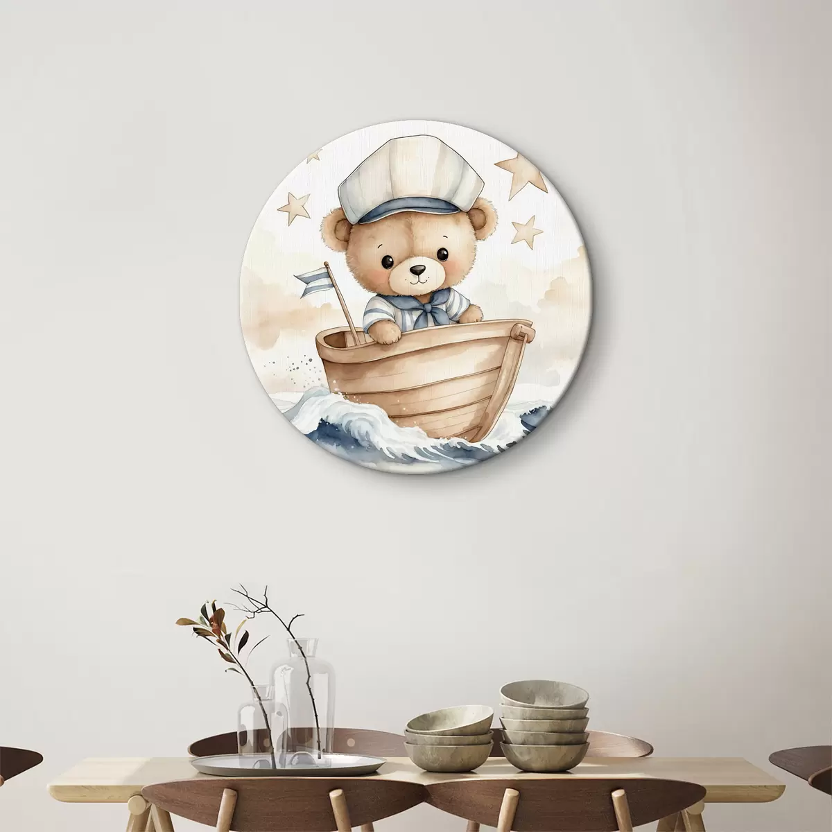 Cuadros redondos Lindo oso de acuarela en un barco r40428