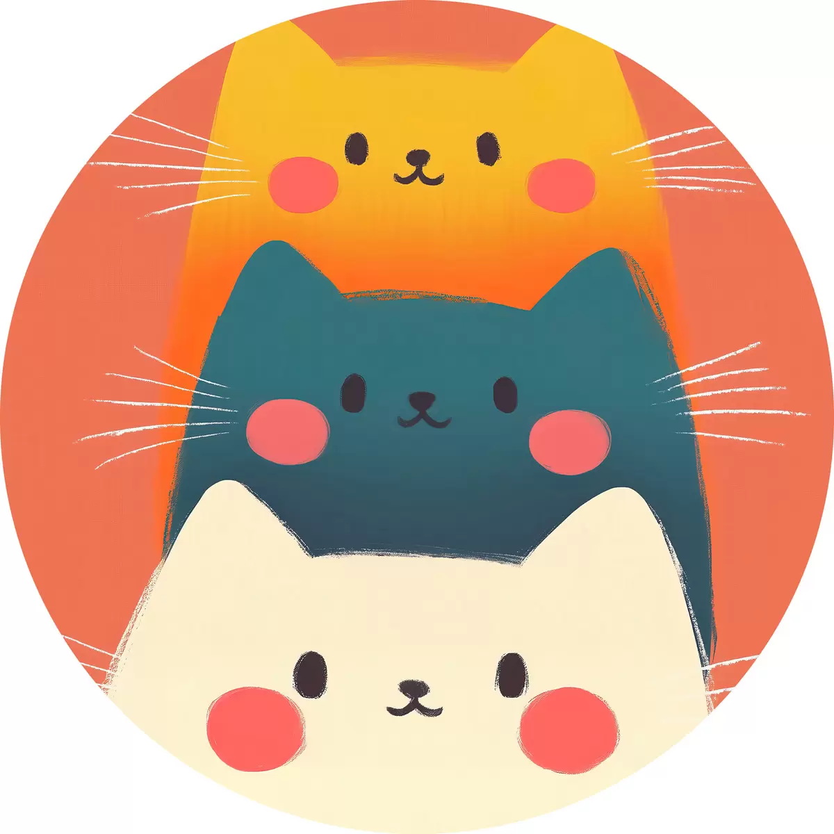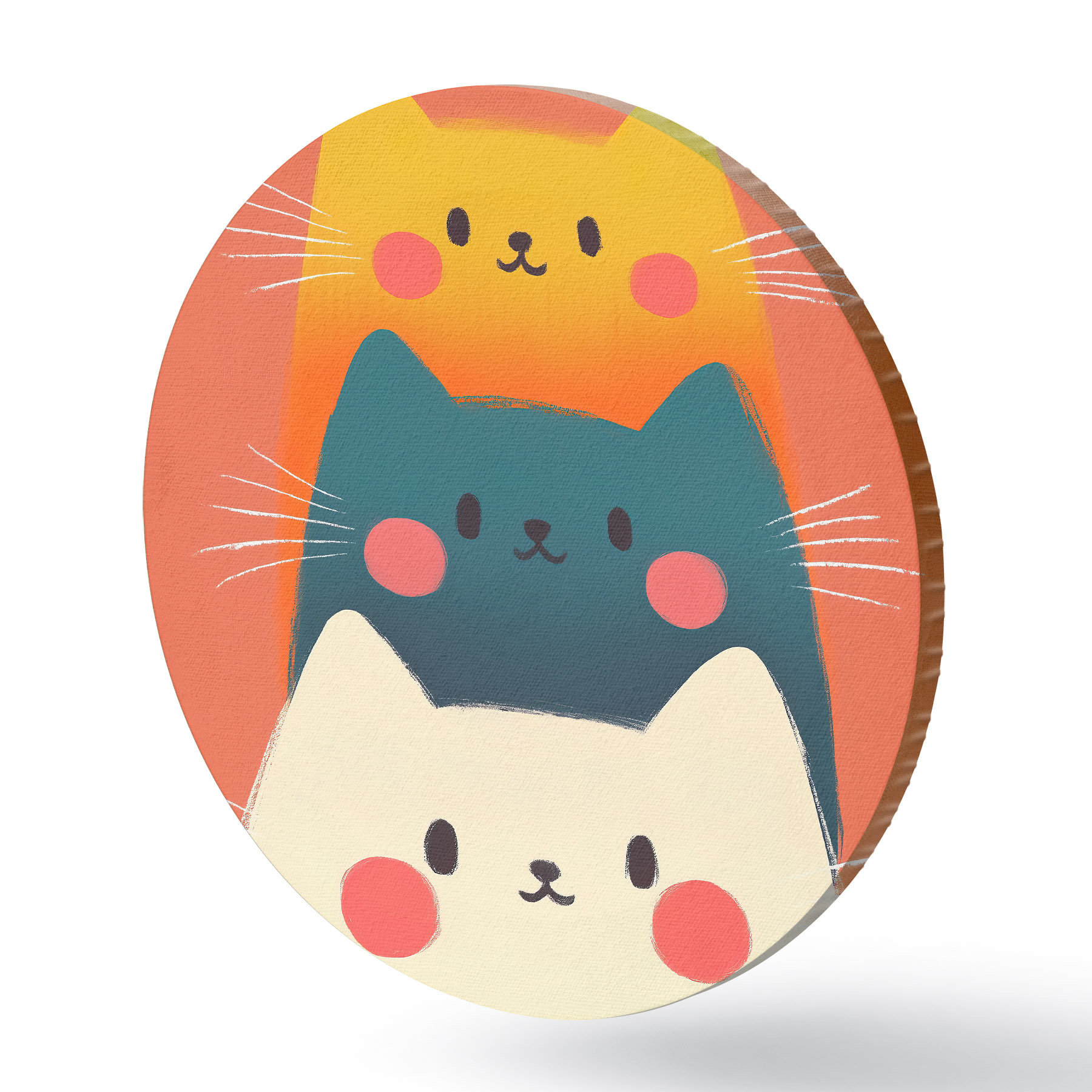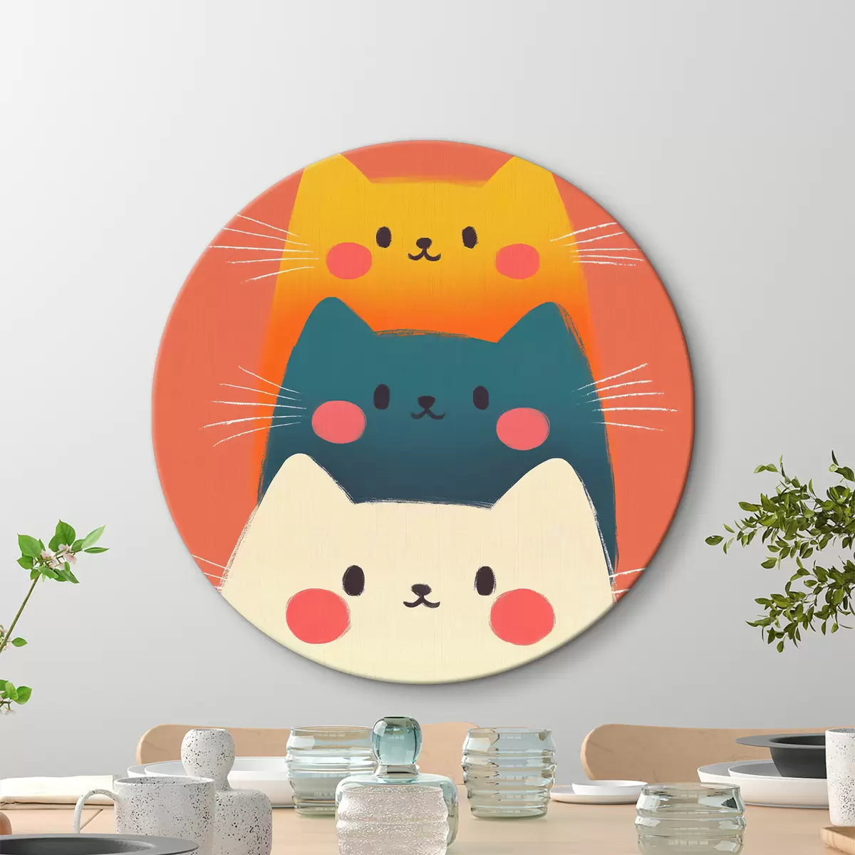 Cuadros redondos Tres gatos abstractos multicolores r40431