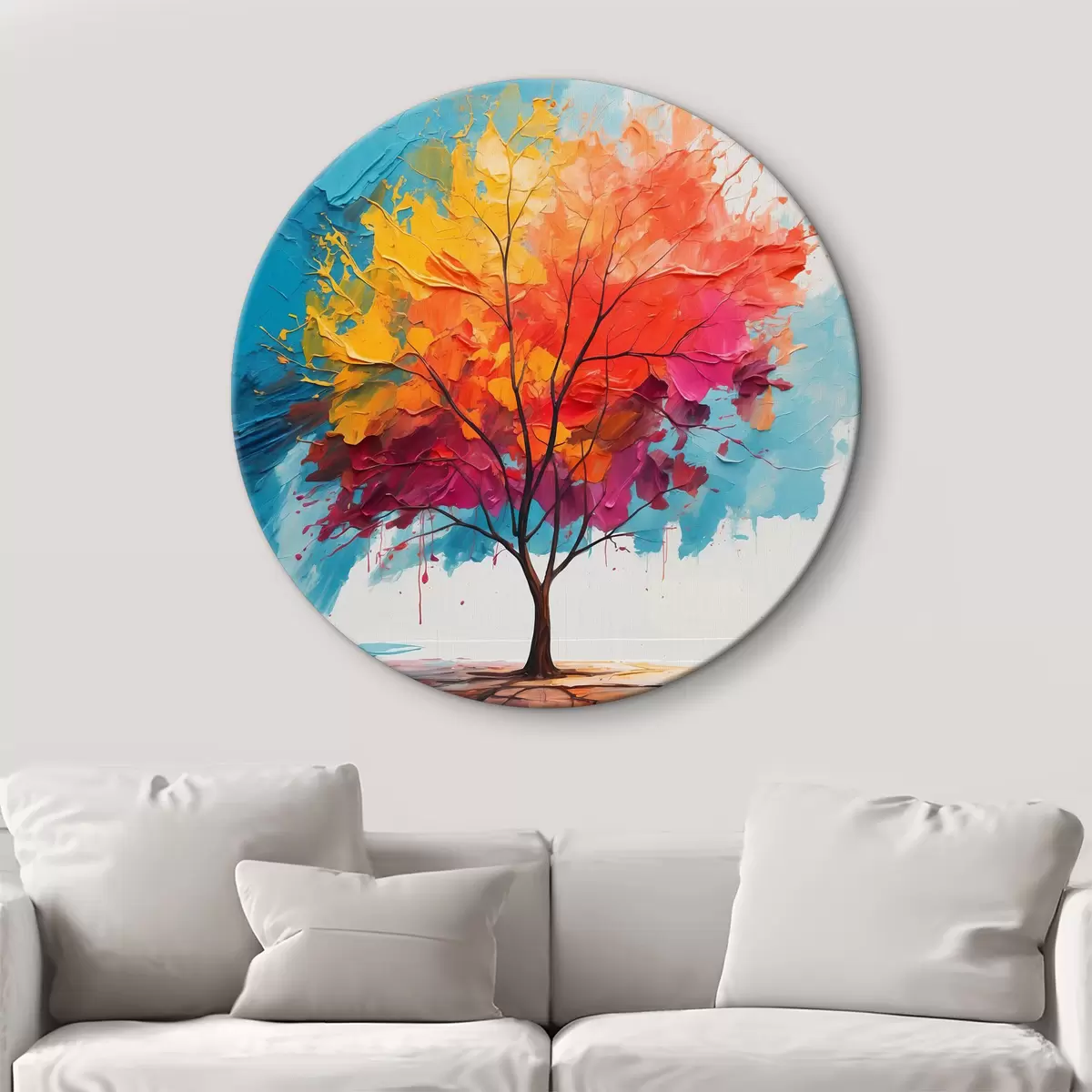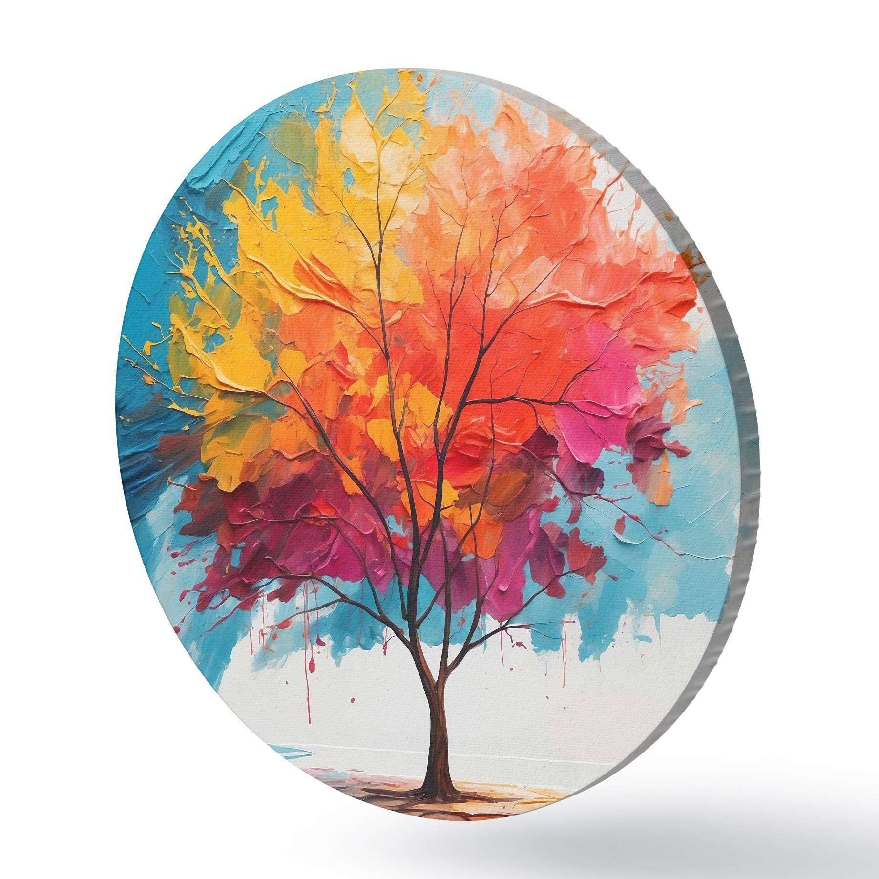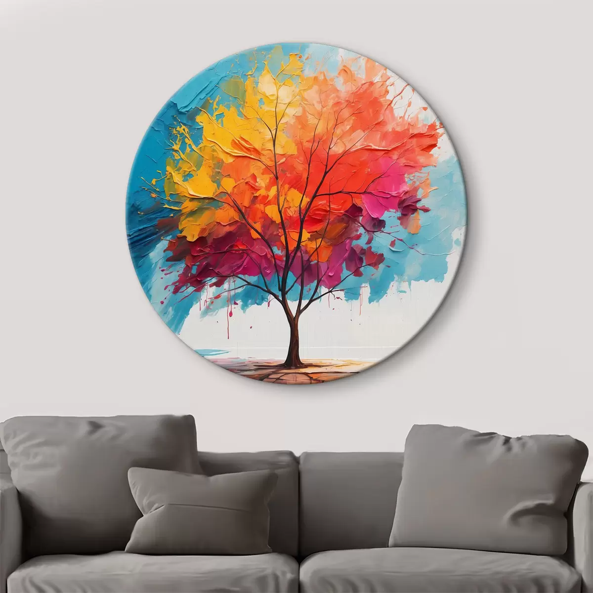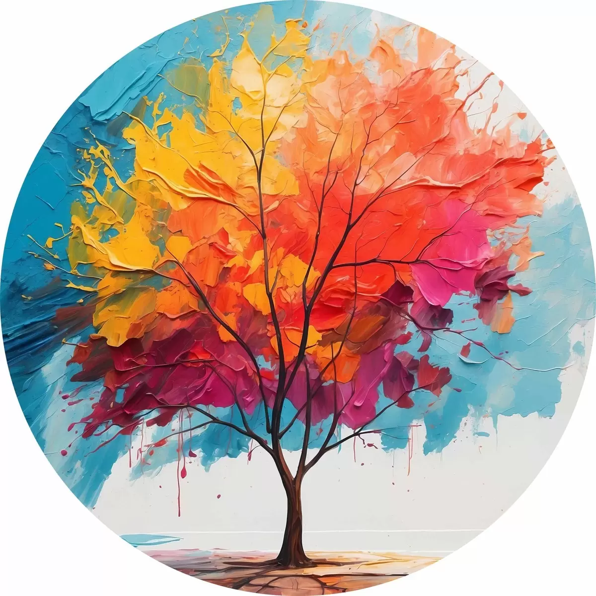 Cuadros redondos Árbol multicolor abstracto en el lago r40455