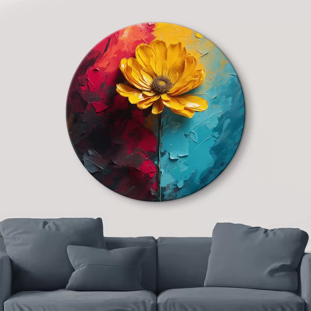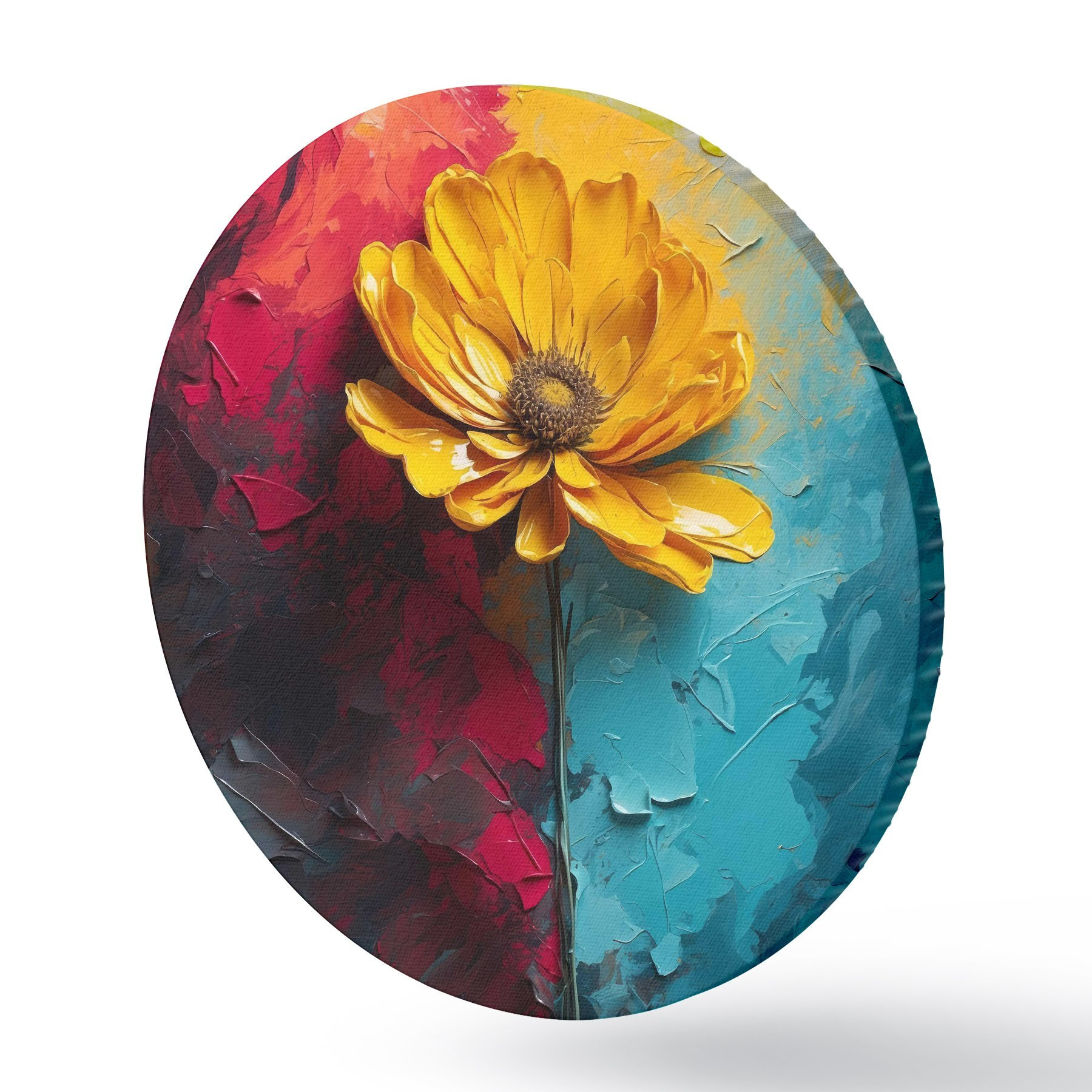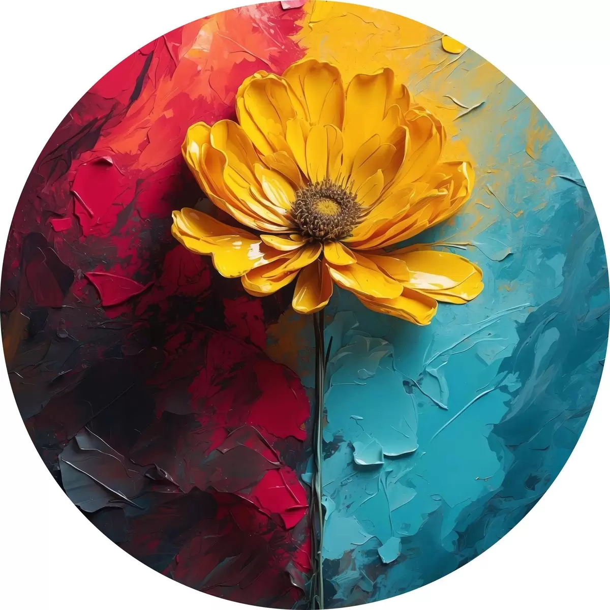 Cuadros redondos Flor amarilla sobre fondo acrílico abstracto r40483