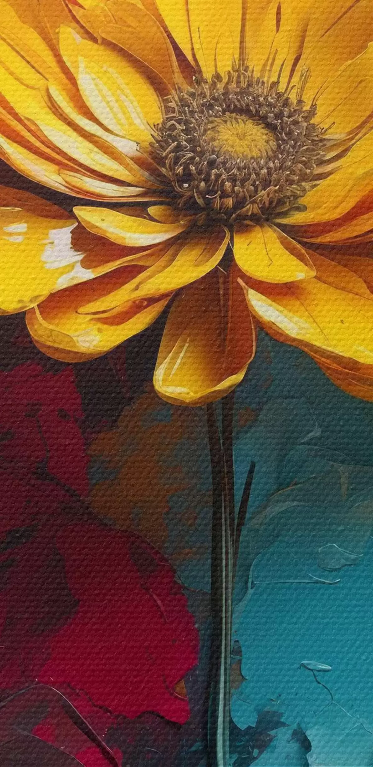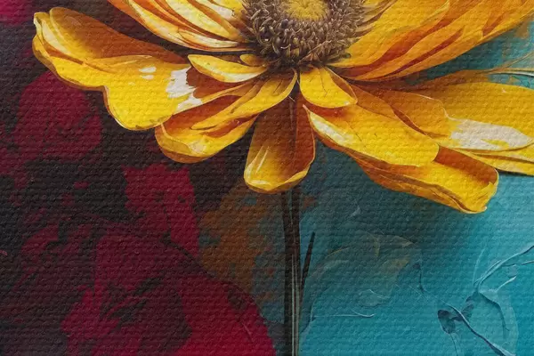 Foto Flor amarilla sobre fondo acrílico abstracto Nr r40483