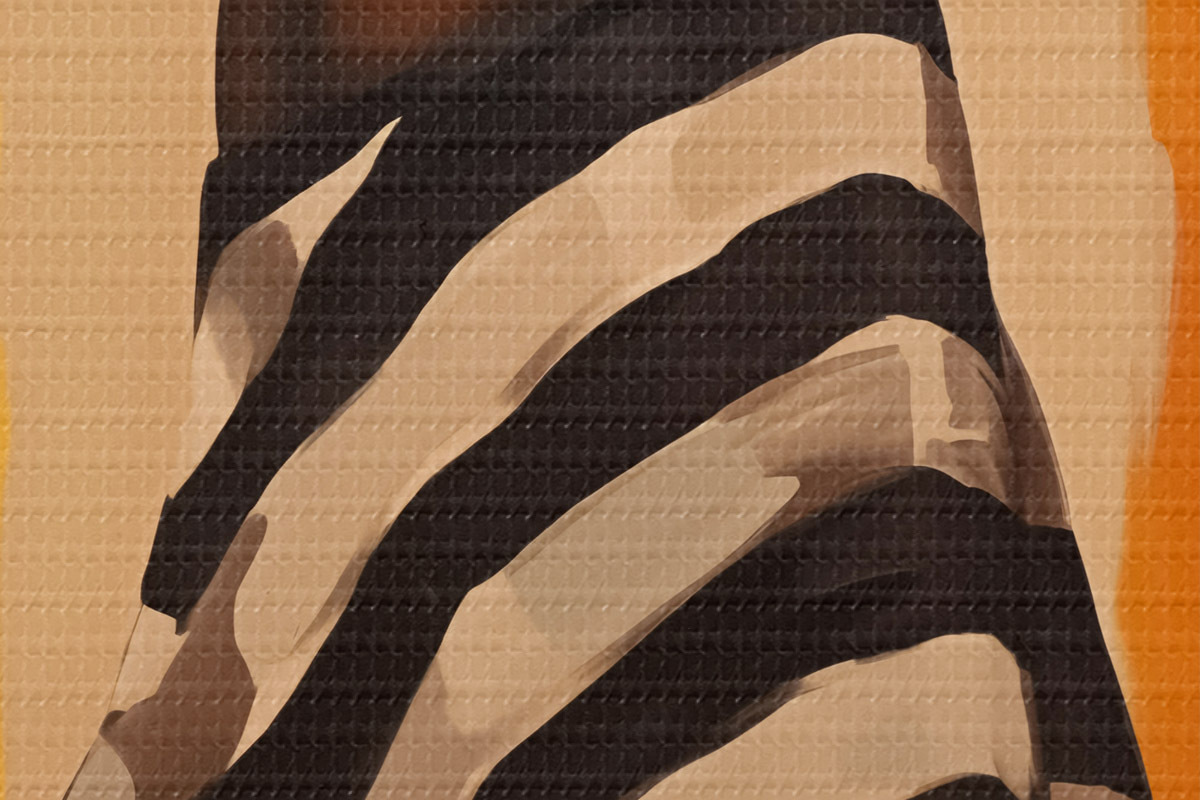 Foto Silueta de una mujer afroamericana con una capa de rayas sobre un fondo con rayas verticales, negro, beige, amarillo, rojo, marrón Nr r40487