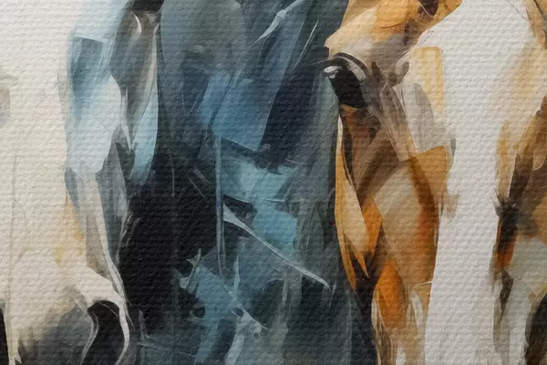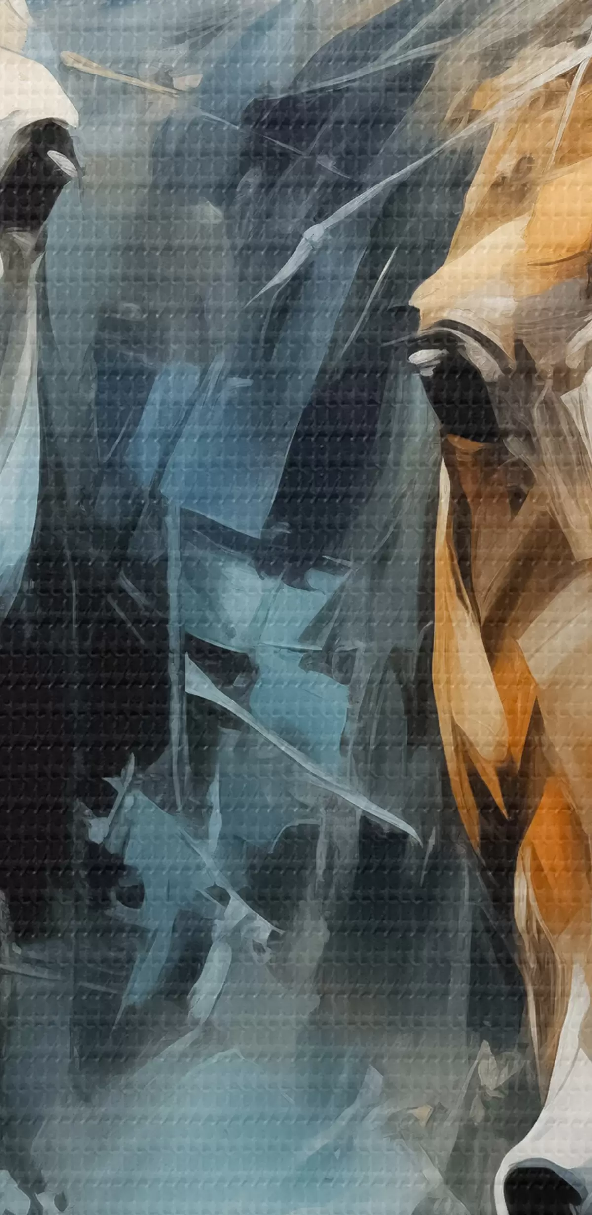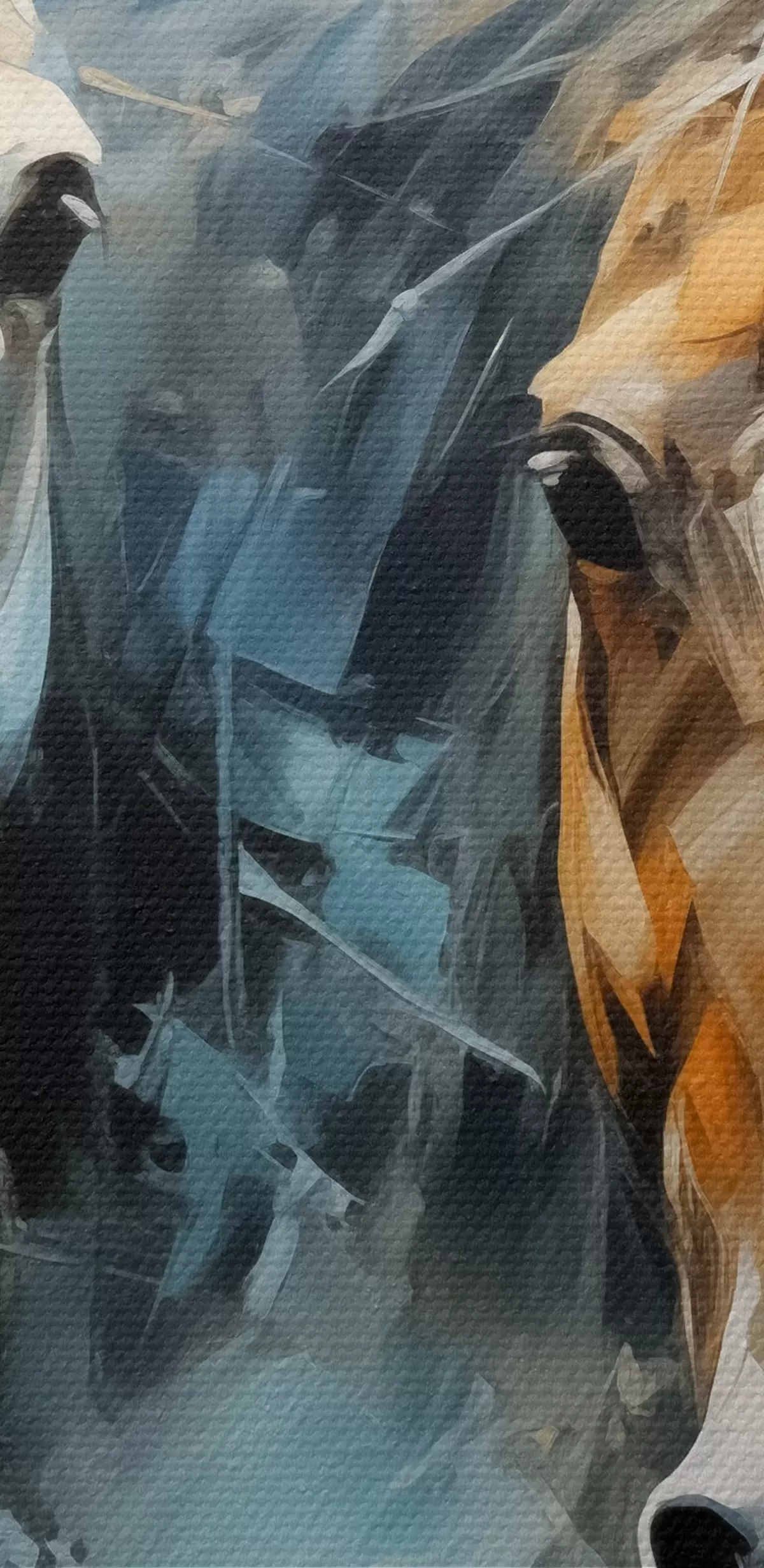 Foto Cuadro abstracto de caballos, color blanco, azul y marrón Nr r40493