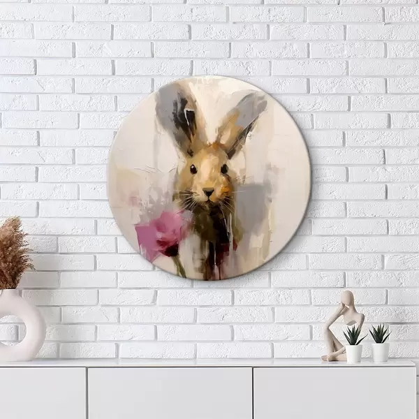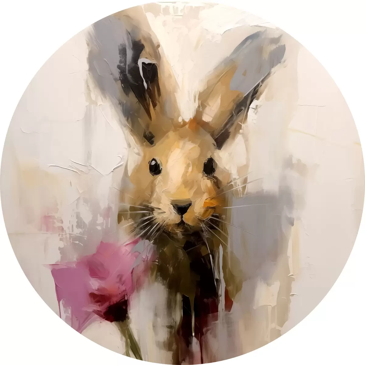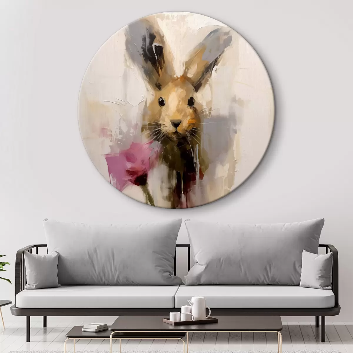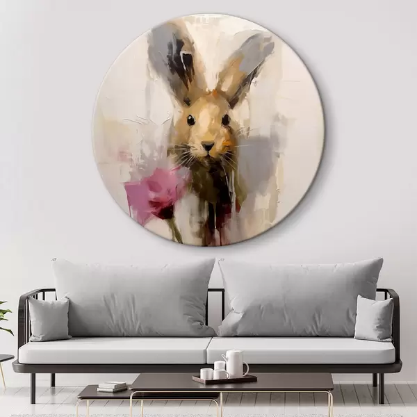 Cuadros redondos Liebre y flor abstractas, gris, rosa, marrón r40516