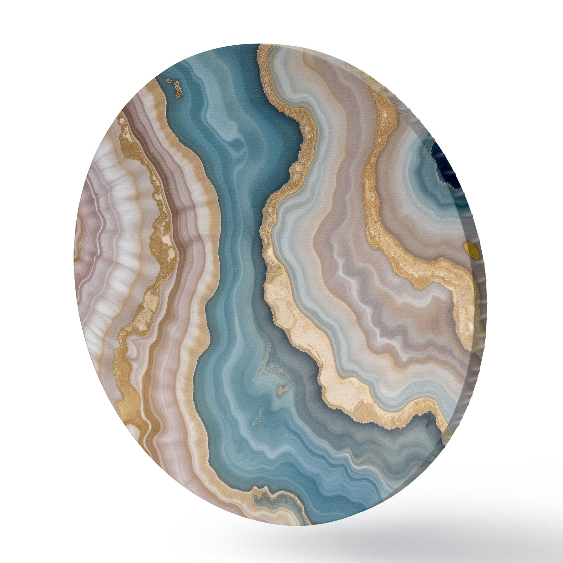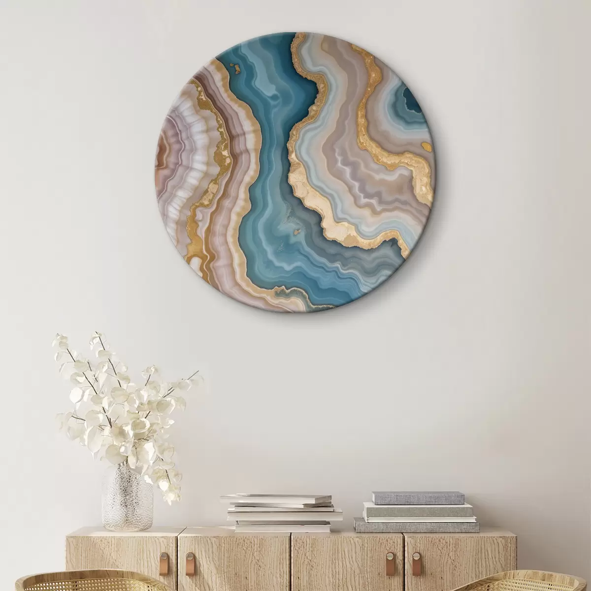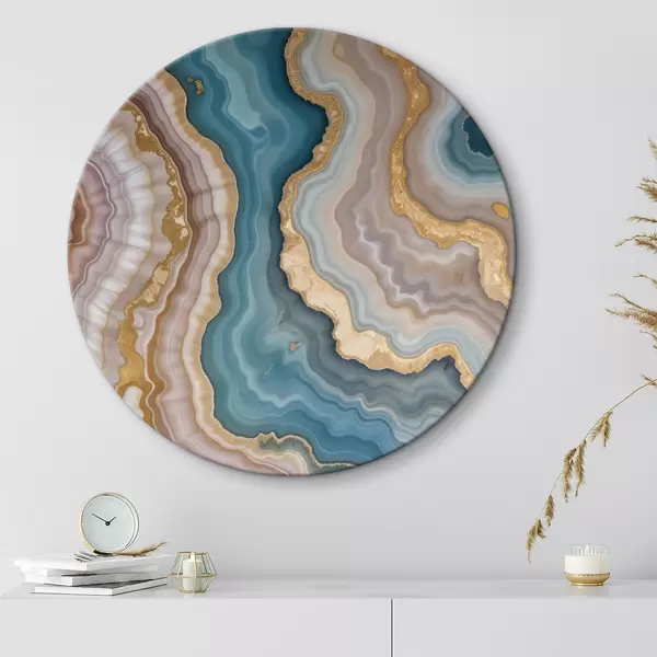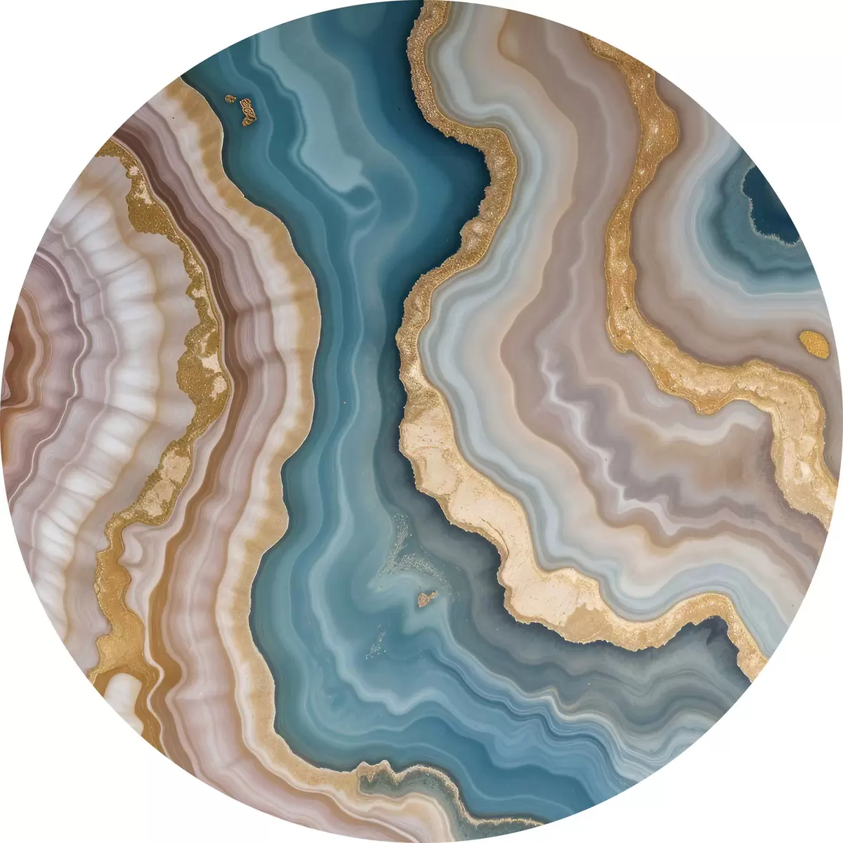 Cuadros redondos Piedra de ágata abstracta colorida con patrones en espiral y capas de turquesa, beige, rosa y amarillo r40540