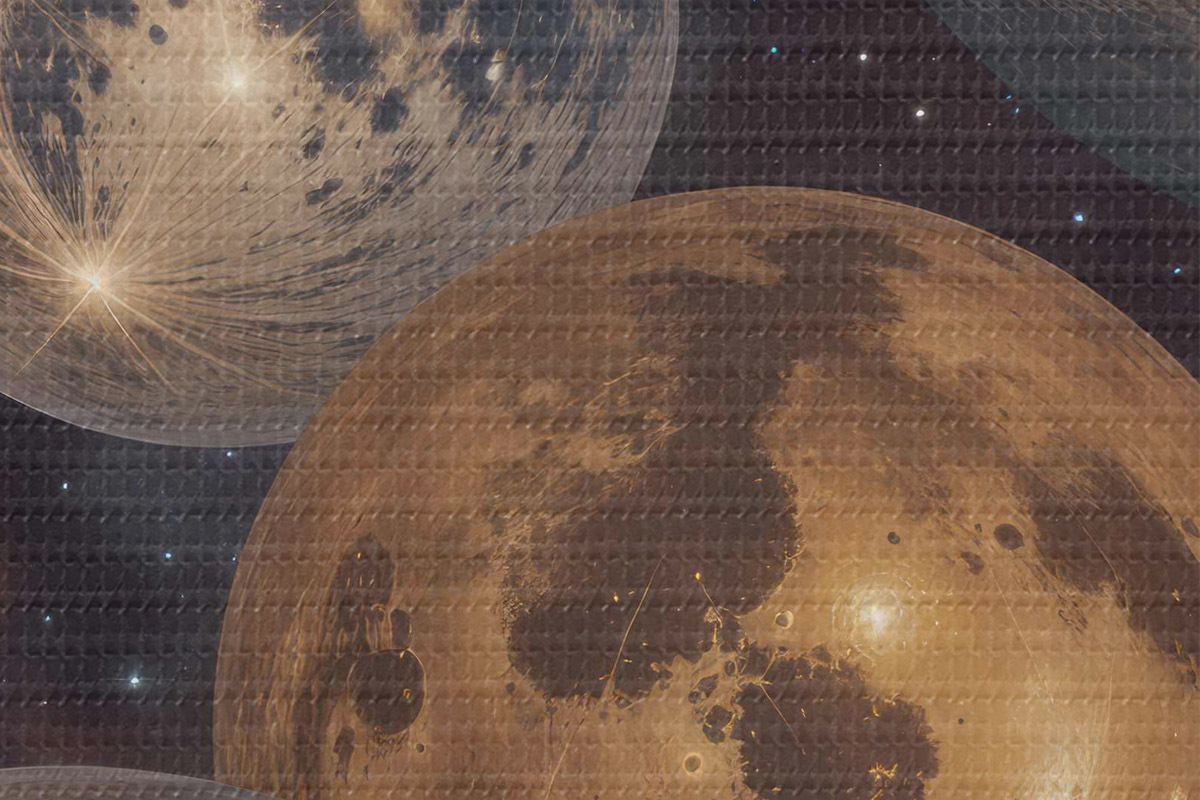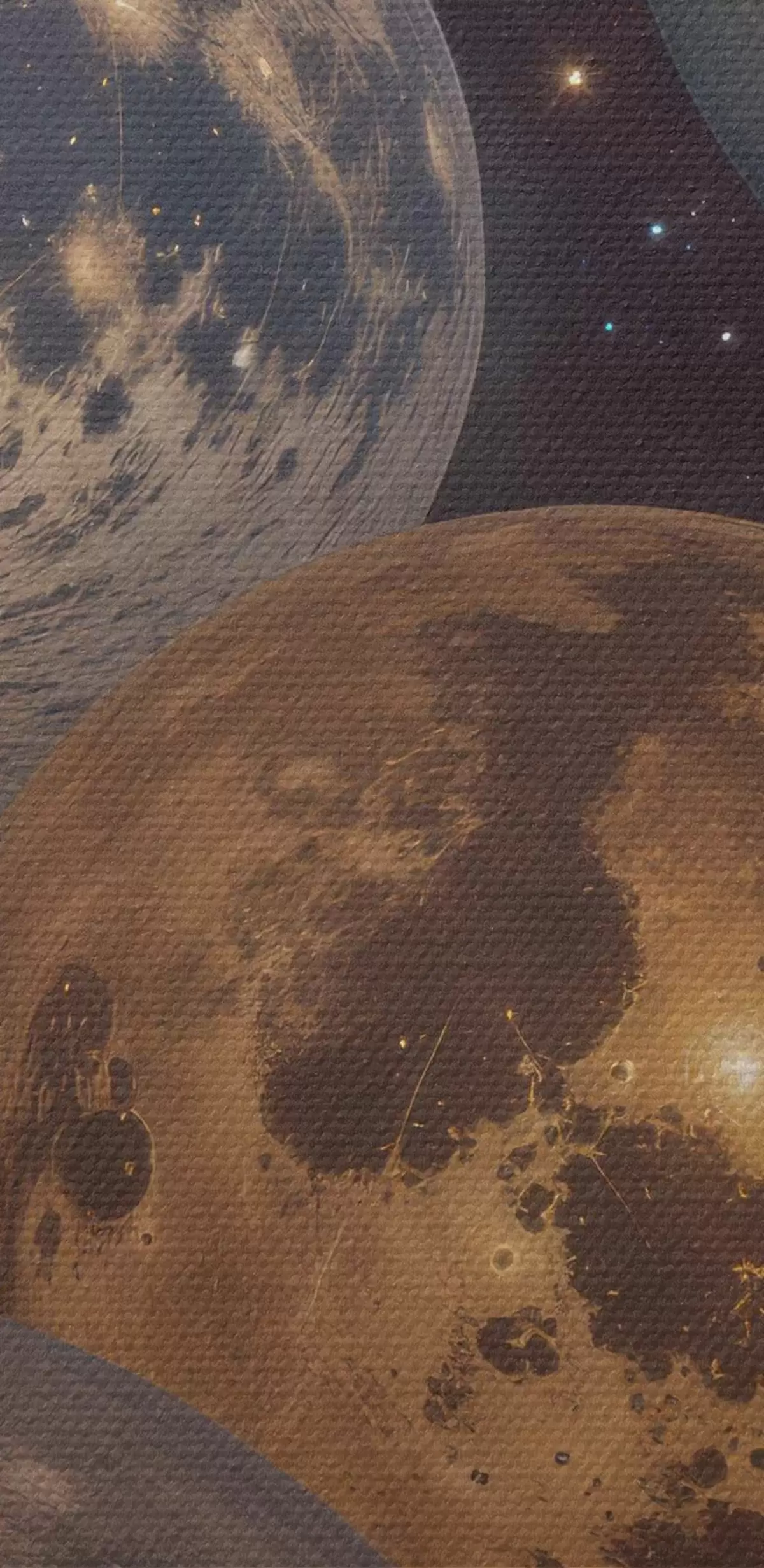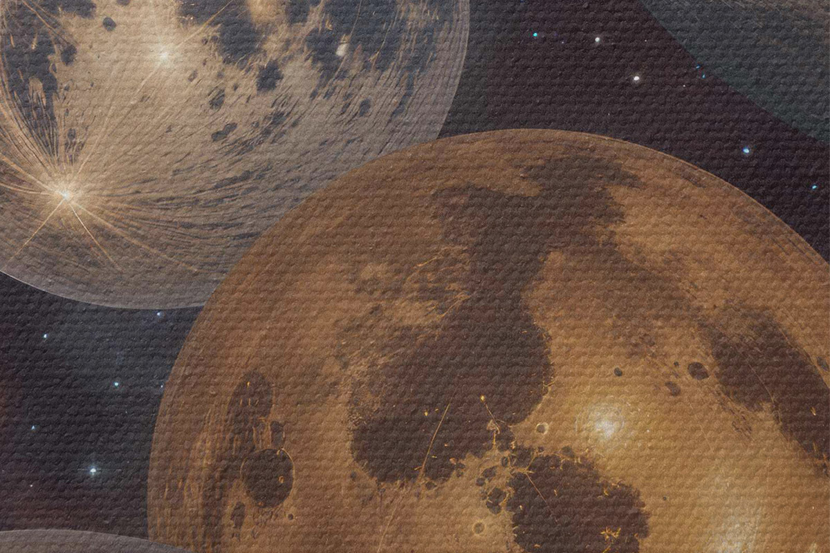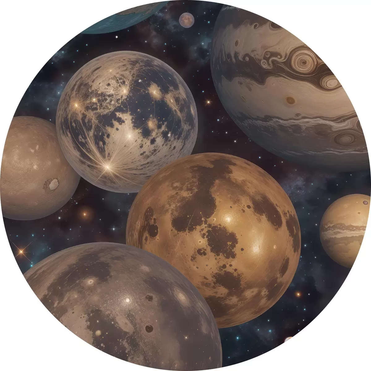 Foto Estampado espacial abstracto con coloridos planetas y lunas flotando en el cielo nocturno estrellado Nr r40607