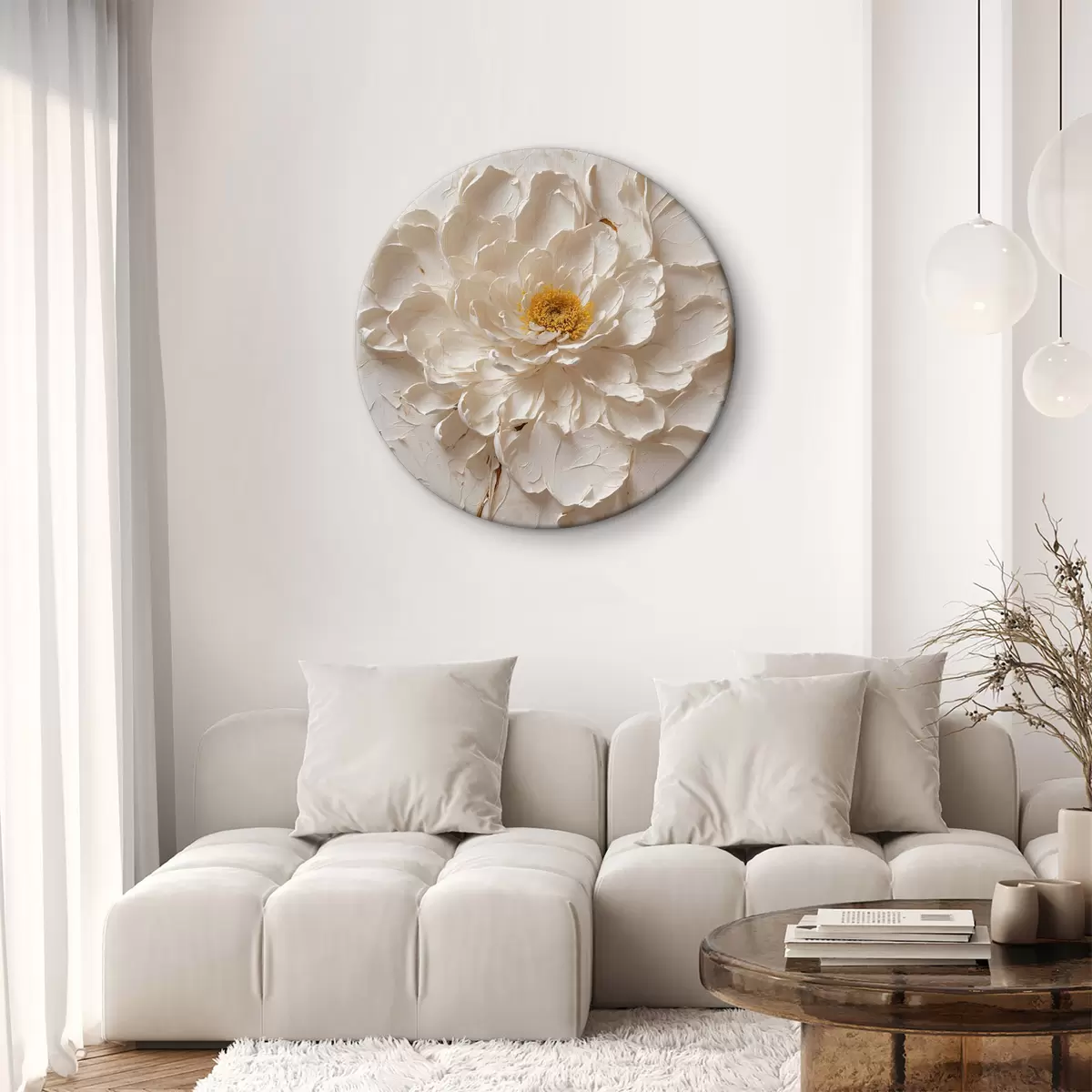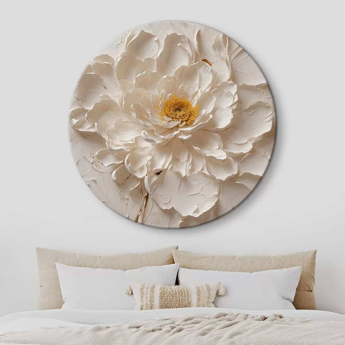 Cuadros redondos Flor blanca al óleo sobre fondo blanco r40618