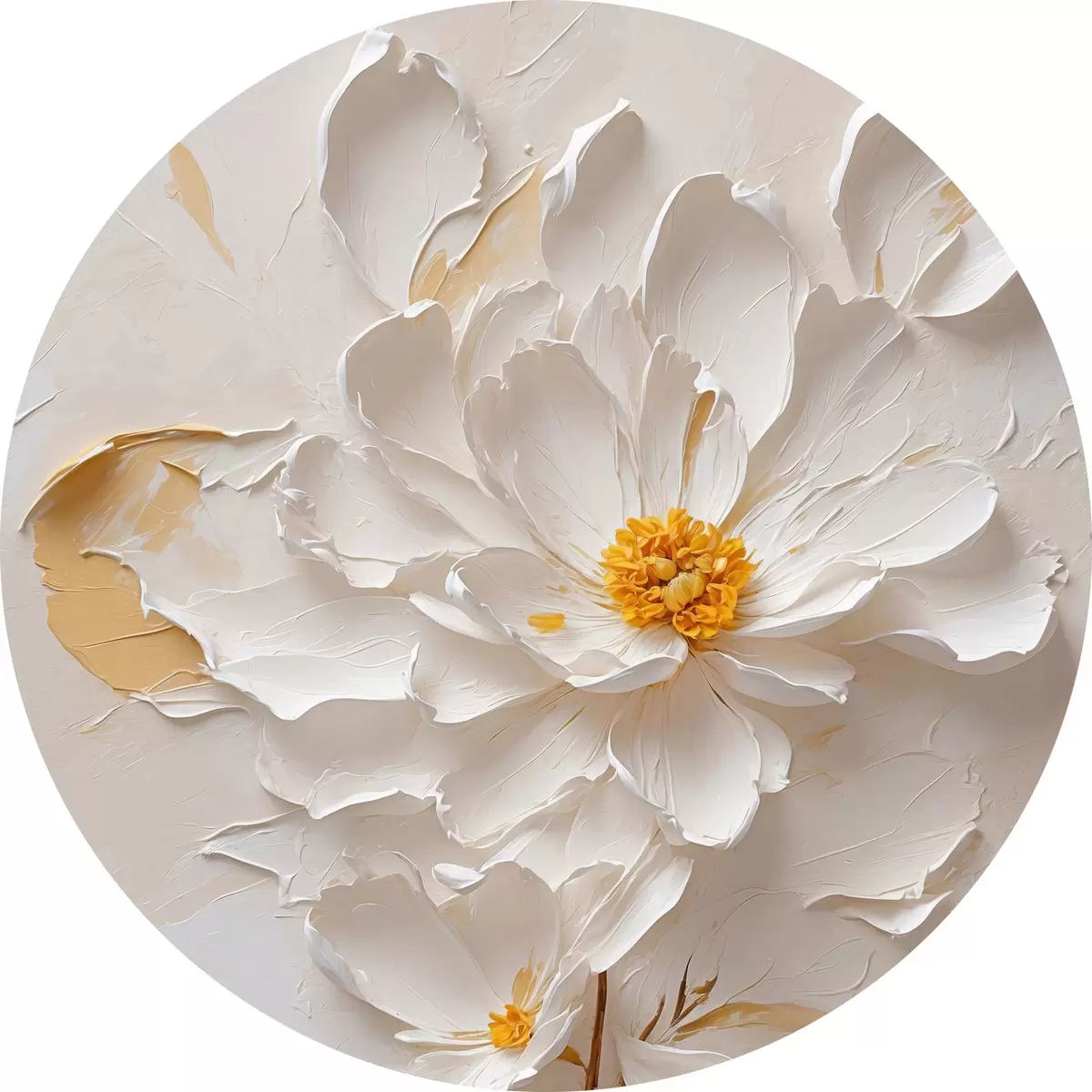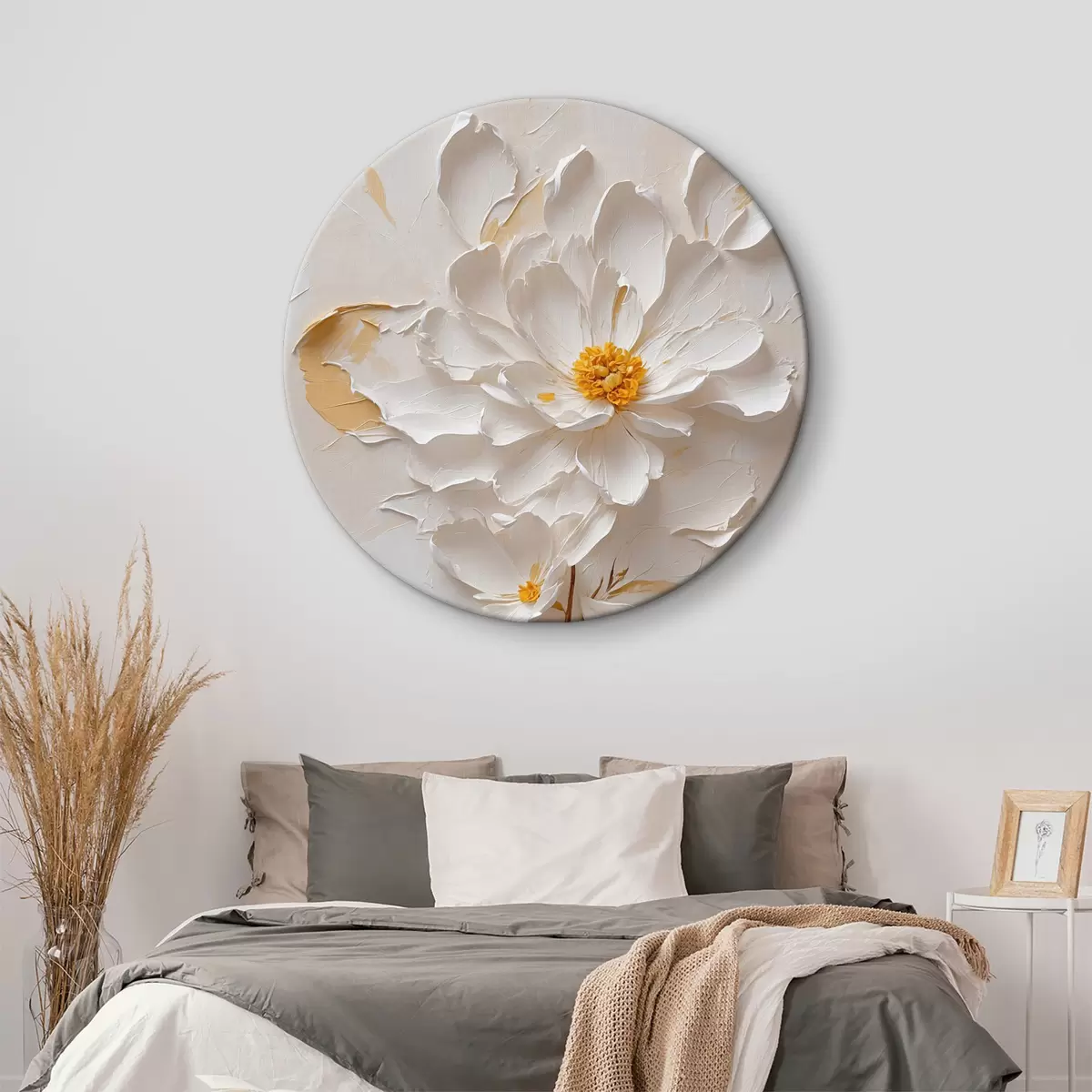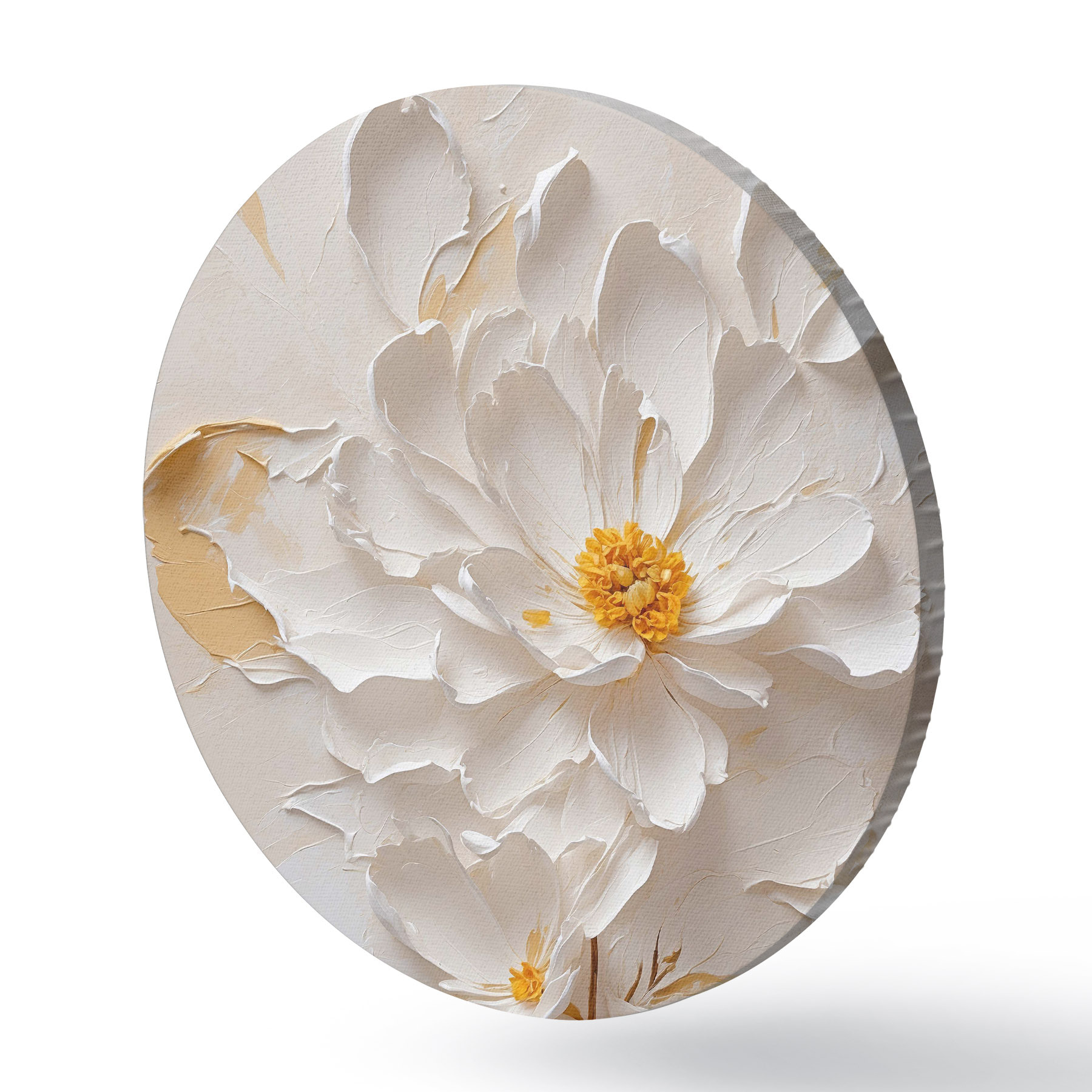 Cuadros redondos Flor blanca en aceite con tallo marrón r40619
