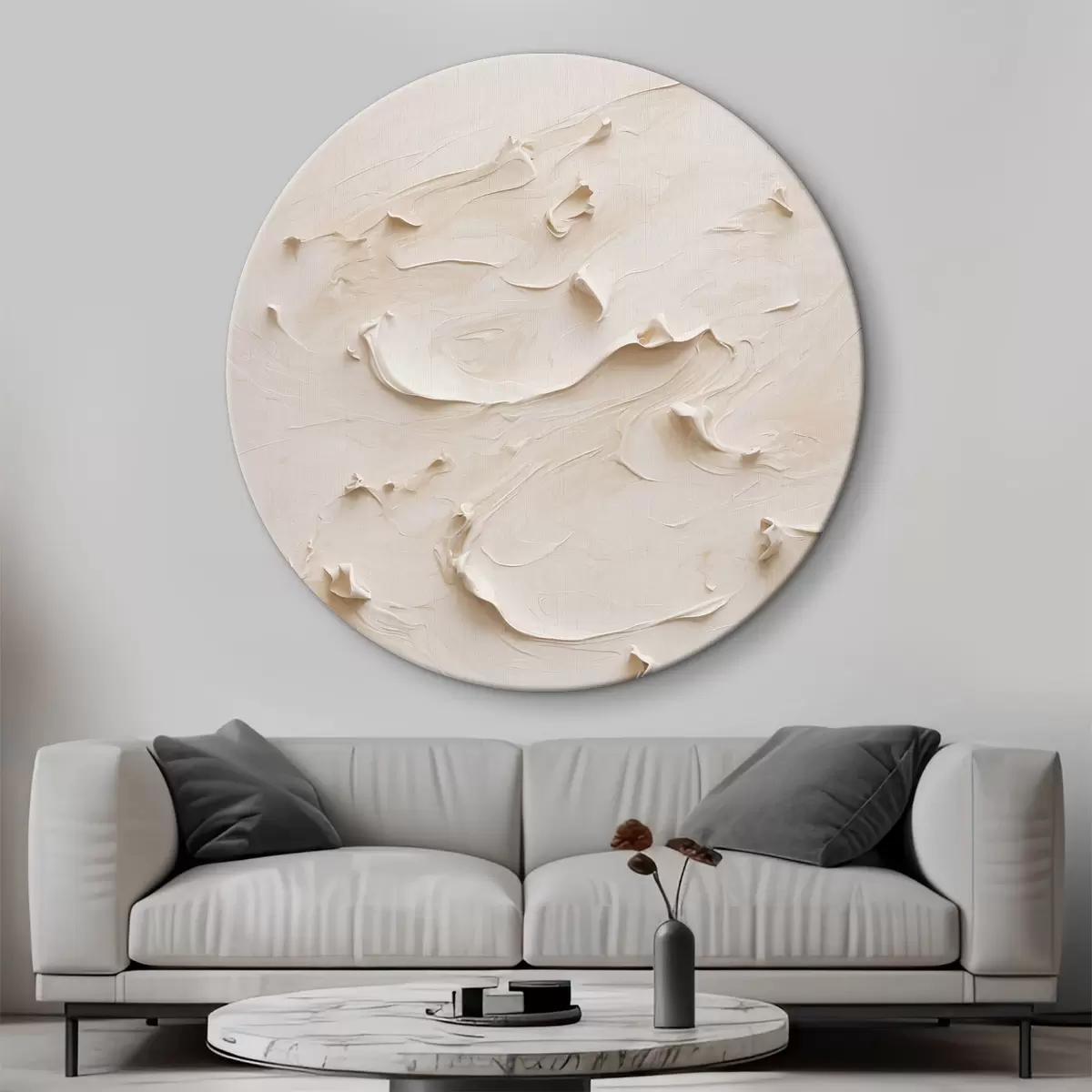 Cuadros redondos Pintura abstracta al óleo en blanco r40623