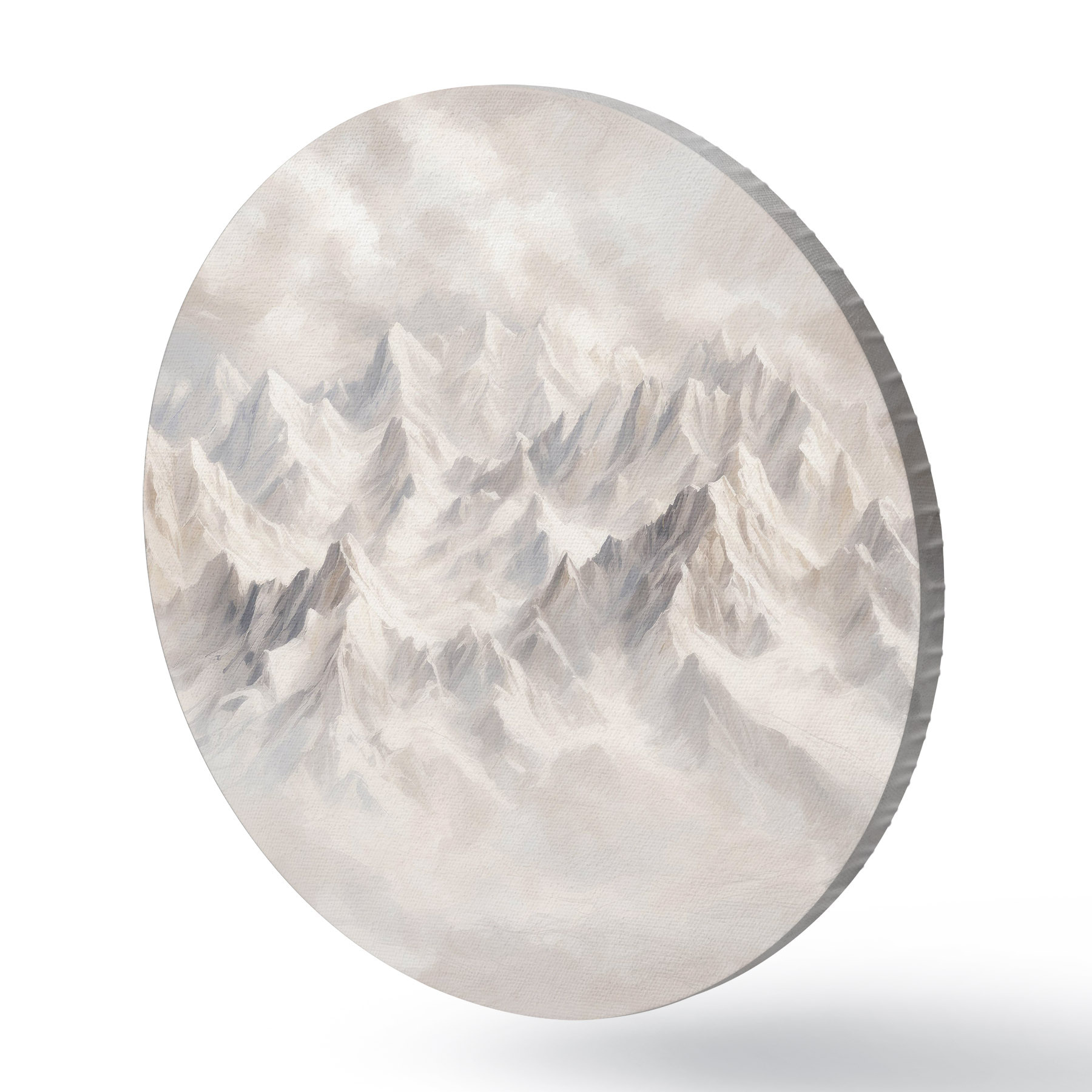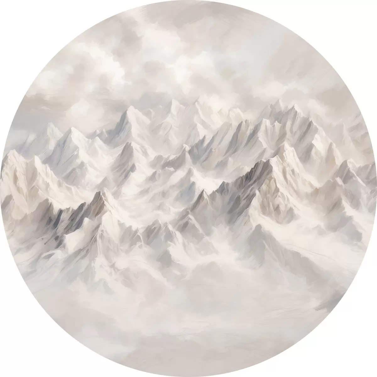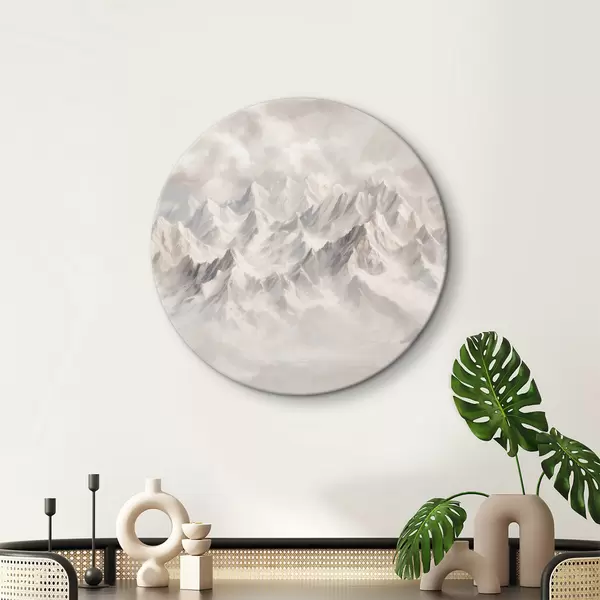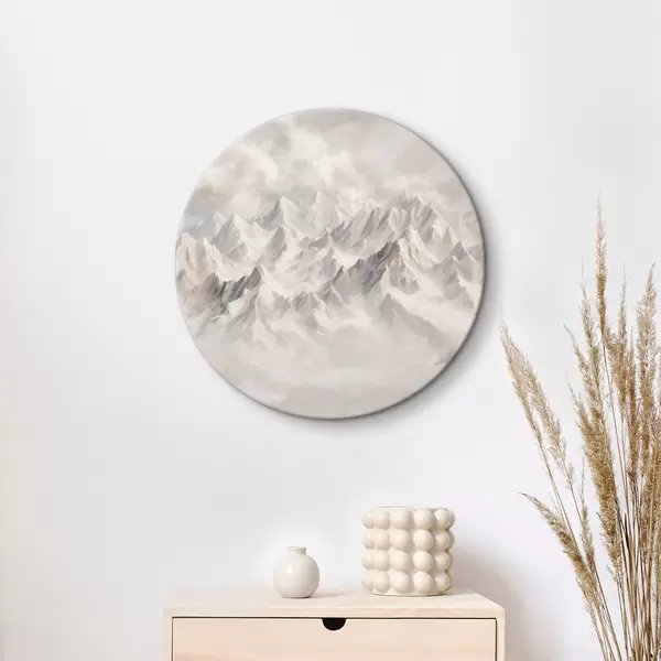 Cuadros redondos Montañas blancas nevadas en la niebla r40629