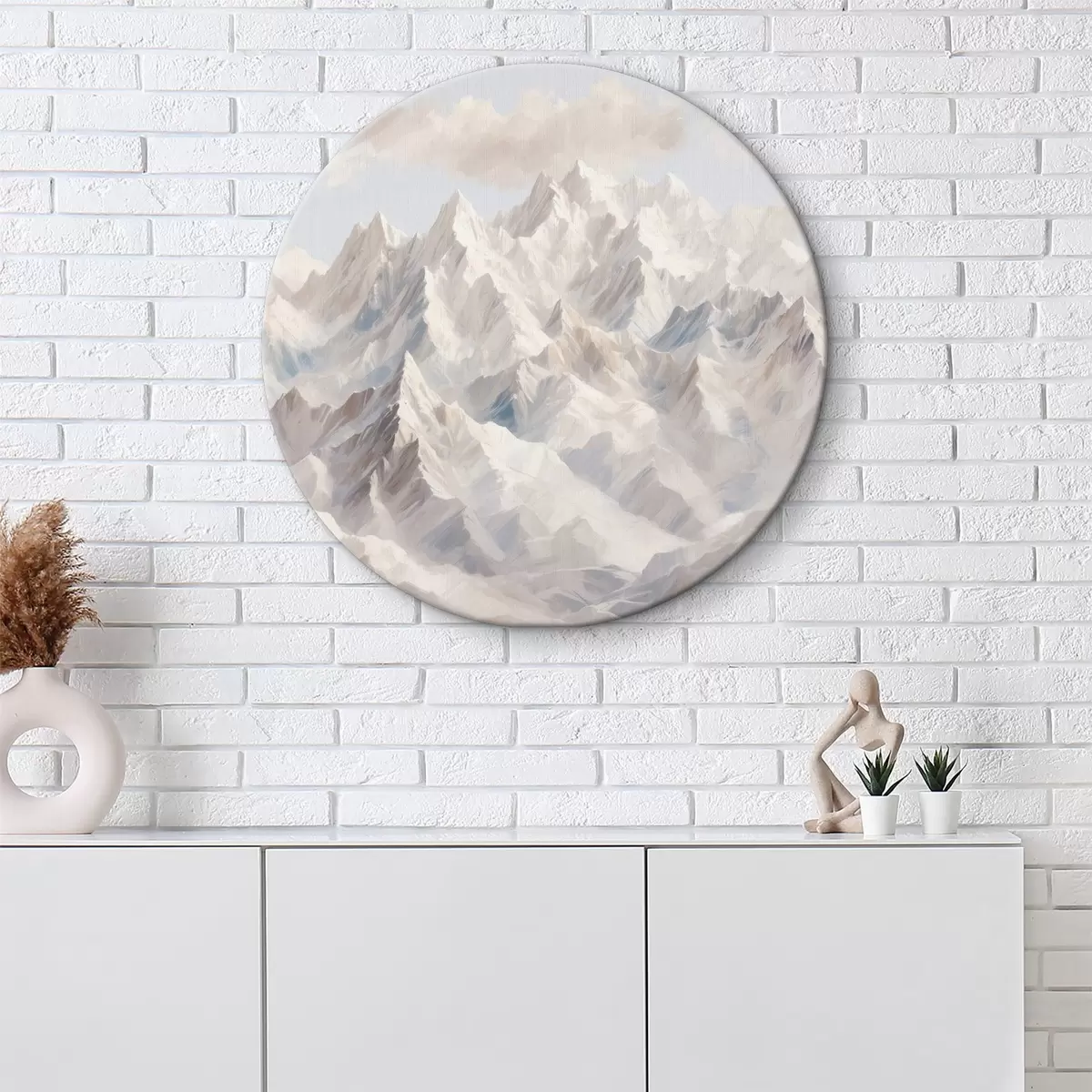 Cuadros redondos Montañas blancas contra un cielo despejado r40630