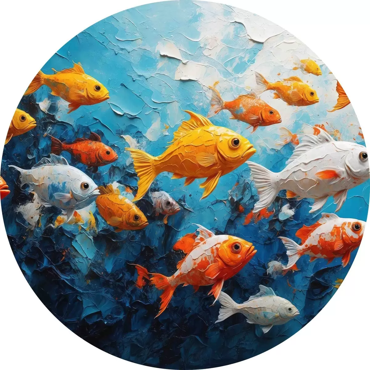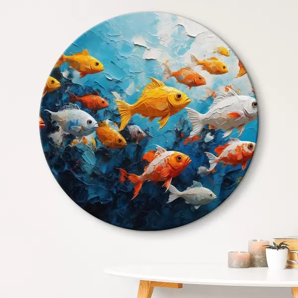 Cuadros redondos Peces sobre fondo abstracto al óleo r40632