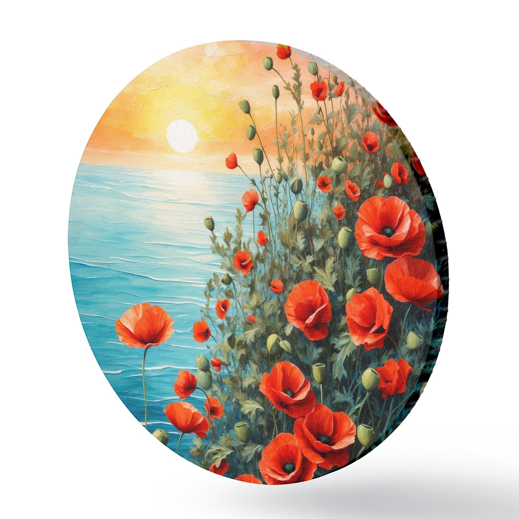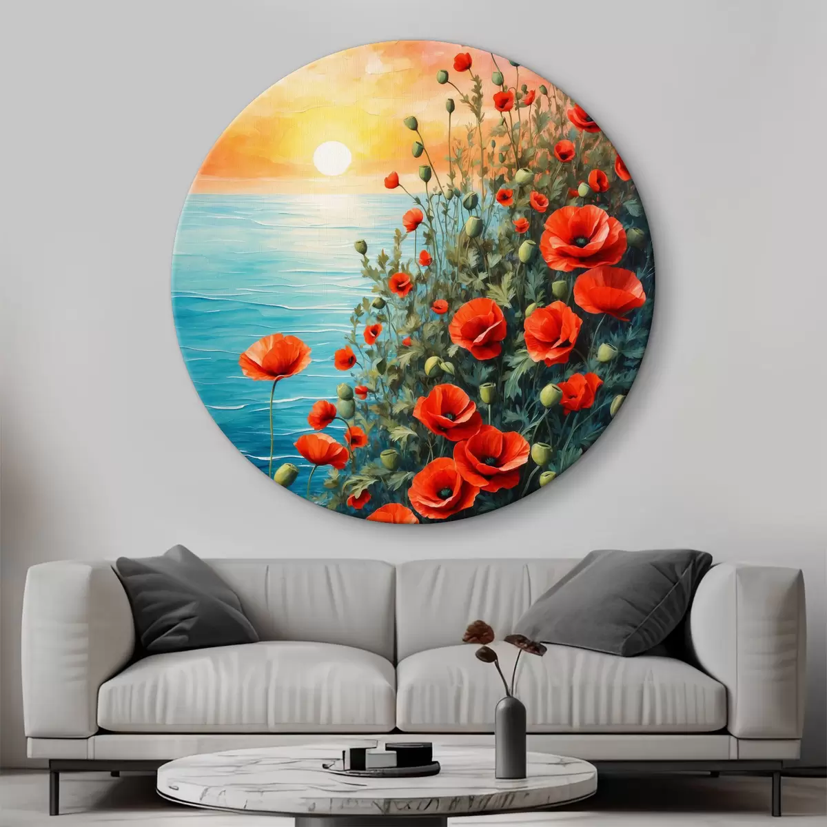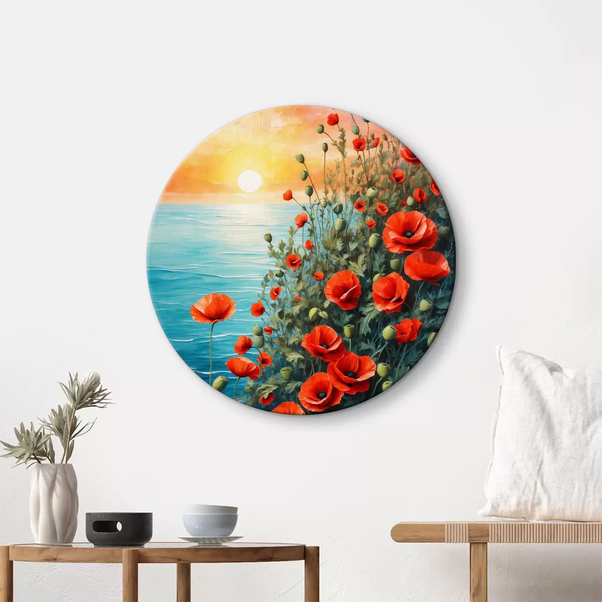 Cuadros redondos Amapolas en flor sobre el fondo del mar r40637