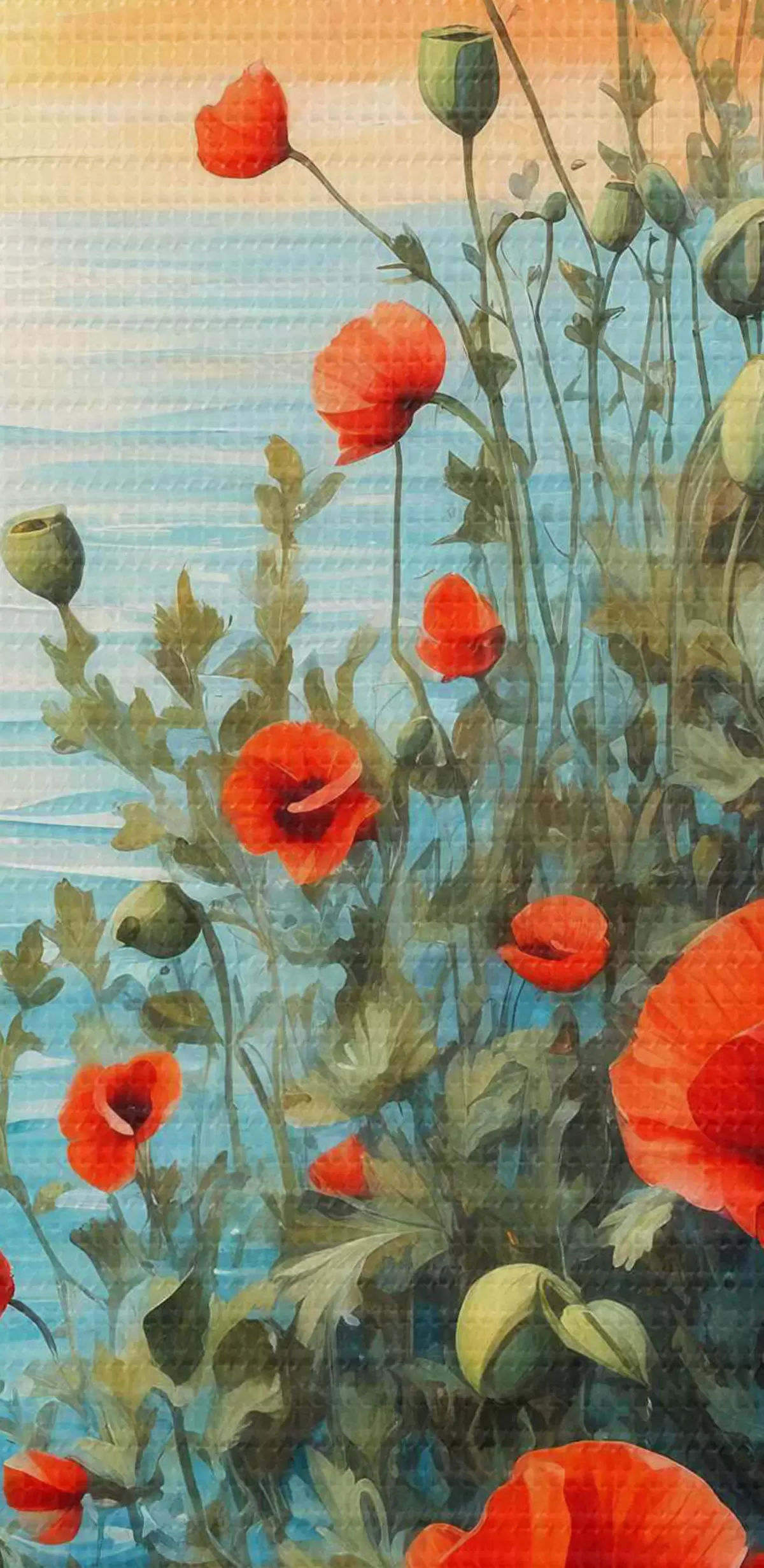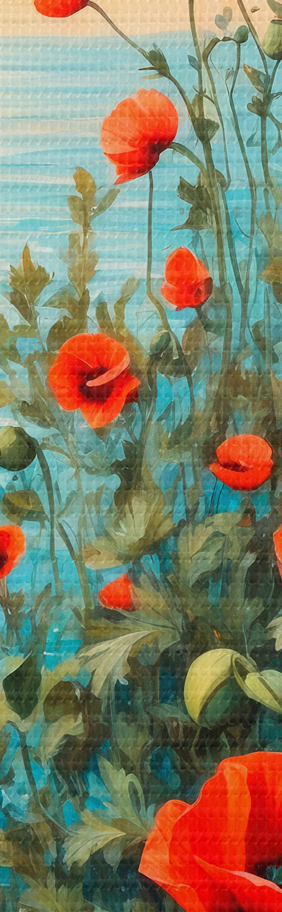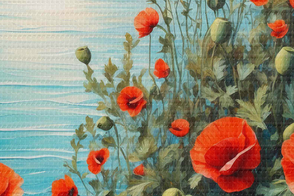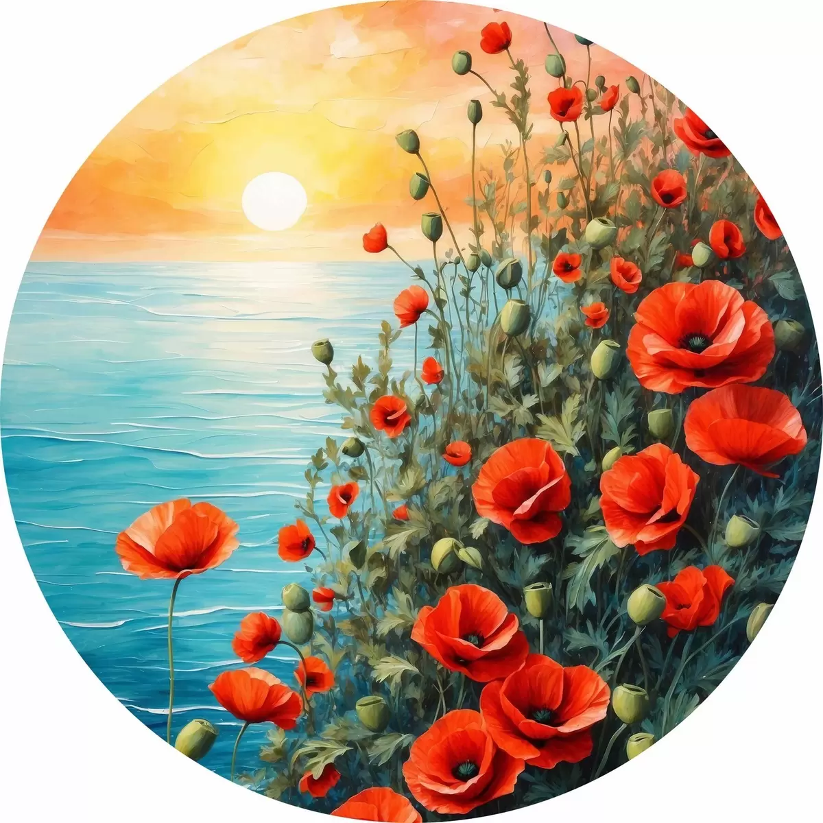 Cuadros redondos Amapolas en flor sobre el fondo del mar r40637