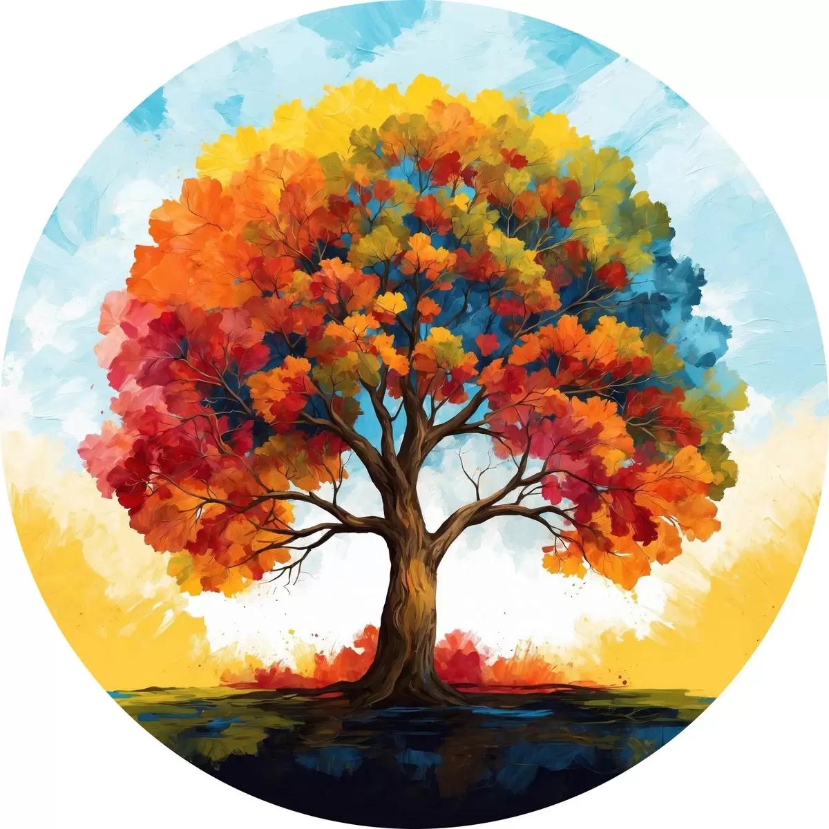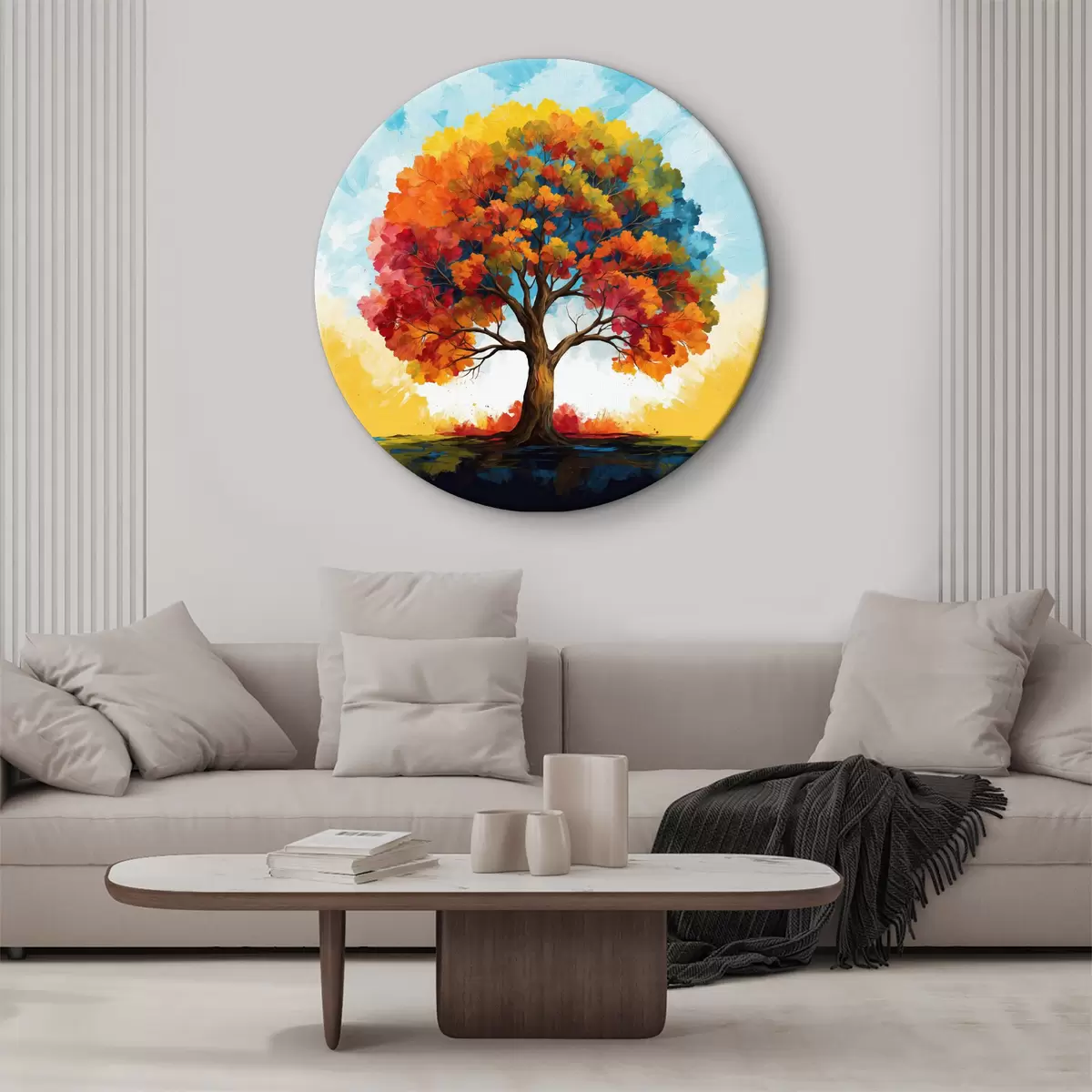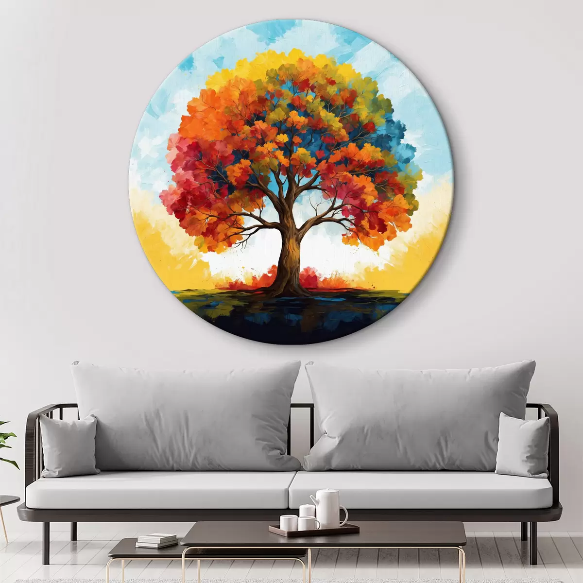 Cuadros redondos Un árbol enorme con sombras multicolores r40638
