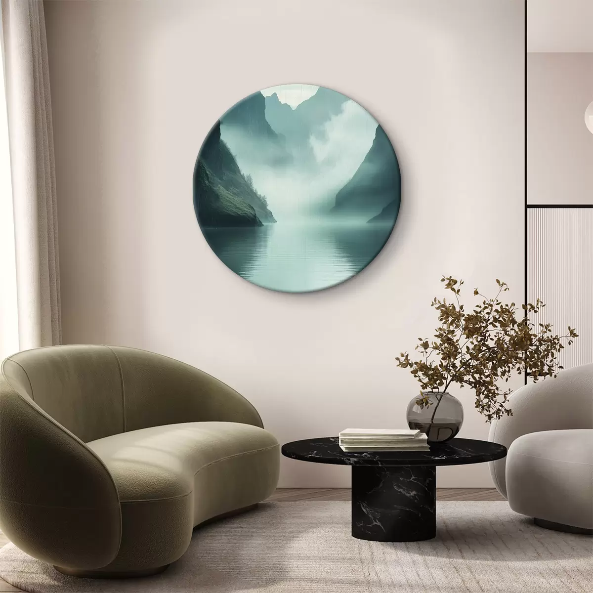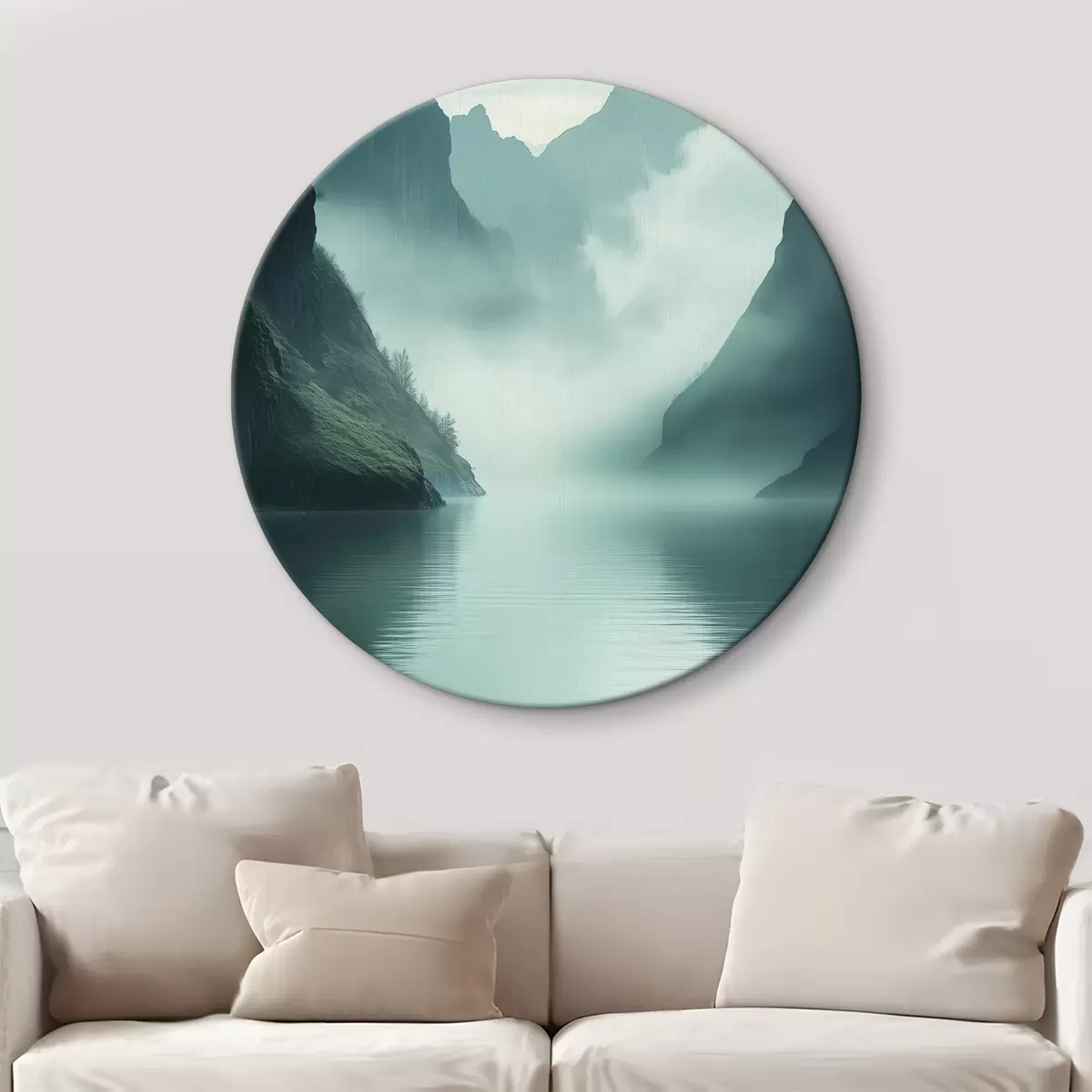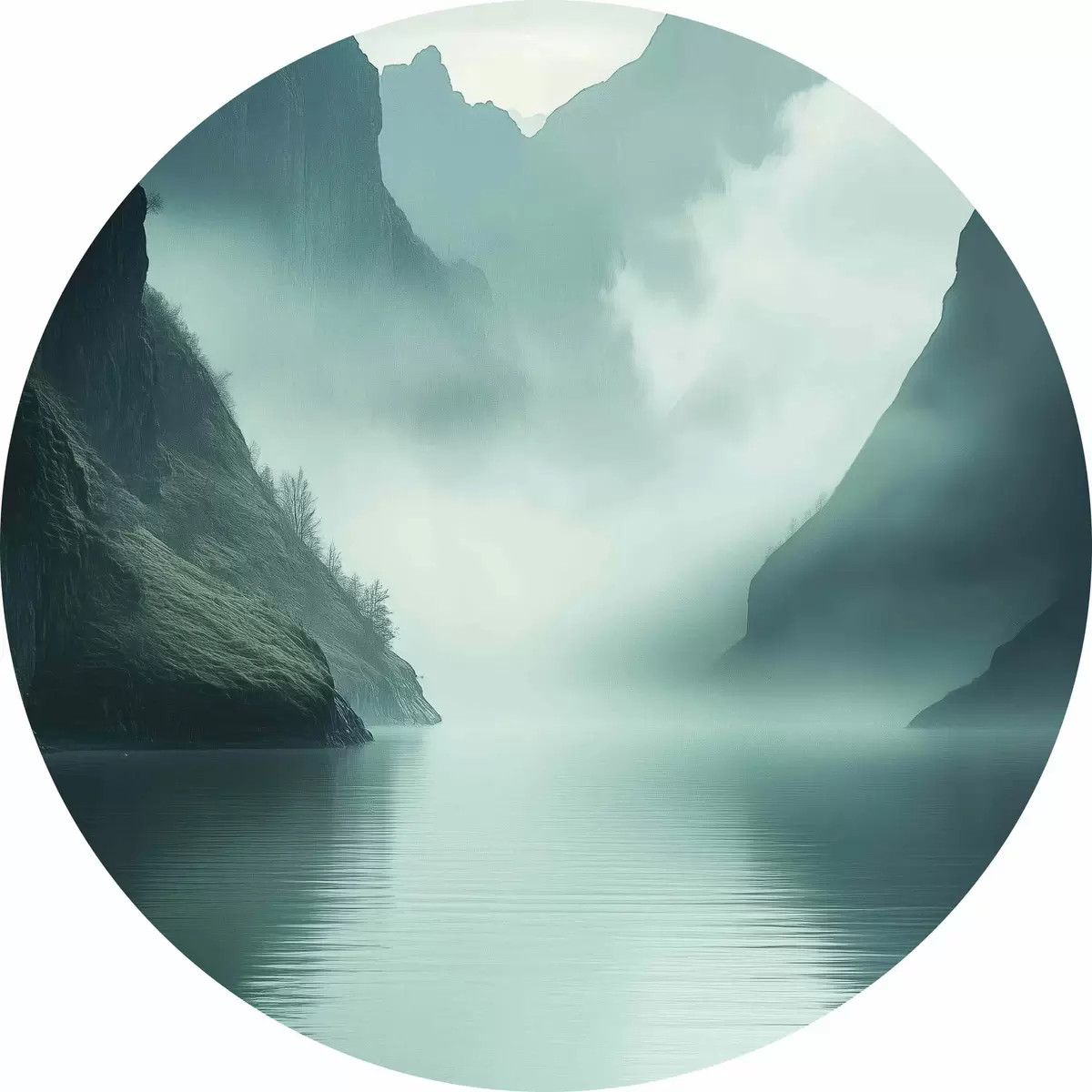 Cuadros redondos Montañas misteriosas en la niebla r40653