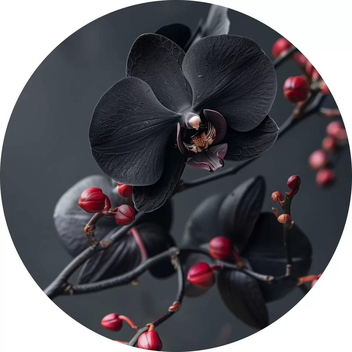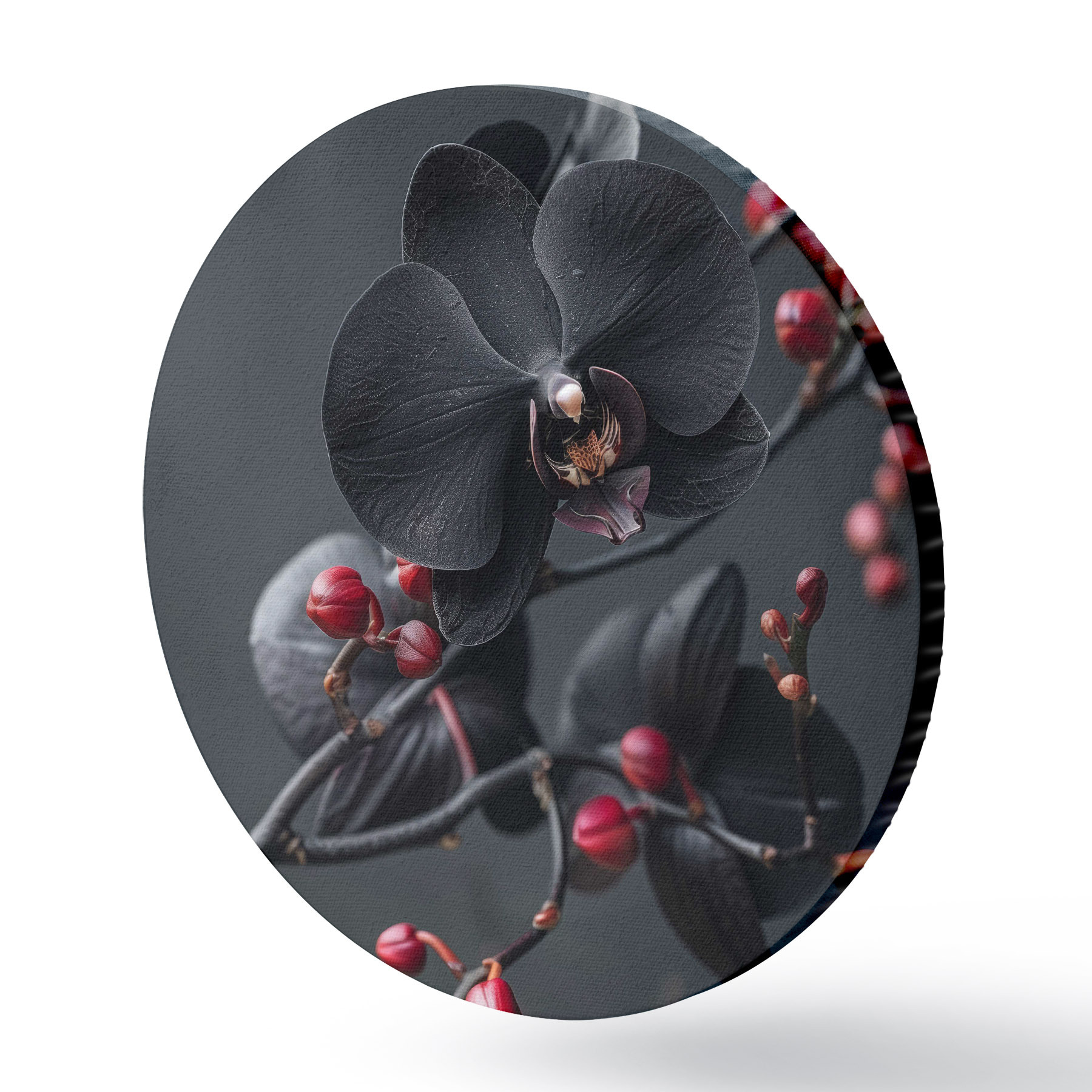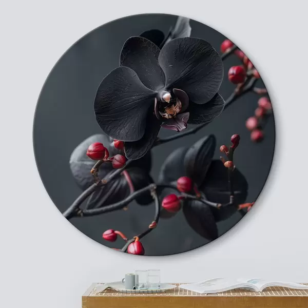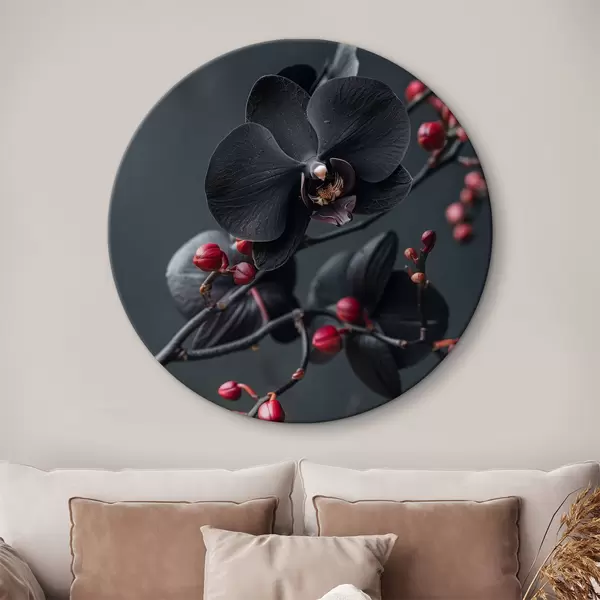 Cuadros redondos Elegante arreglo floral con orquídea negra r40663
