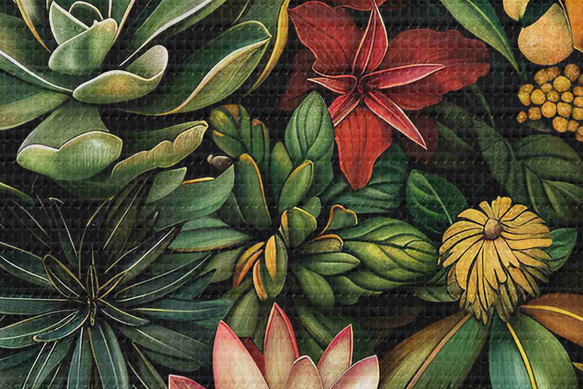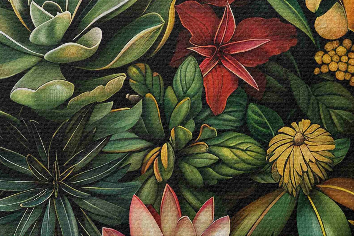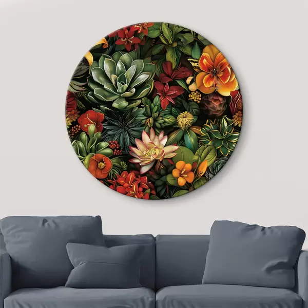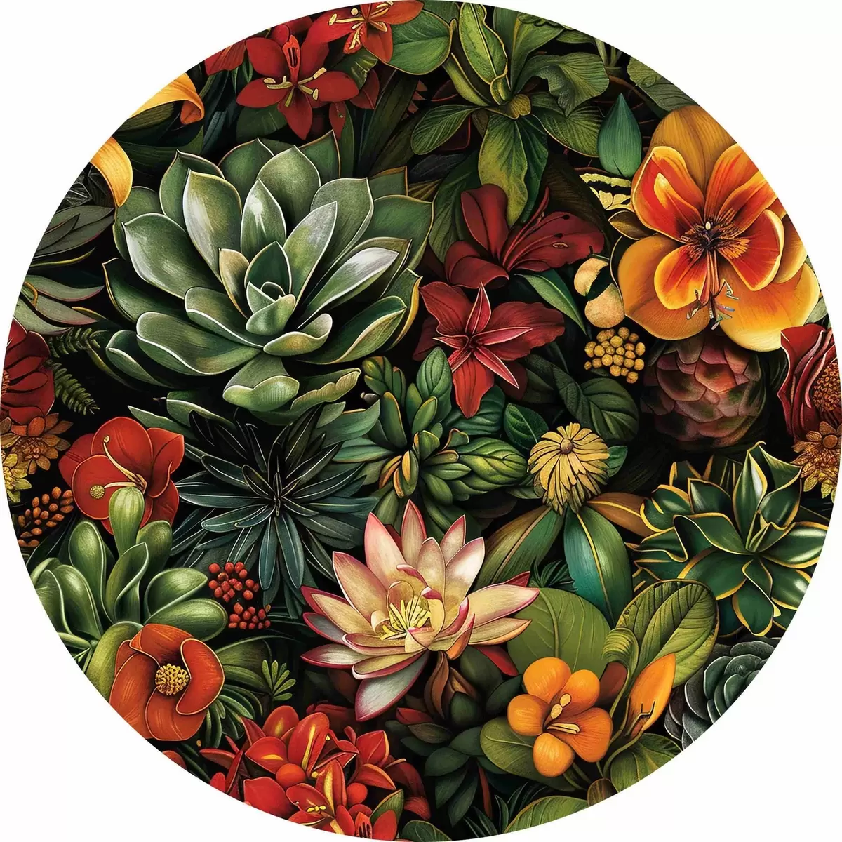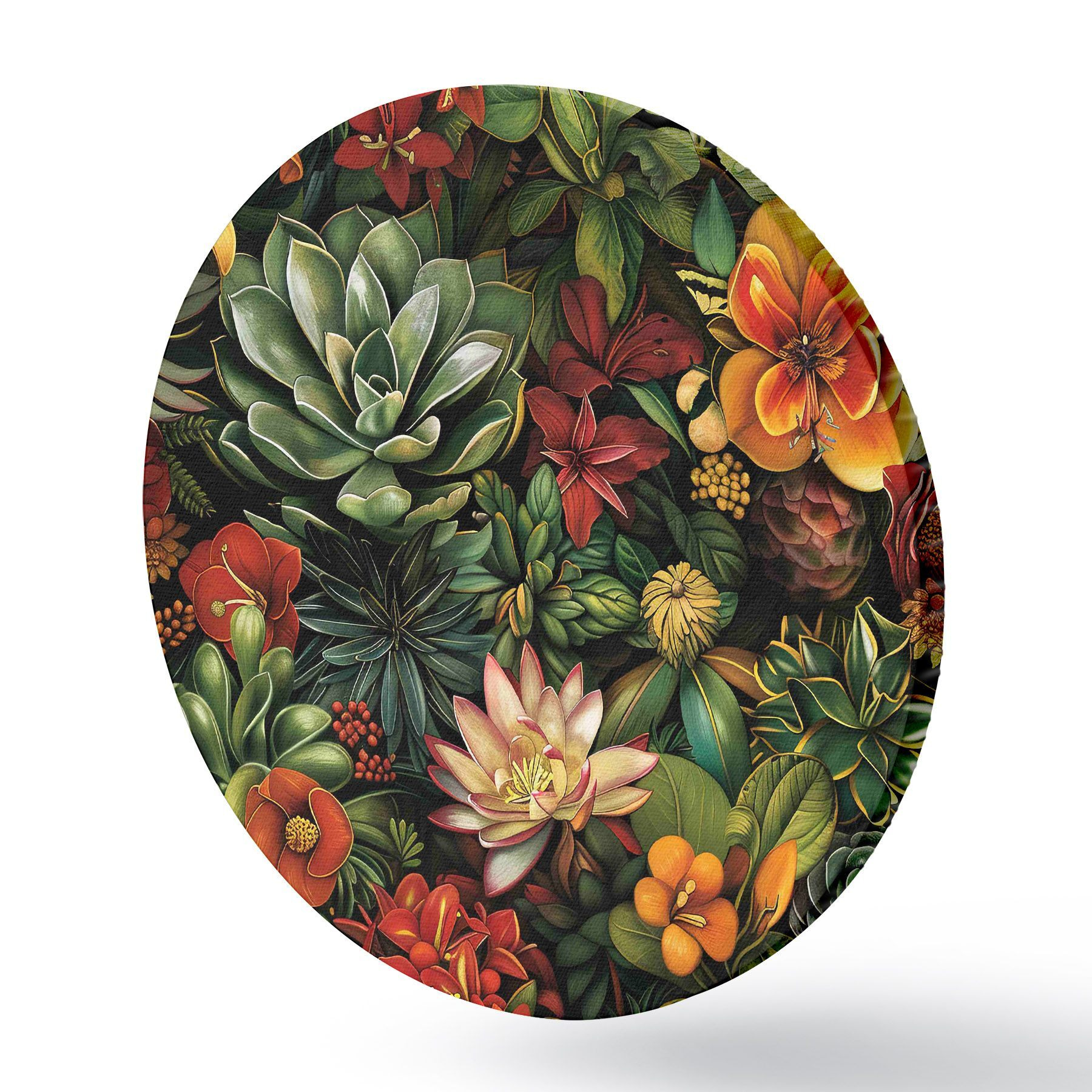 Cuadros redondos Exuberante jardín con suculentas y flores tropicales r40666