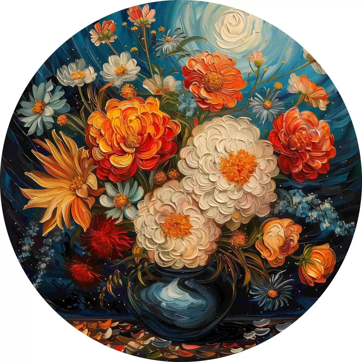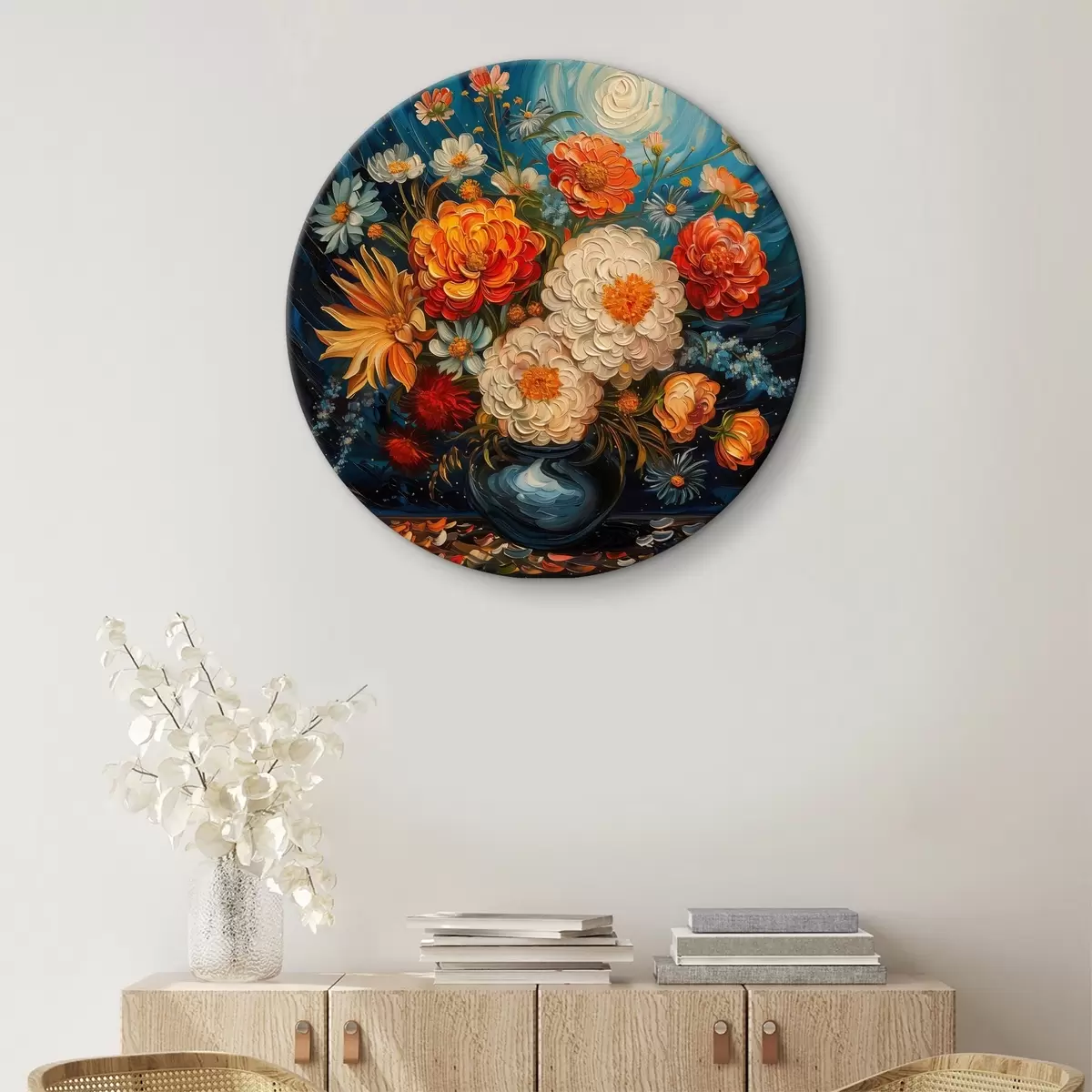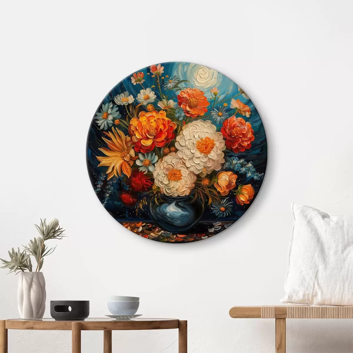 Cuadros redondos Arreglo floral en un jarrón al estilo de Van Gogh r40671