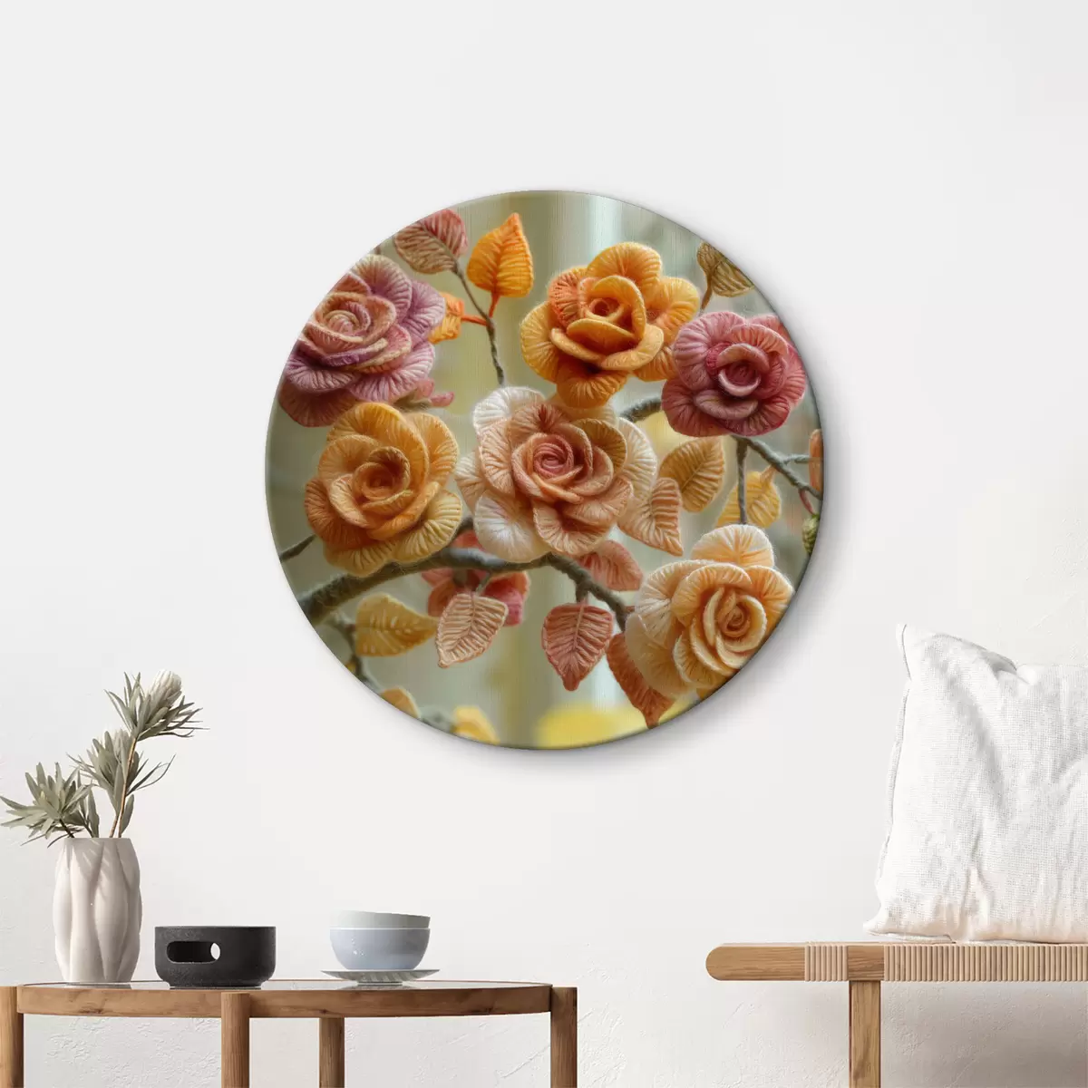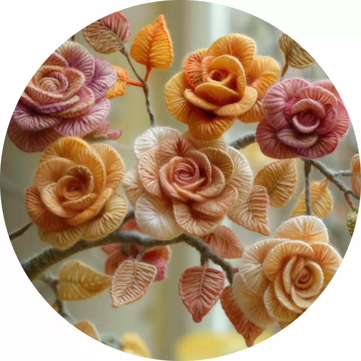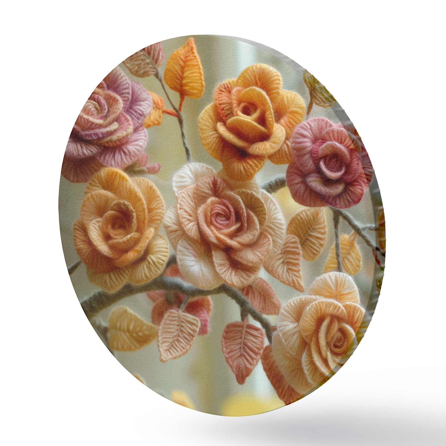Cuadros redondos Rosas tejidas con lana suave y esponjosa sobre madera r40674