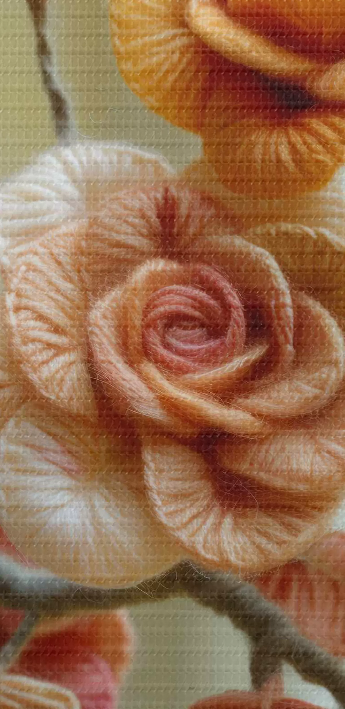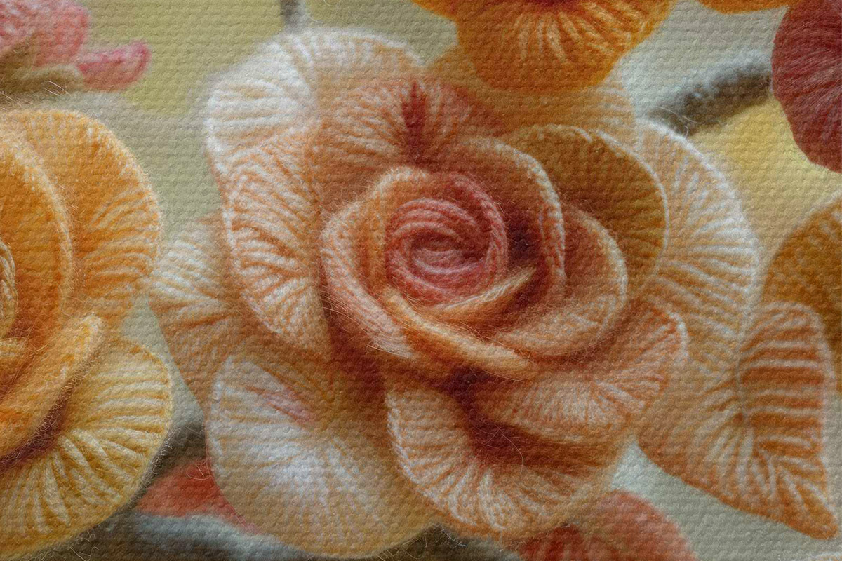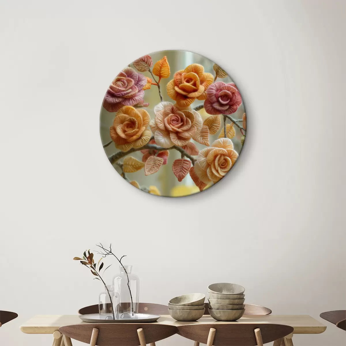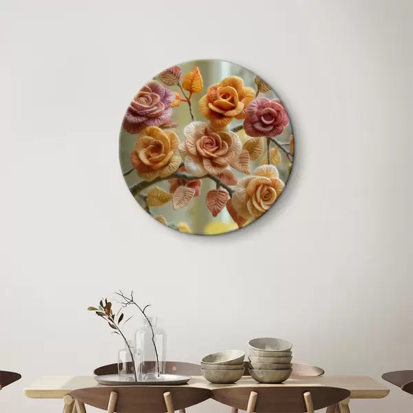Cuadros redondos Rosas tejidas con lana suave y esponjosa sobre madera r40674