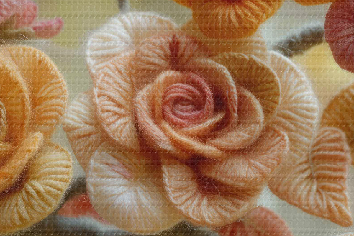 Foto Rosas tejidas con lana suave y esponjosa sobre madera Nr r40674