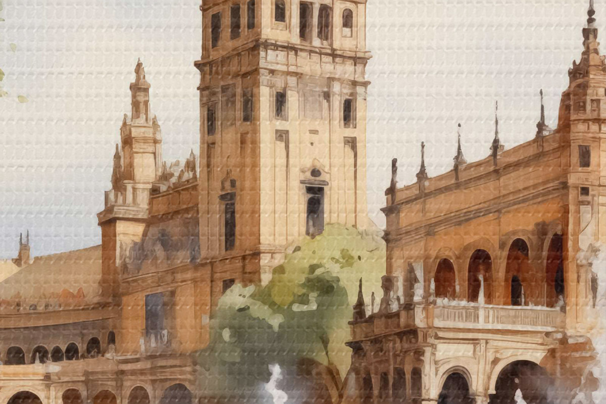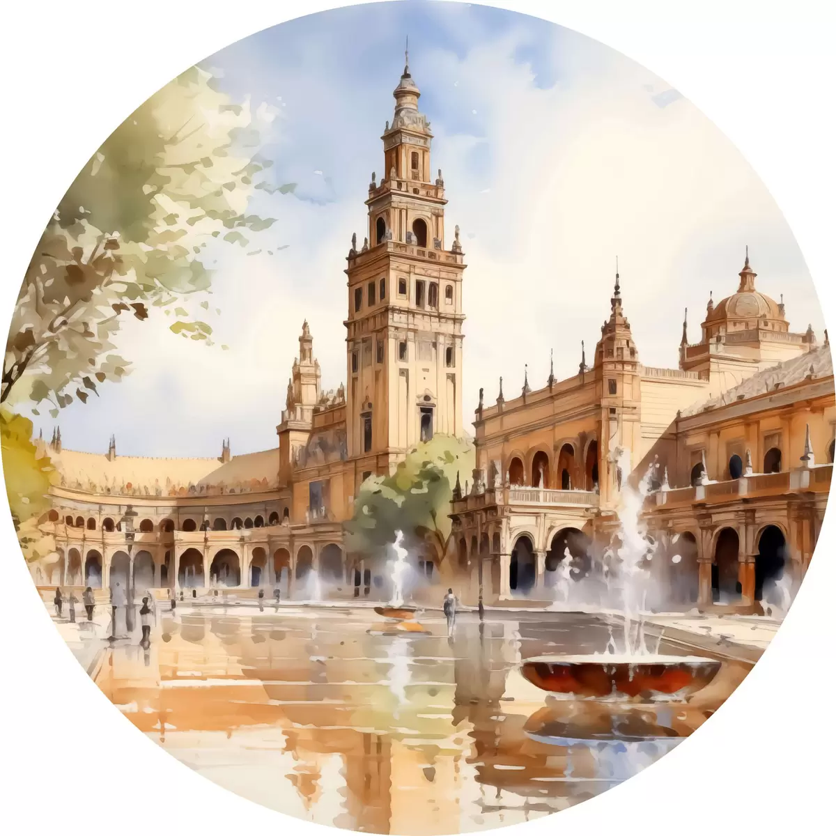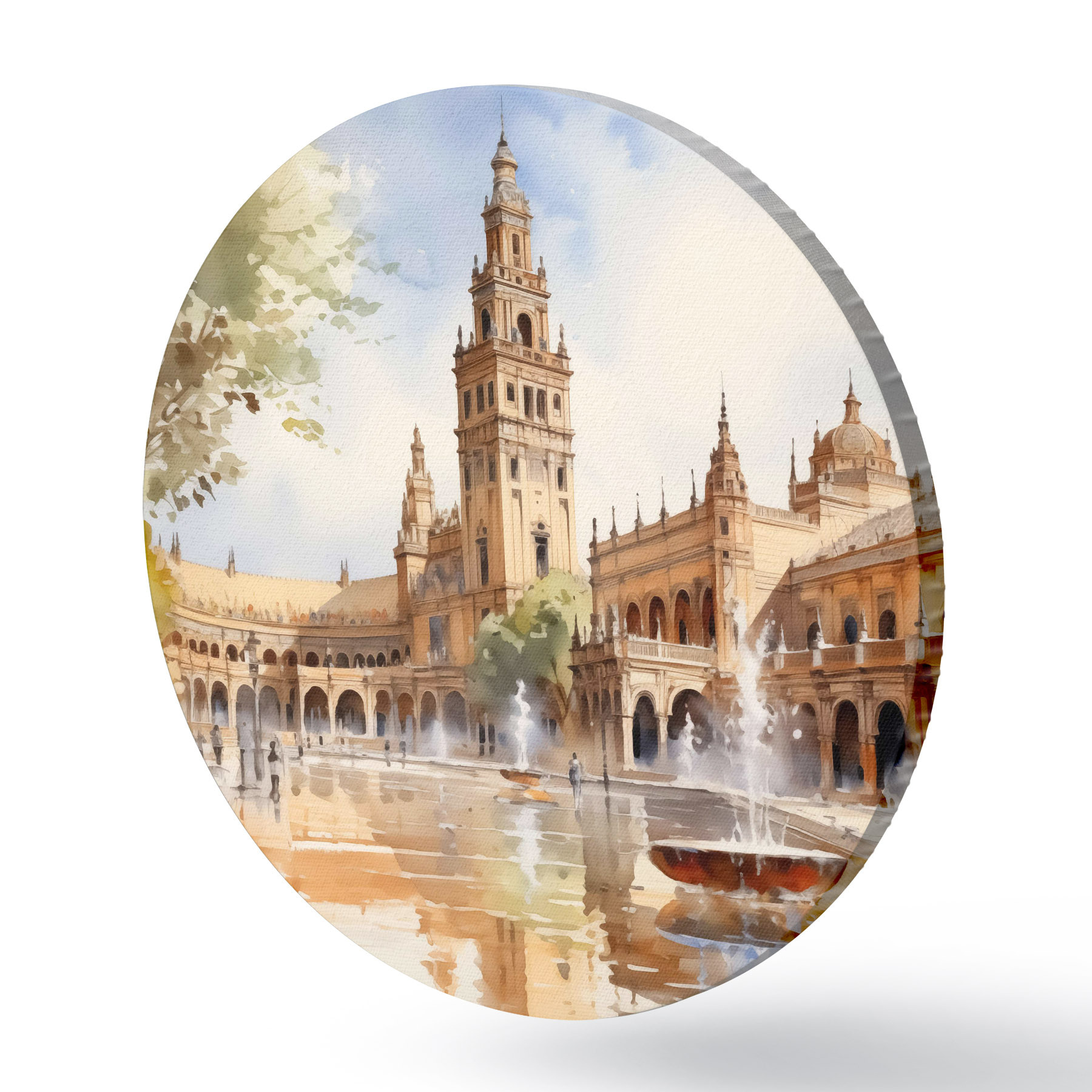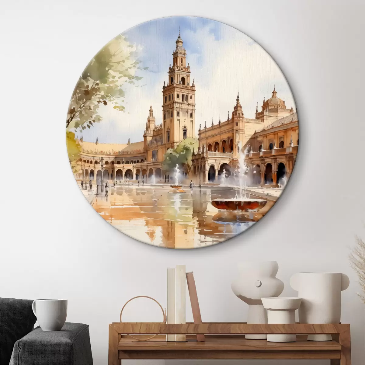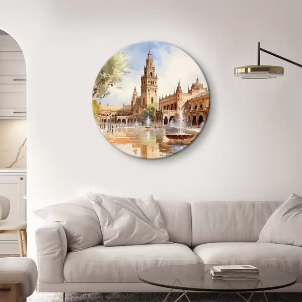 Cuadros redondos Plaza del castillo en la ciudad de la acuarela r40681