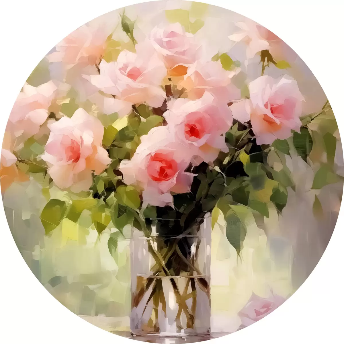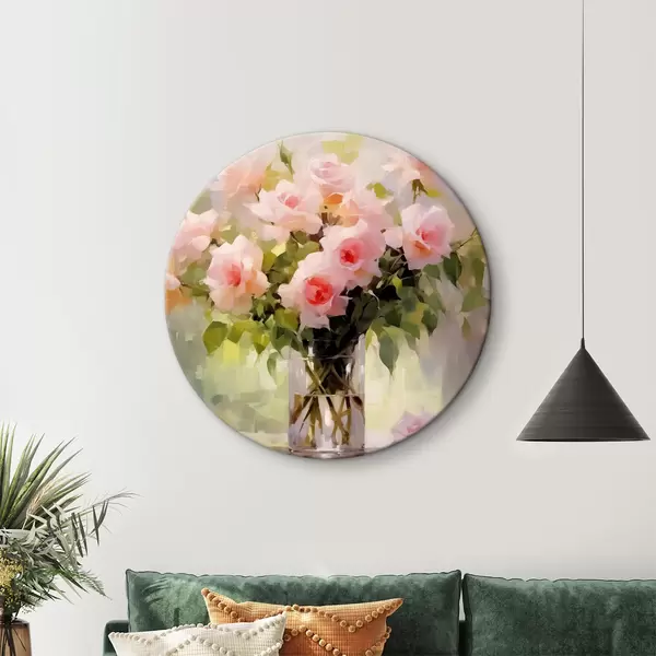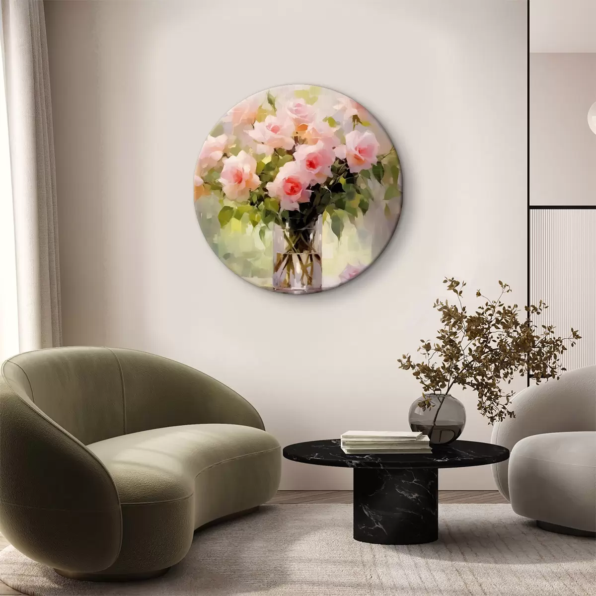 Cuadros redondos Un ramo de rosas rosas en un jarrón de cristal r40684