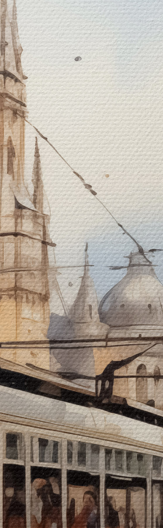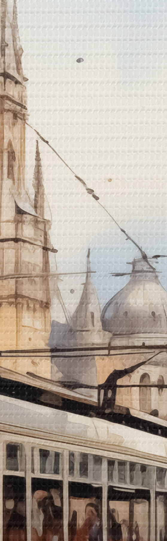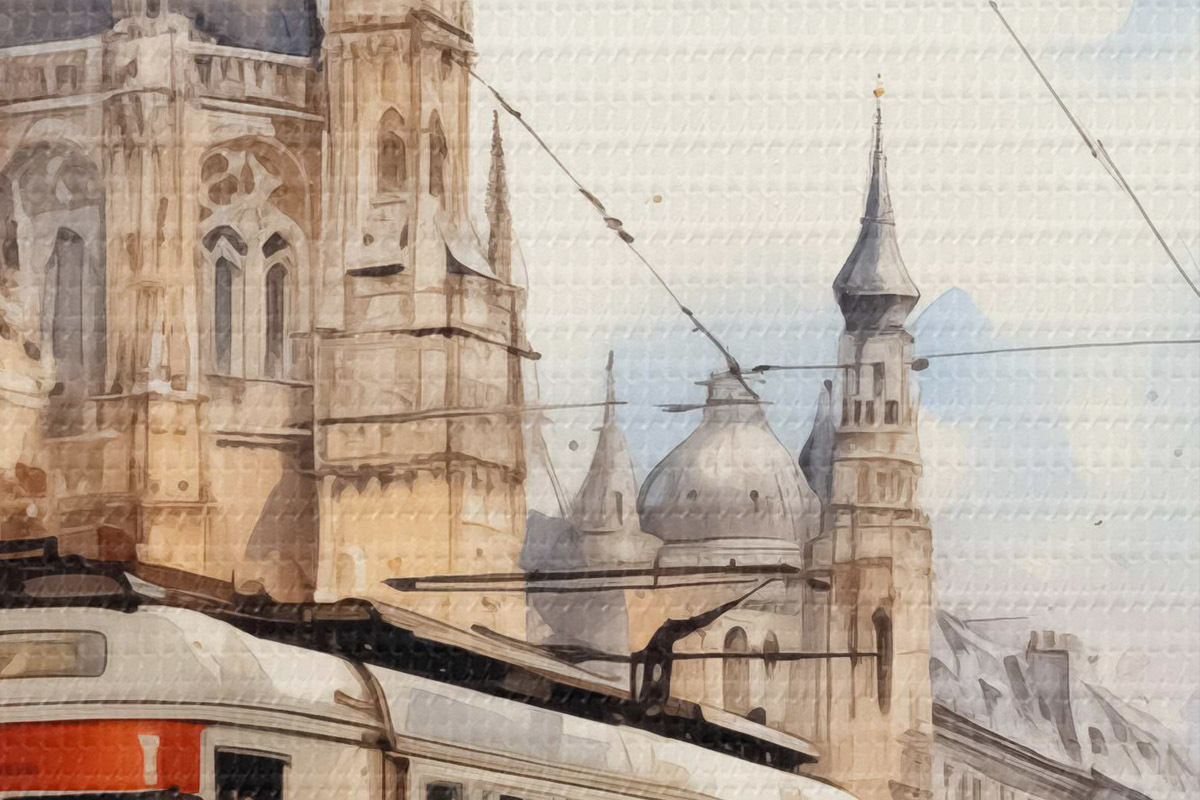 Foto Tranvía rojo en una calle de Viena acuarela Nr r40732