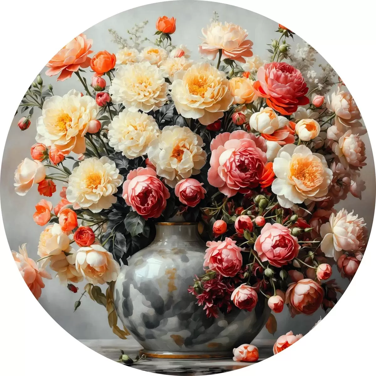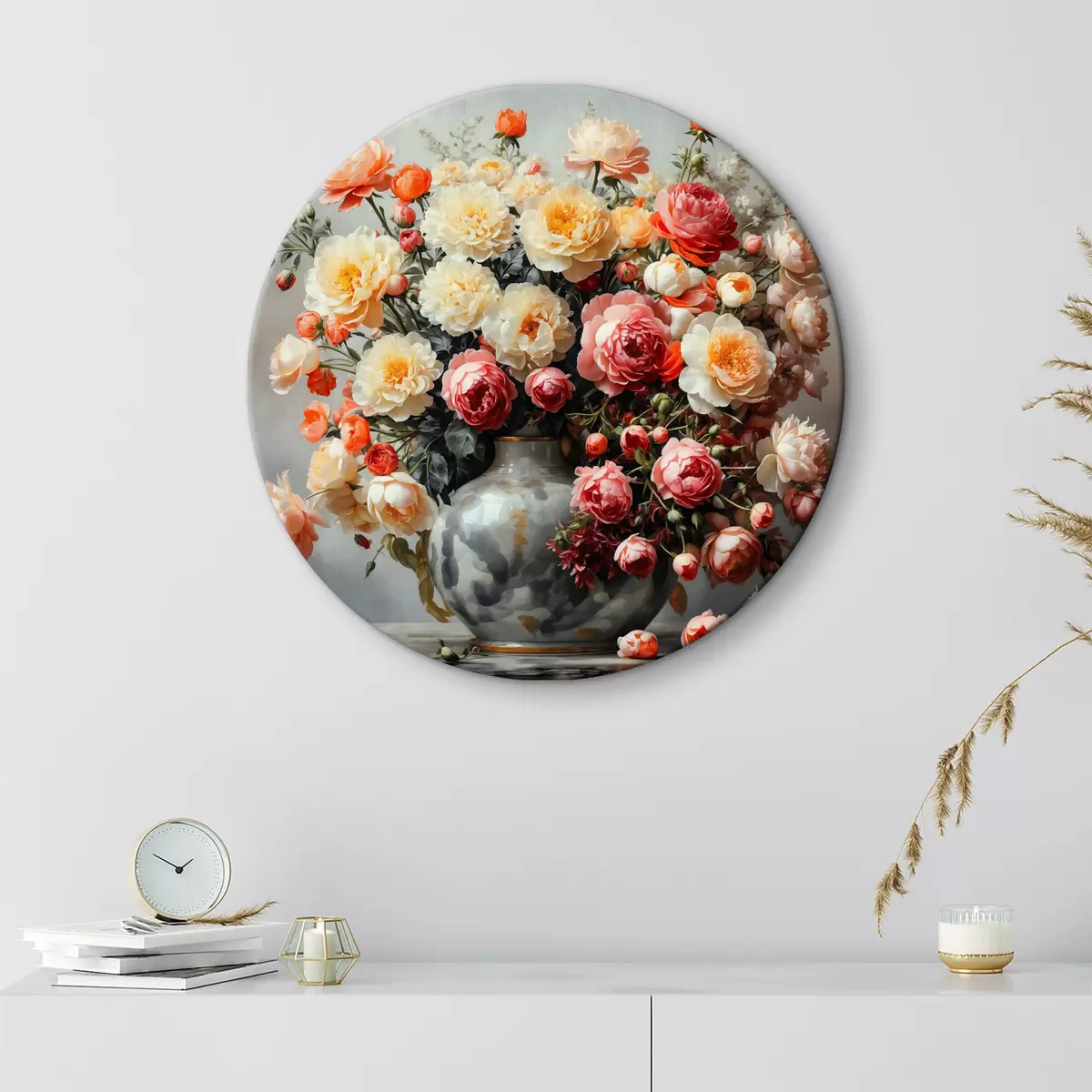 Cuadros redondos Un ramo de flores brillantes en un jarrón r40733