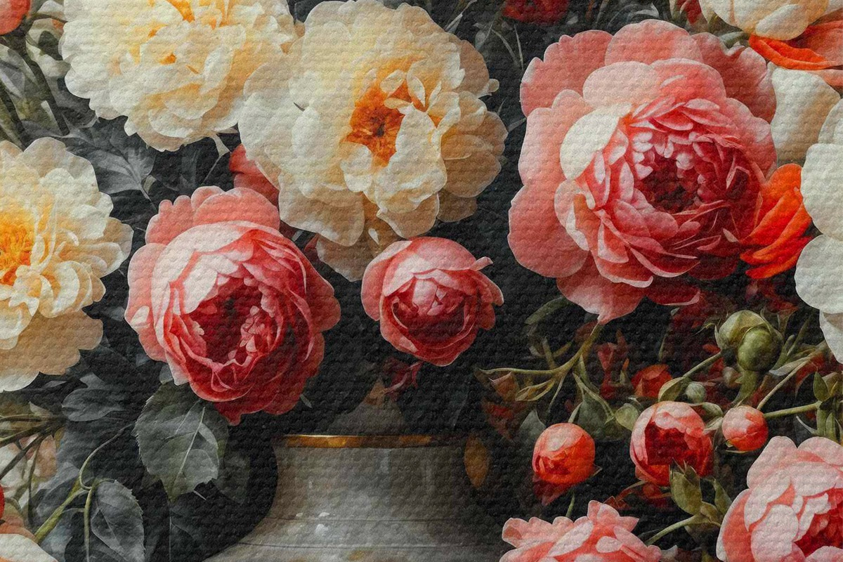 Hay tres tipos de material disponibles para pedidos: Lienzo Económico - material denso y duradero para impresión digital, idéntico al lienzo de pintor, superficie impermeable, reproducción realista de los detalles, material de grano medio. Lienzo Premium - la textura se asemeja a la de un lienzo de pintor (pequeños hilos entrelazados). Reproducción suave y detallada de la imagen sobre una superficie mate. Eco-Premium - tejido 100% algodón de alta calidad. Gracias a las fibras naturales de algodón, el material es duradero y resistente al desgaste. Excelente reproducción del color y el detalle.
