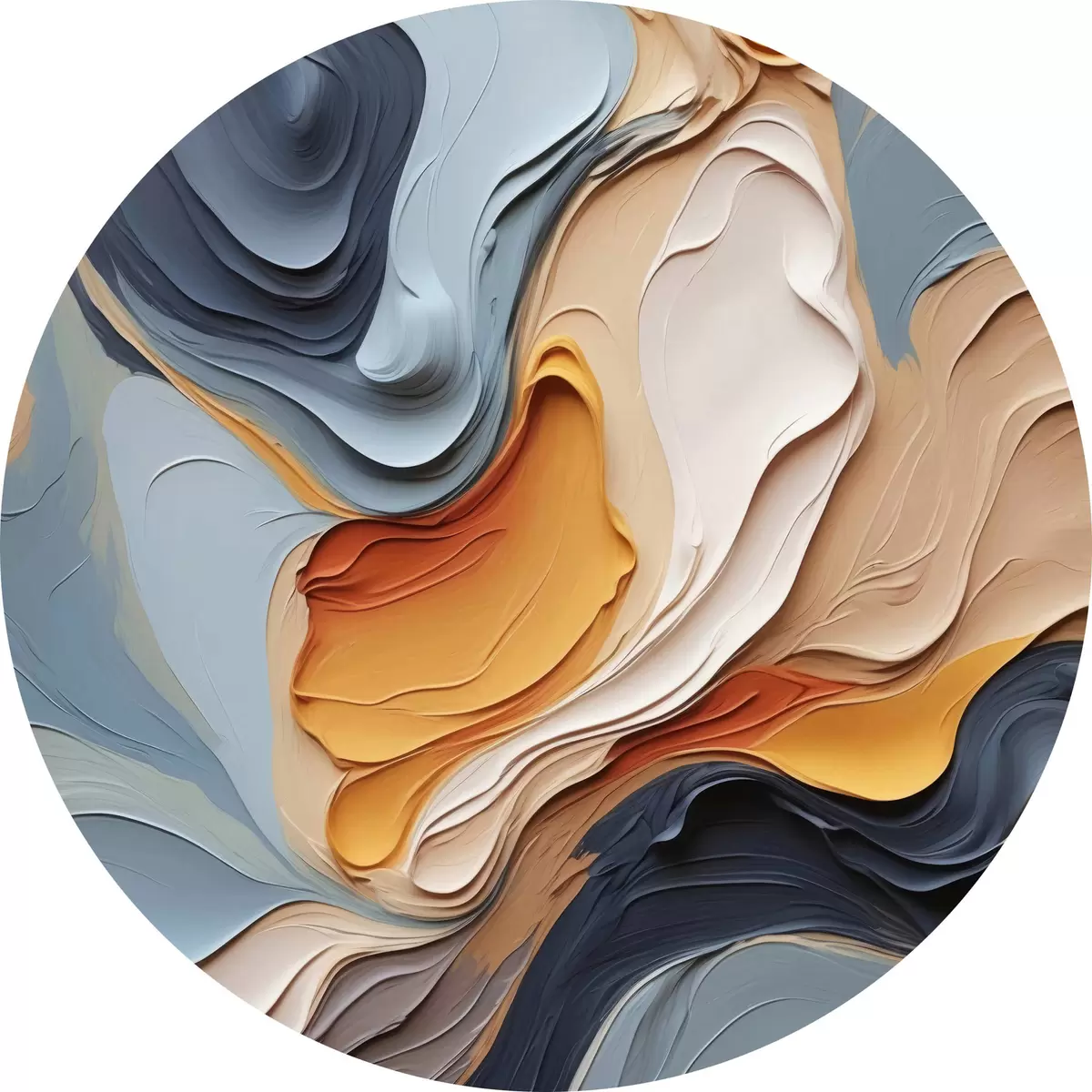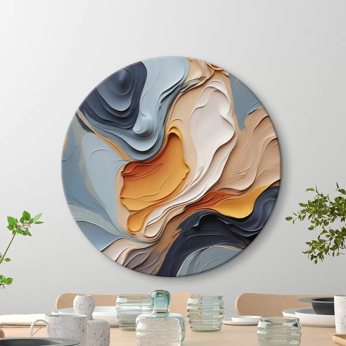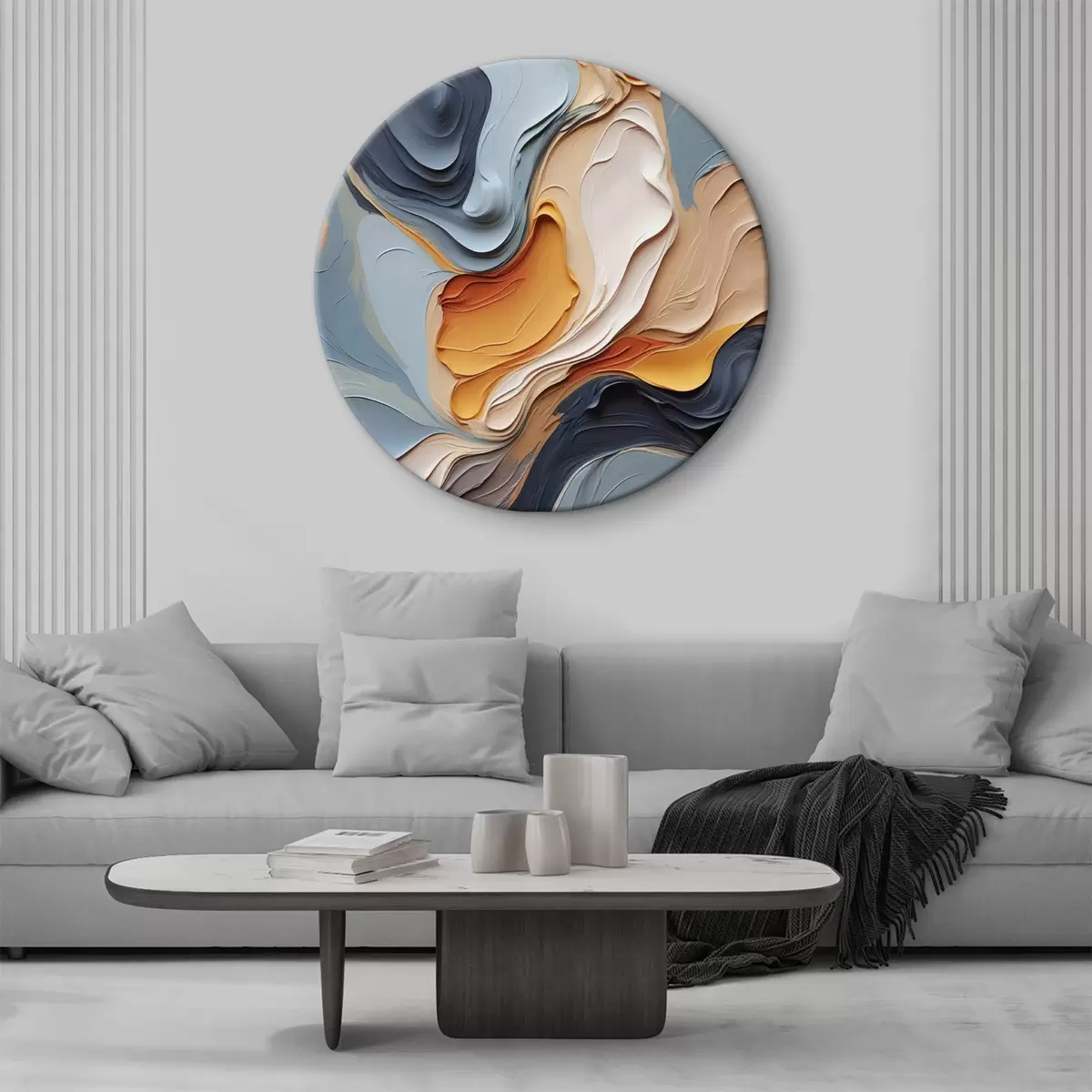 Cuadros redondos Abstracción en tonos azules y naranjas con imitación de textura r40743