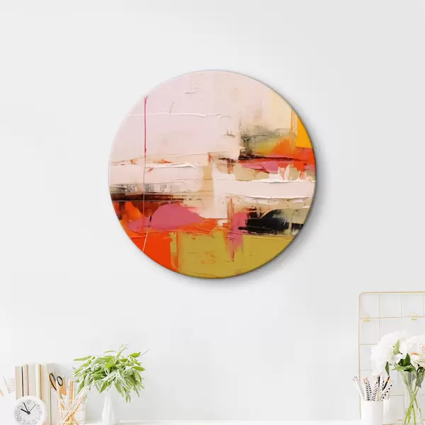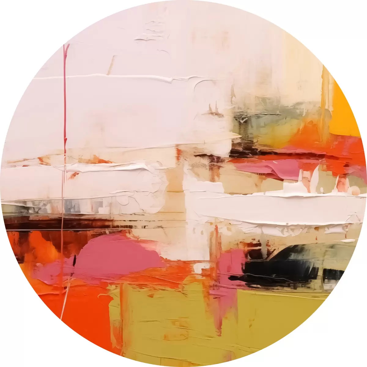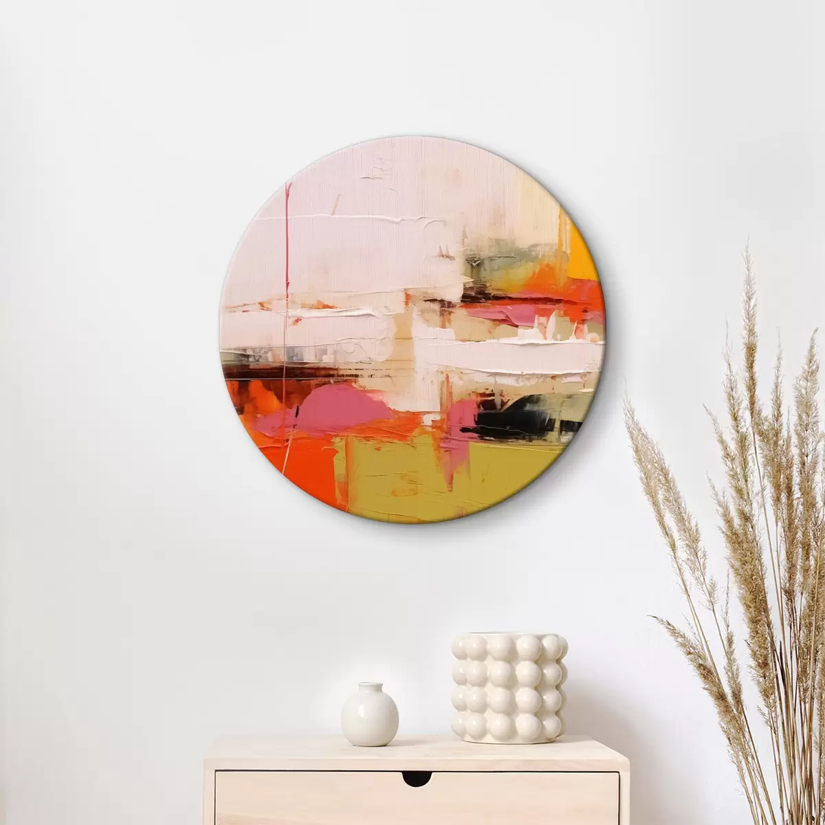 Cuadros redondos Trazos de pintura abstracta, colores rojo, amarillo, verde y naranja r40747