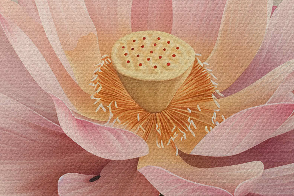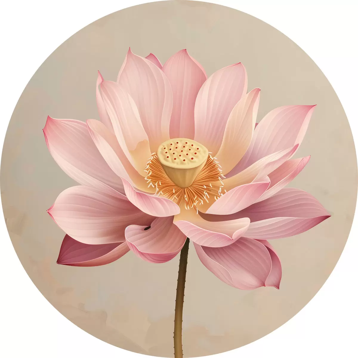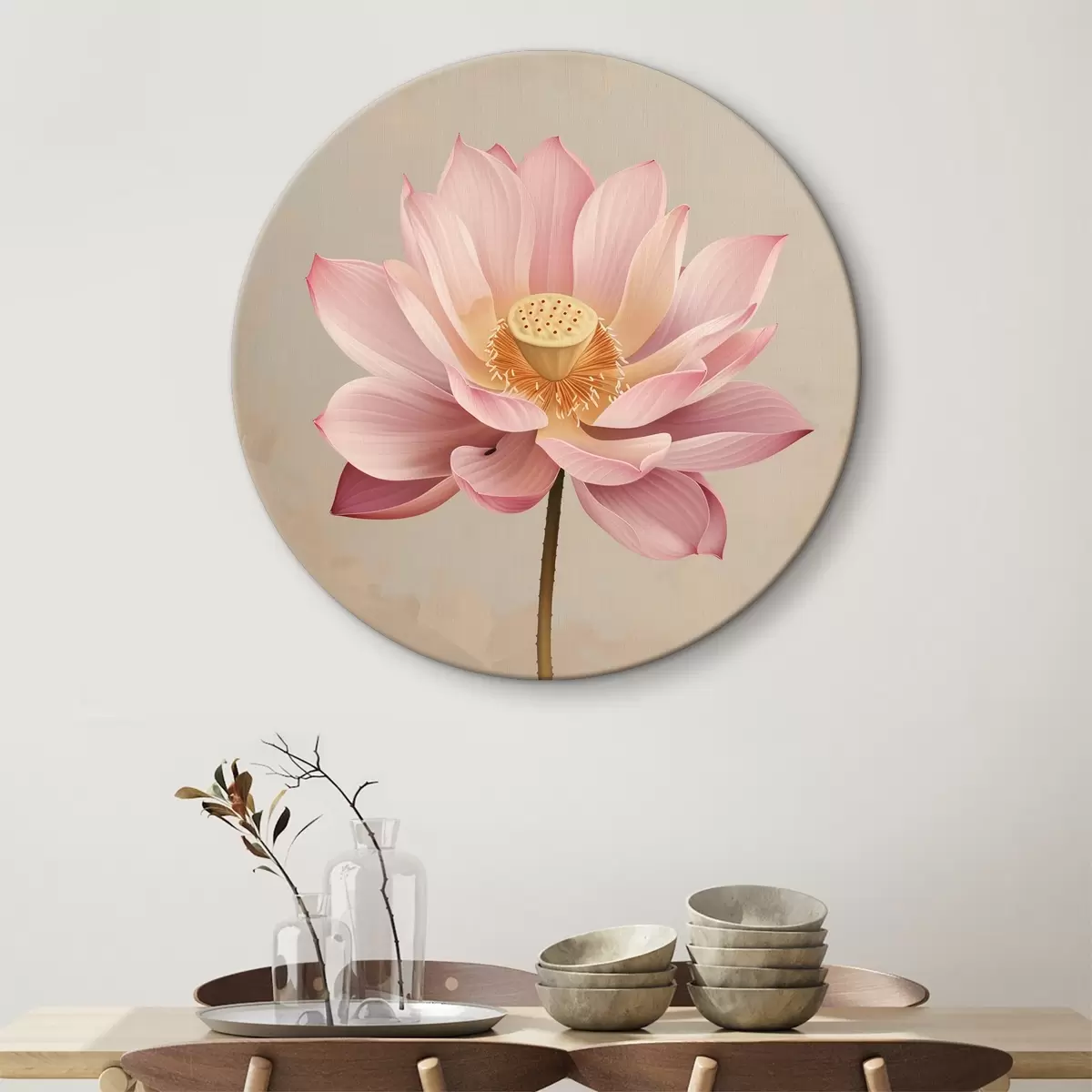 Cuadros redondos Loto rosa sobre fondo beige r40769