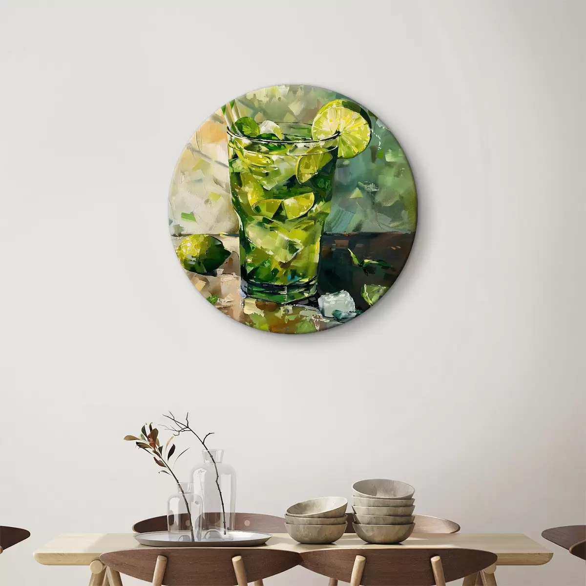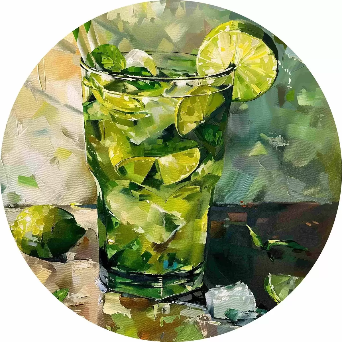 Cuadros redondos Karina mojito en técnica de acuarela r40775