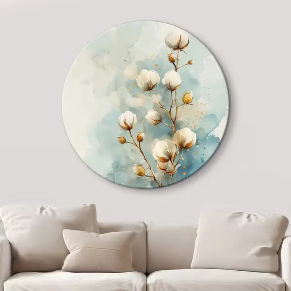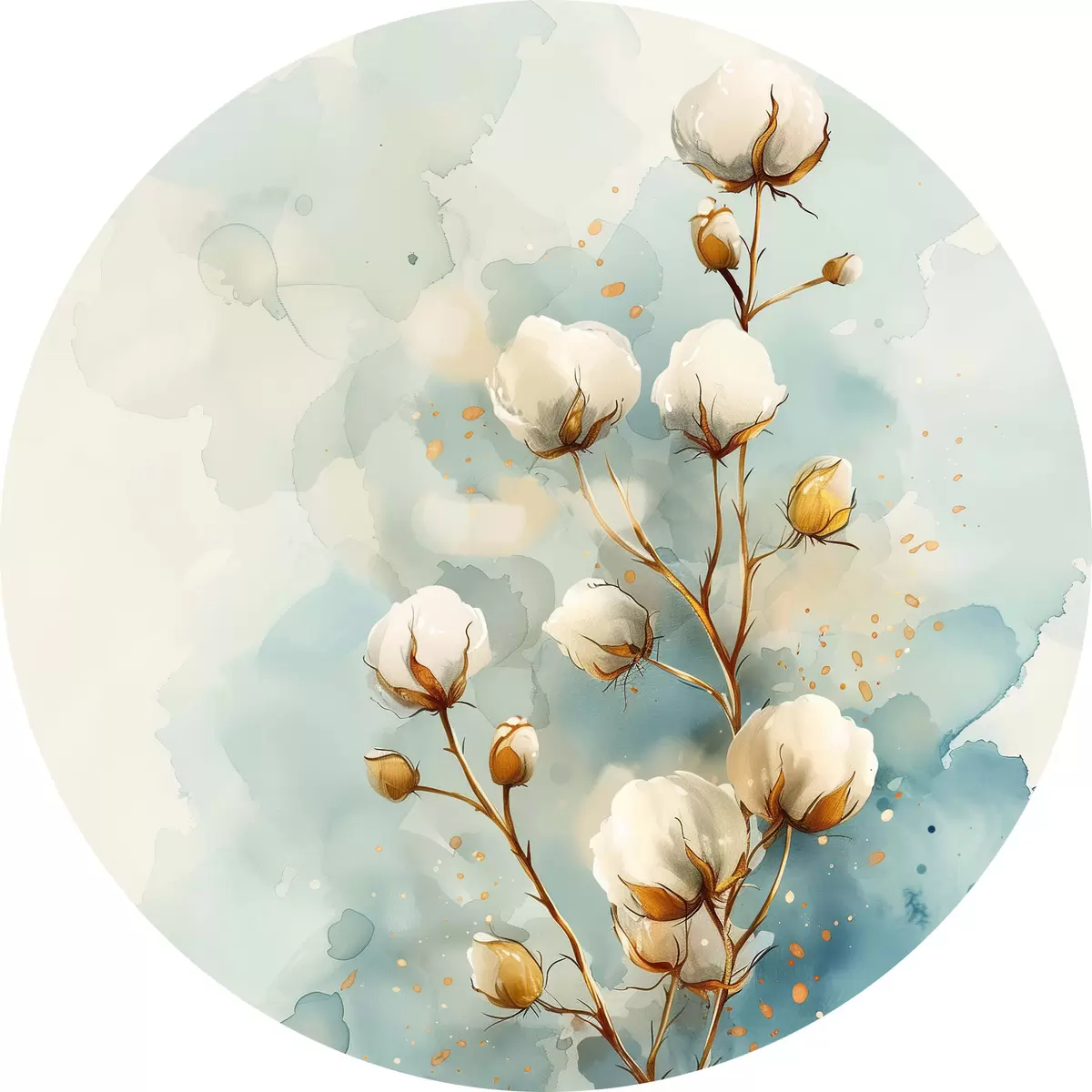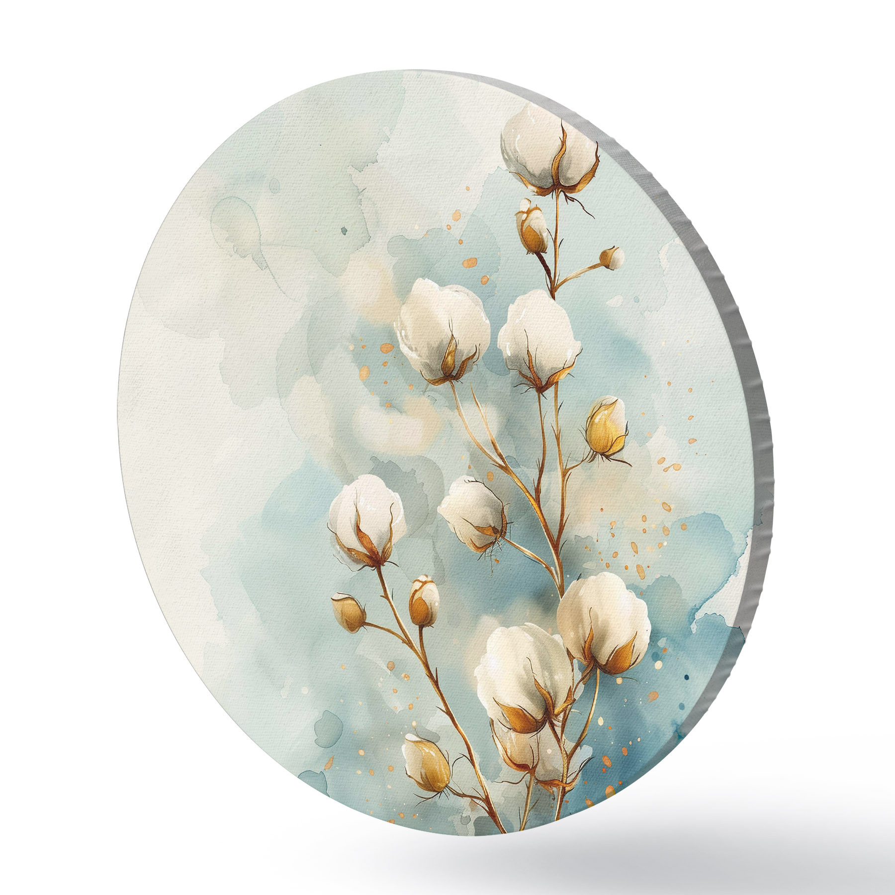 Cuadros redondos Un ramito de algodón sobre fondo de acuarela r40780