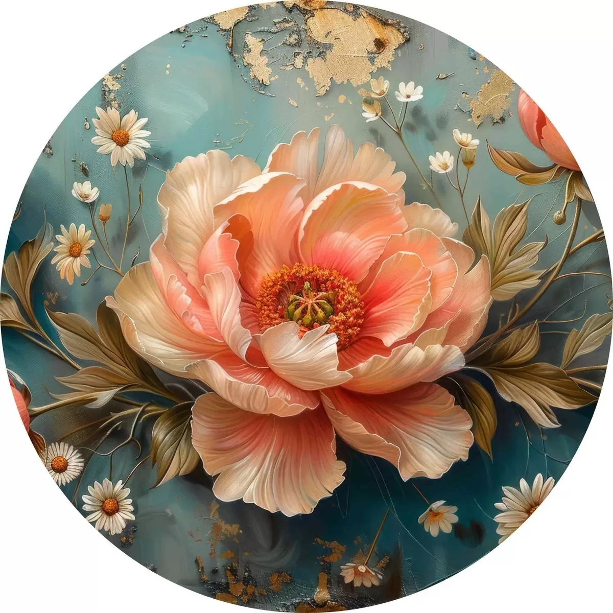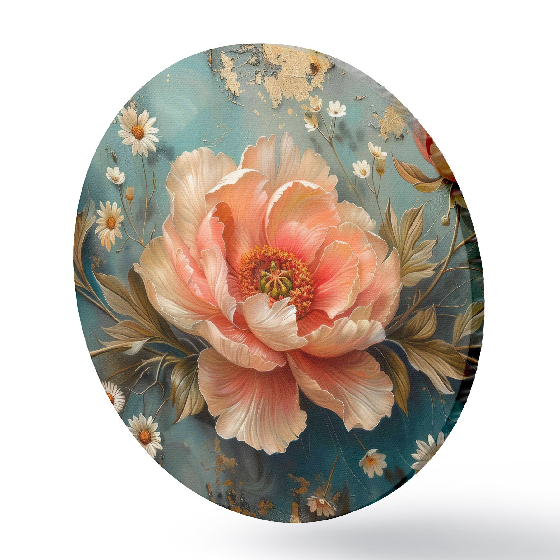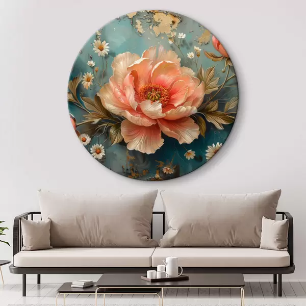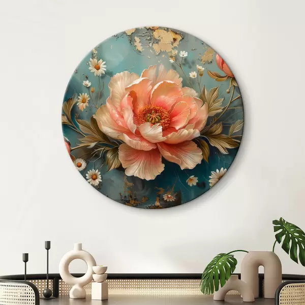 Cuadros redondos Rosa, fondo turquesa, flores pequeñas r40781