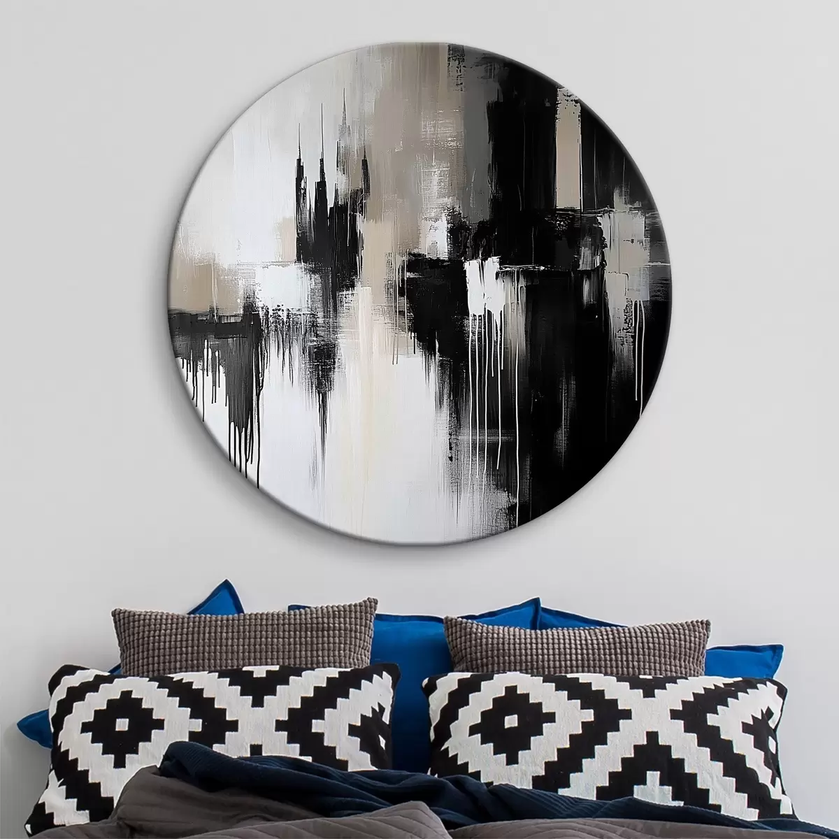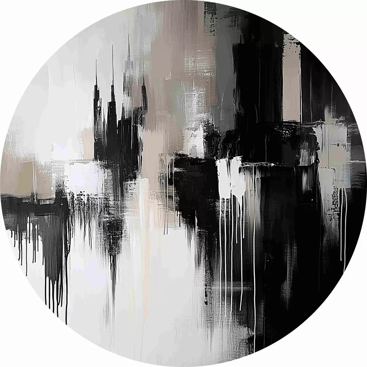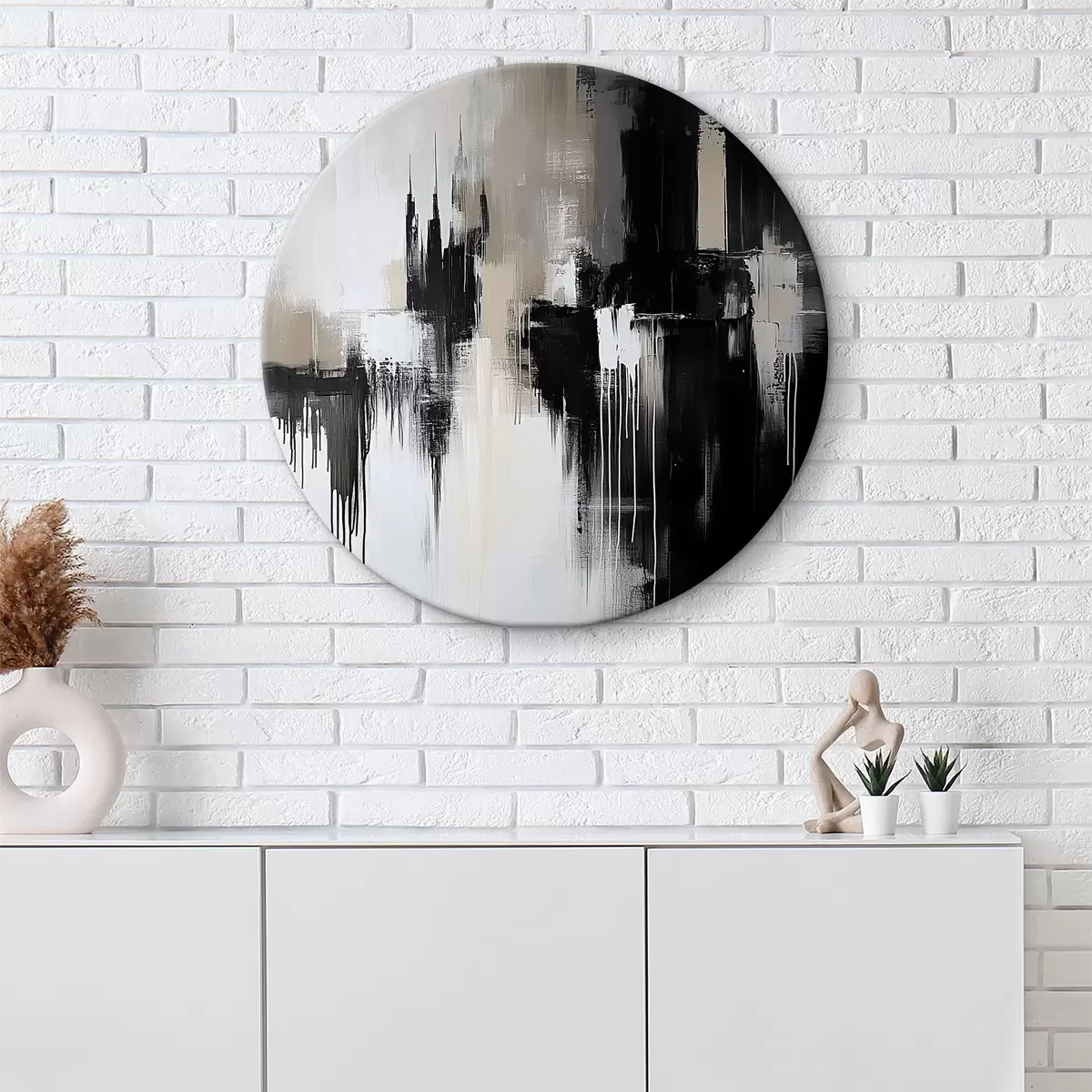 Cuadros redondos Abstracción en tonos negros y beige r40794