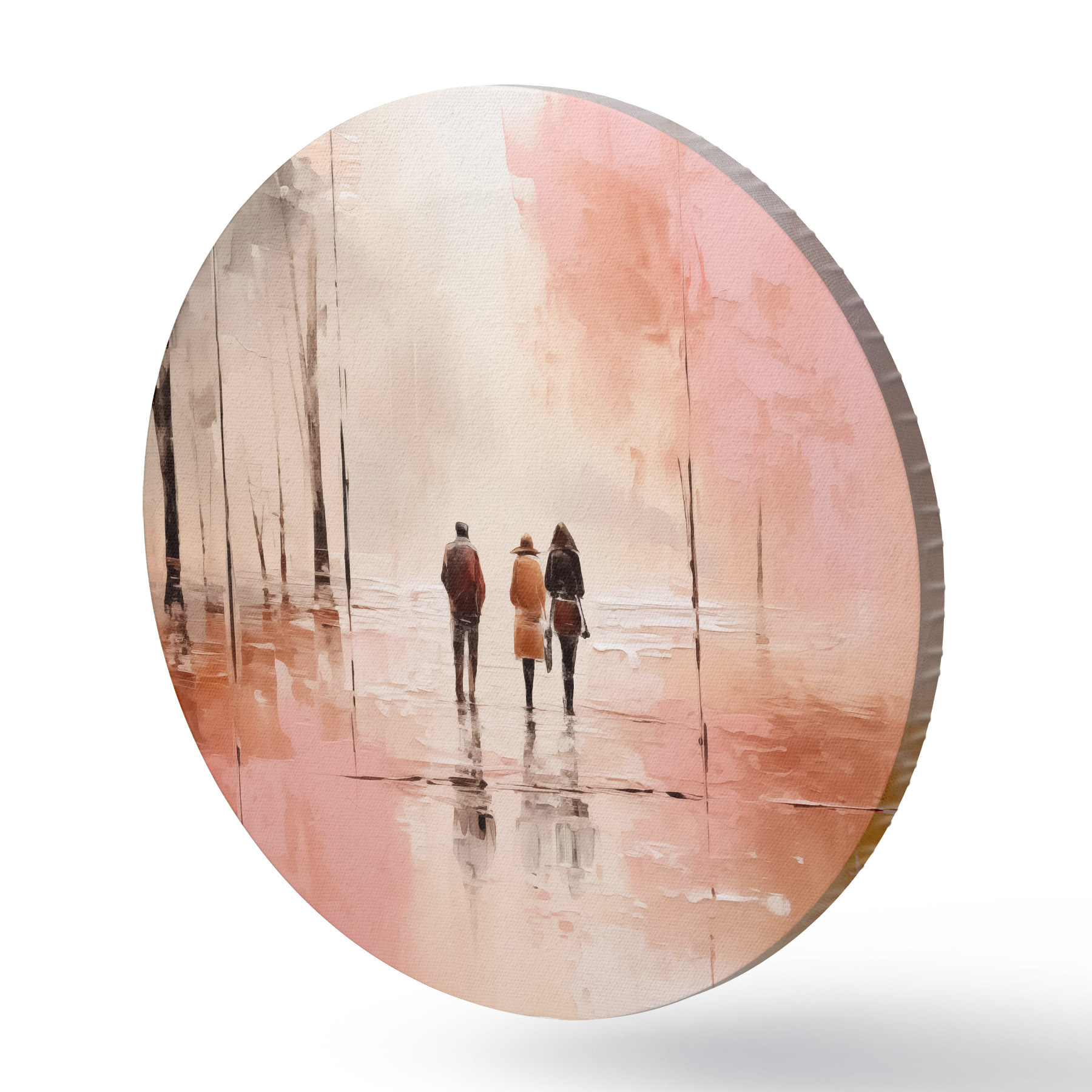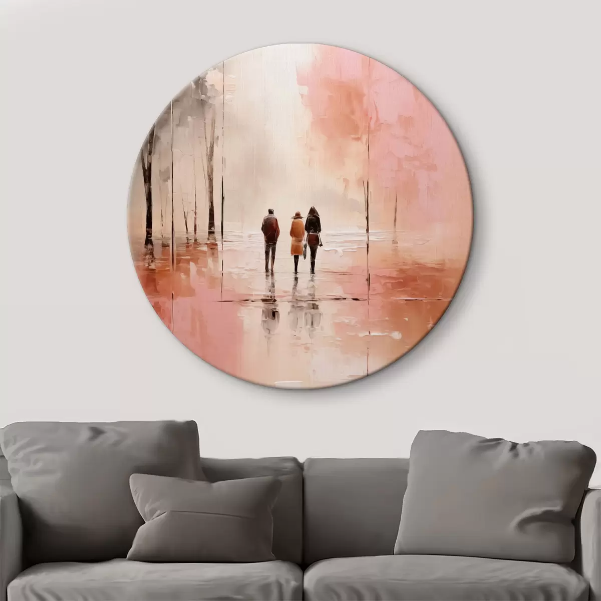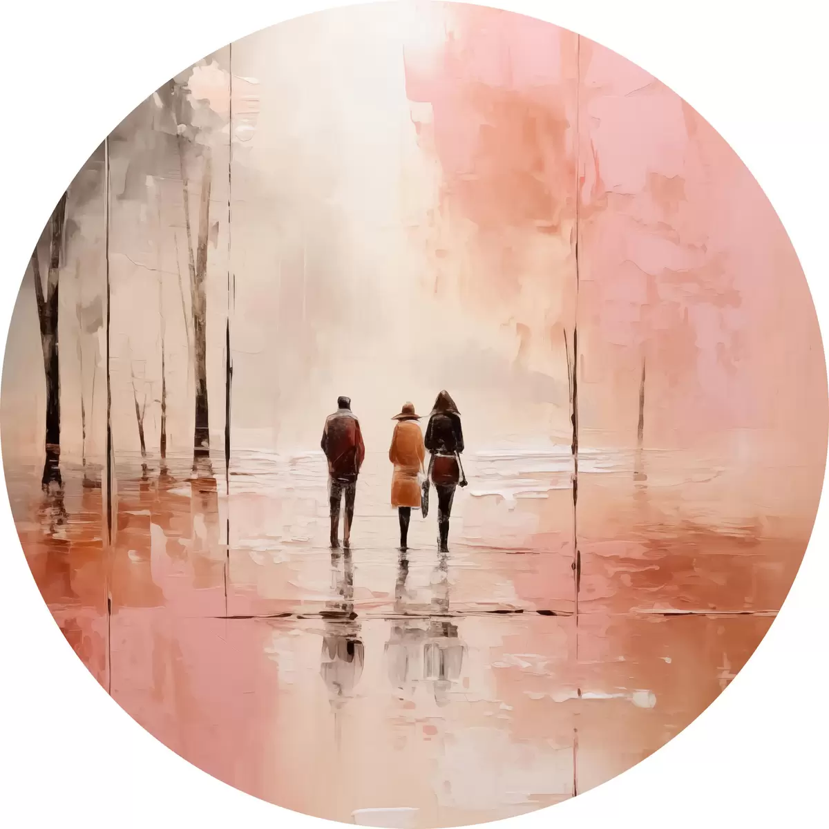 Cuadros redondos La gente caminando en el parque abstracción, de color rojo rosa r40802